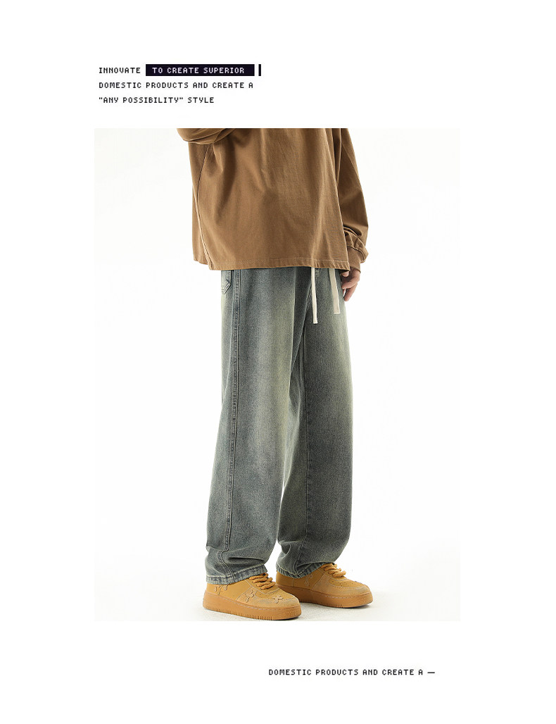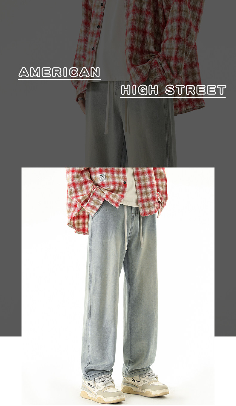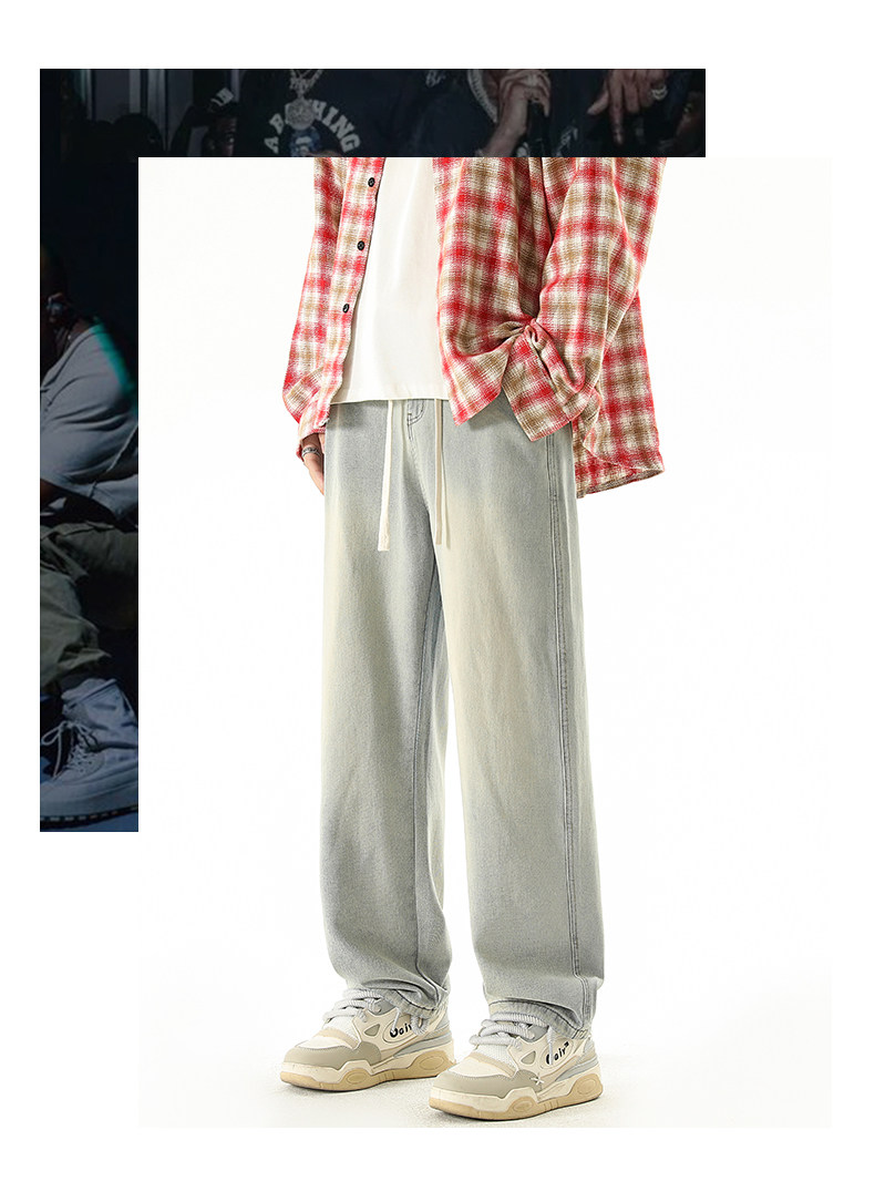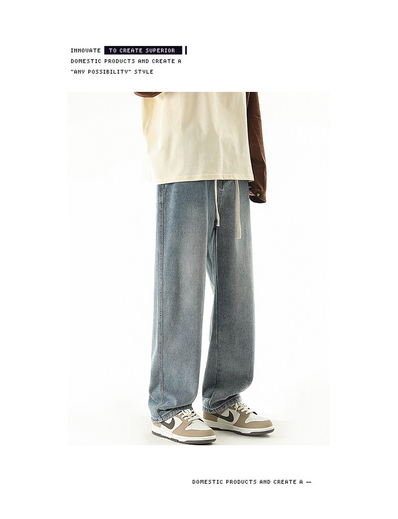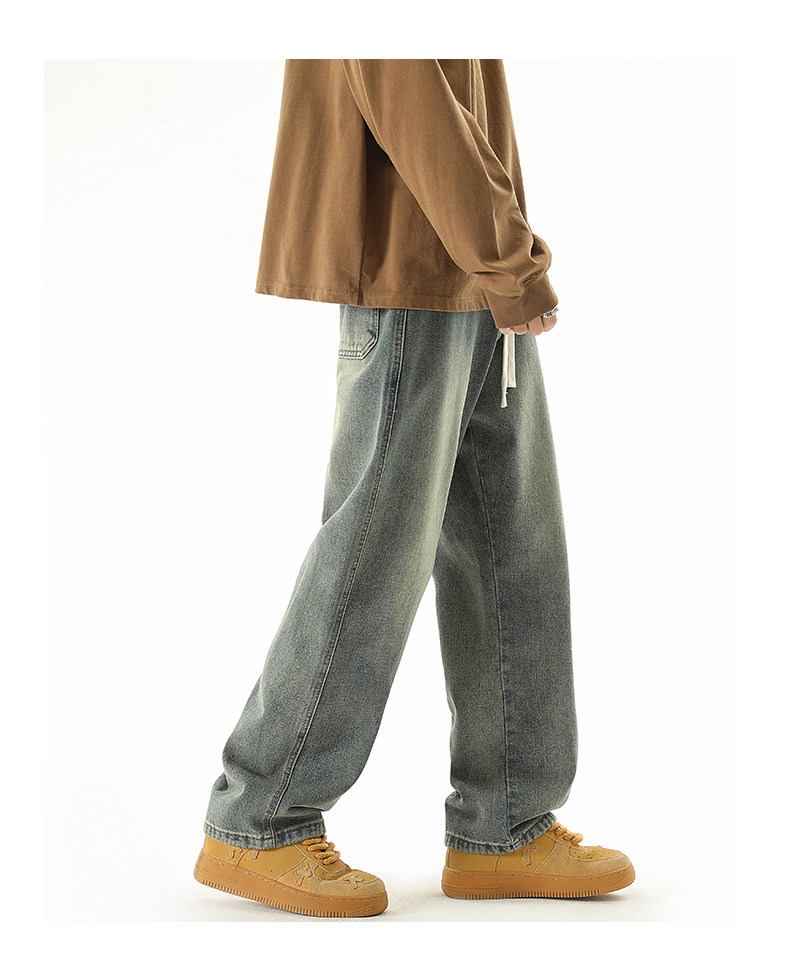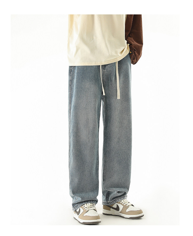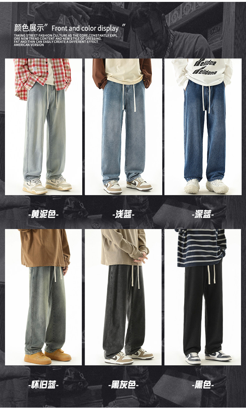 秋冬款牛仔褲男款直筒寬鬆拖地休閒濶腿褲2026新款男生黑色長褲子