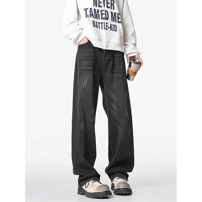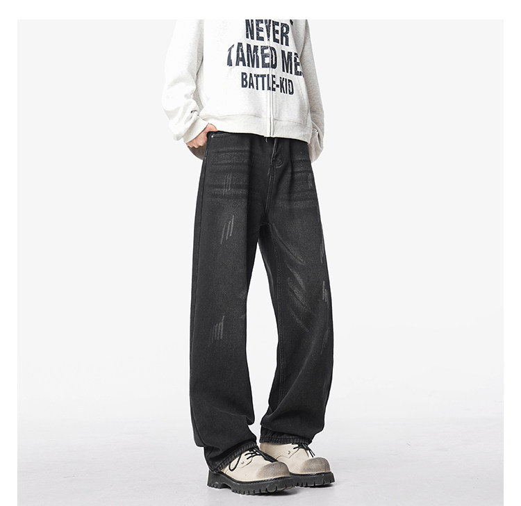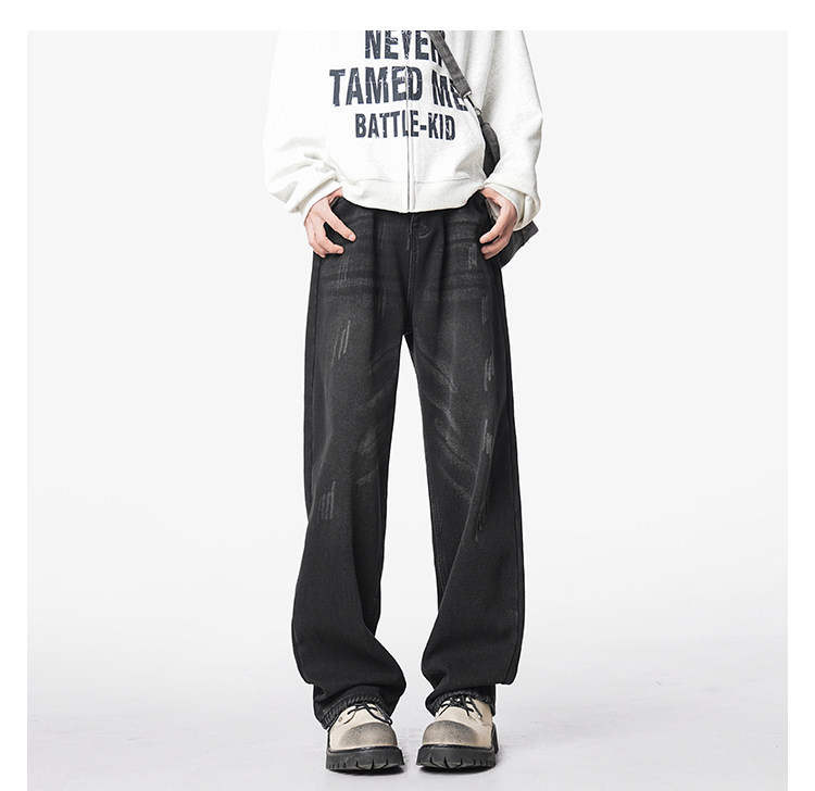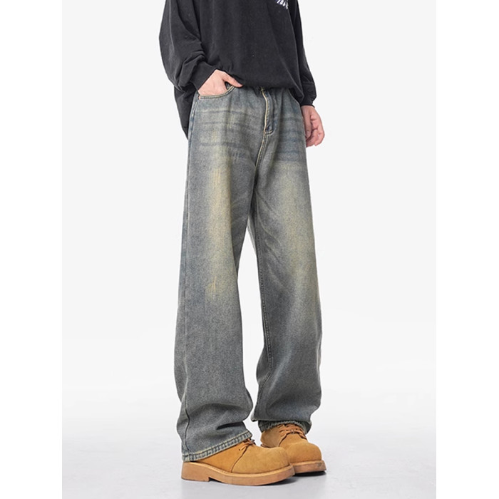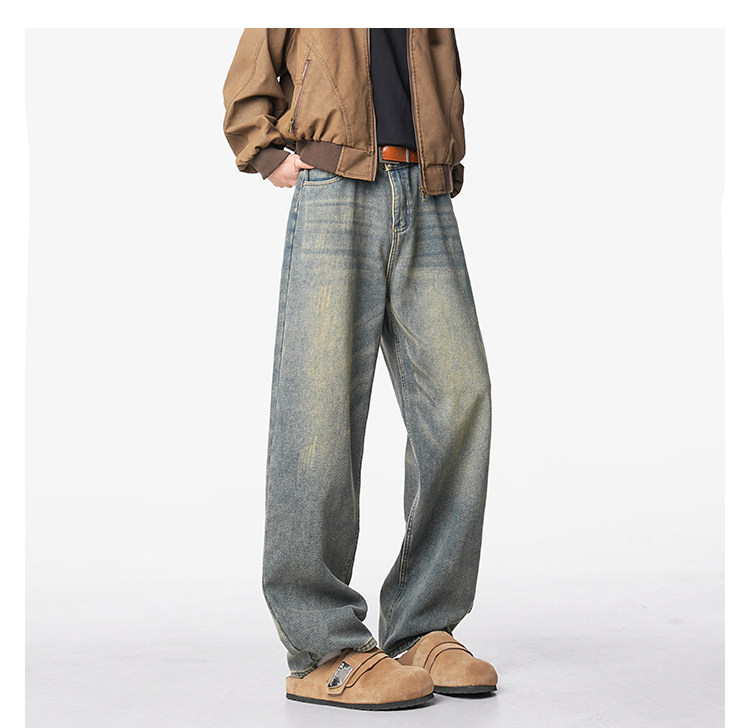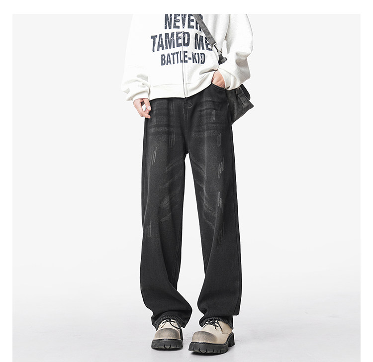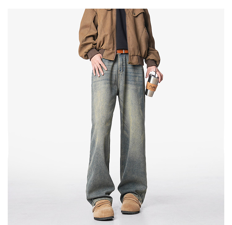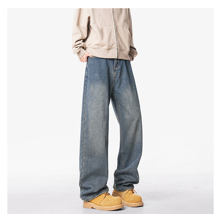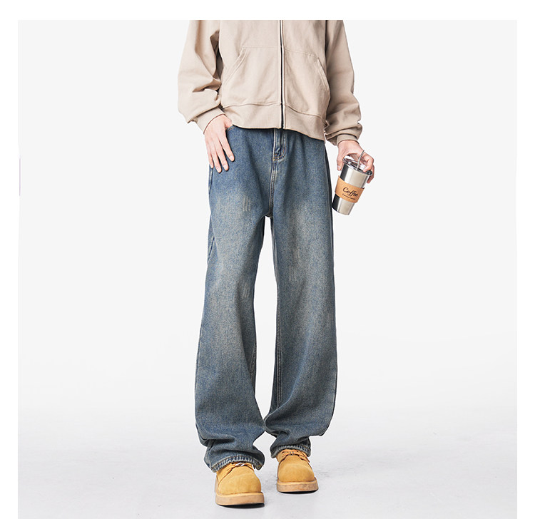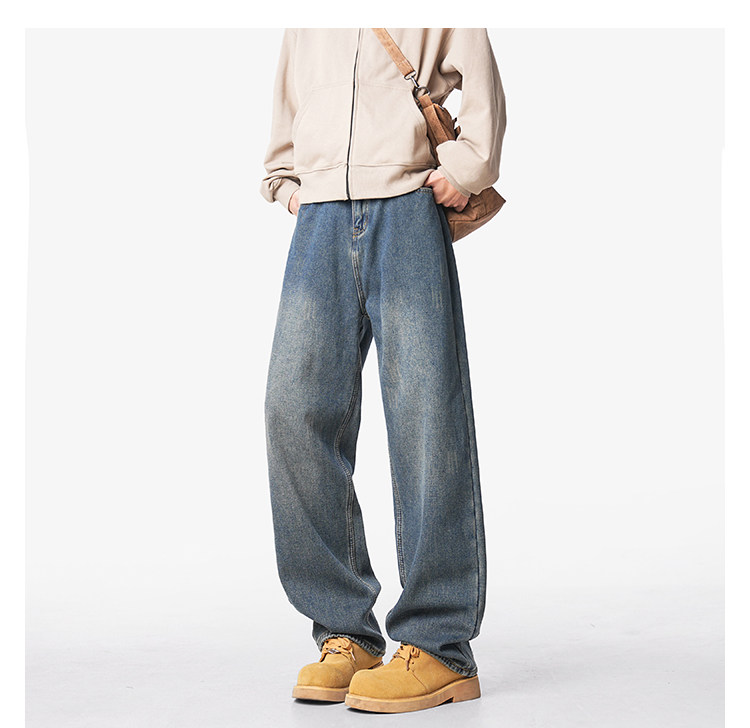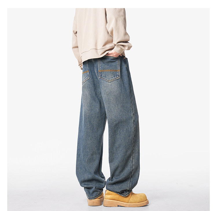 美式復古做舊加絨牛仔褲男女冬季潮水洗加厚直筒褲寬鬆保暖休閒褲