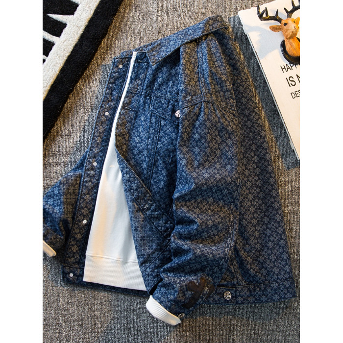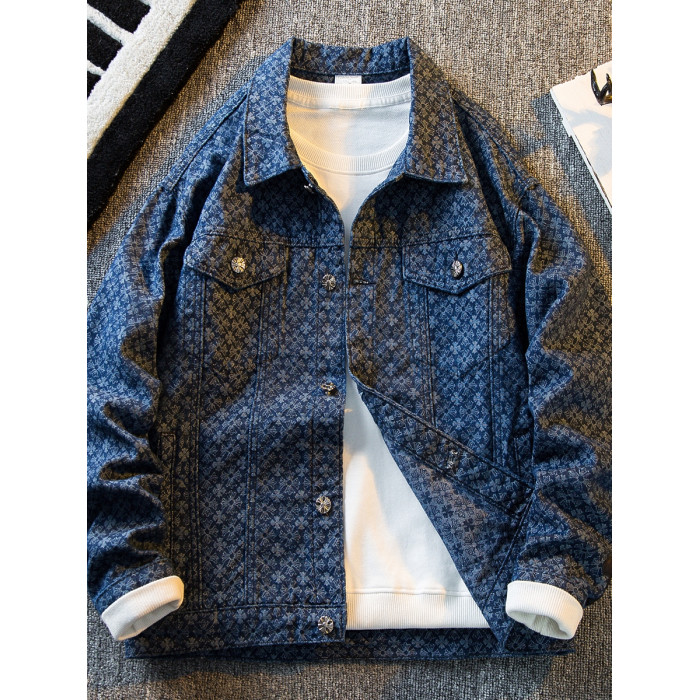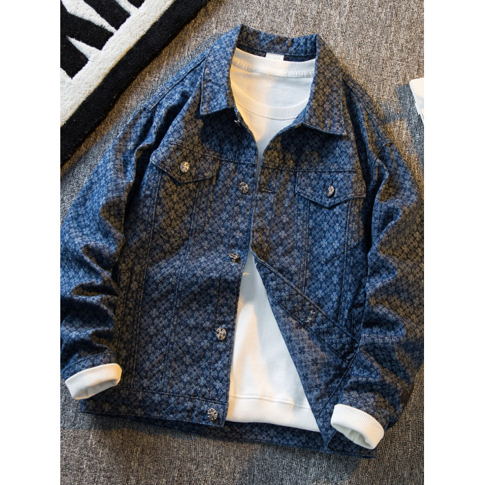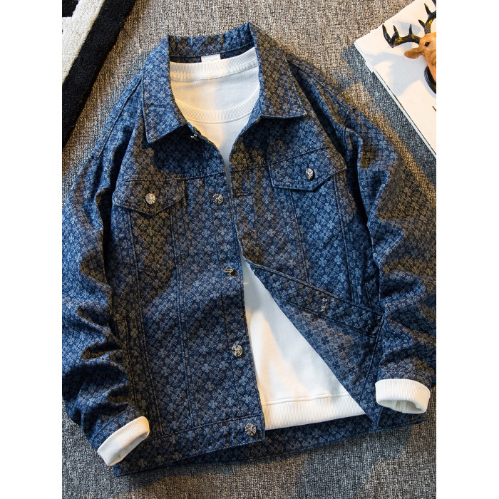 橫派潮品高級輕奢提花牛仔夾克男春秋高街潮牌高級感男士痞帥外套