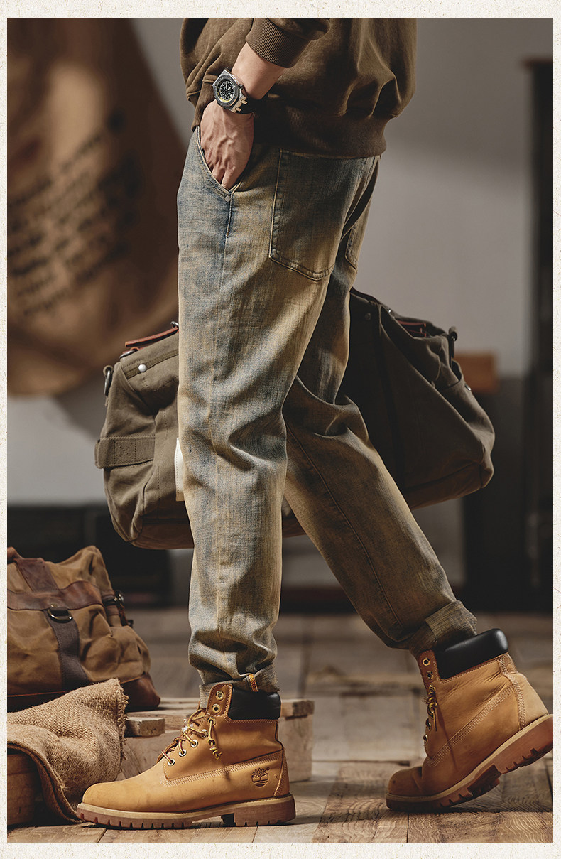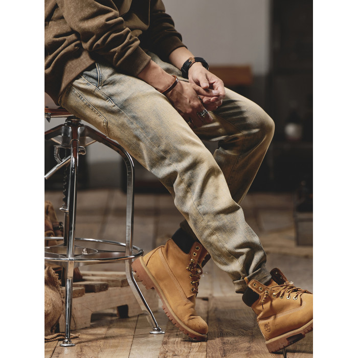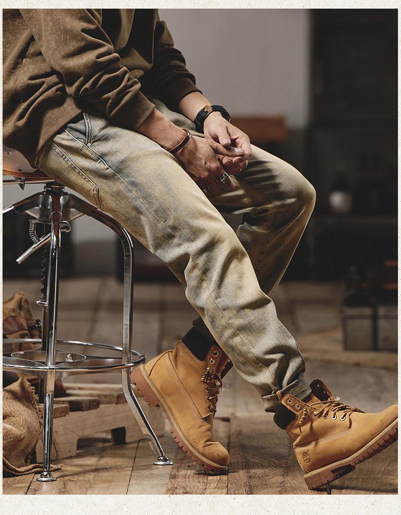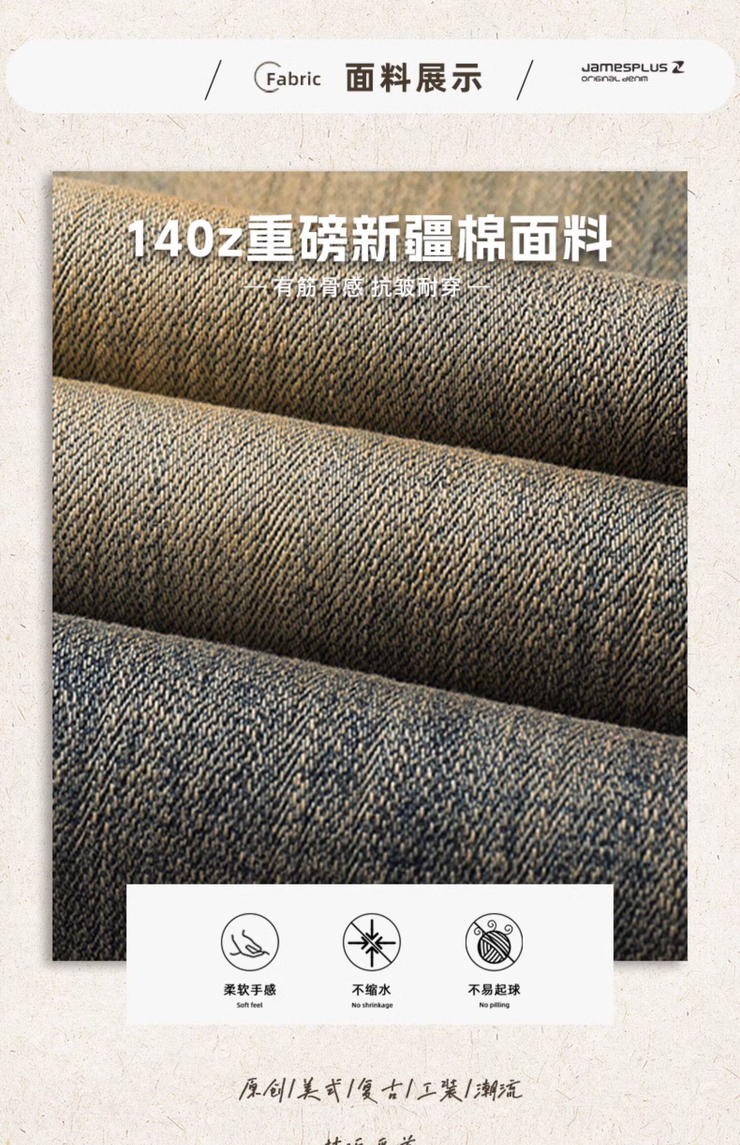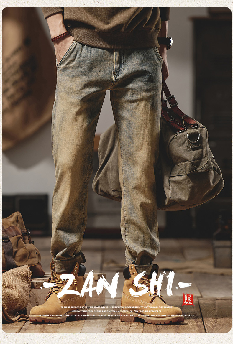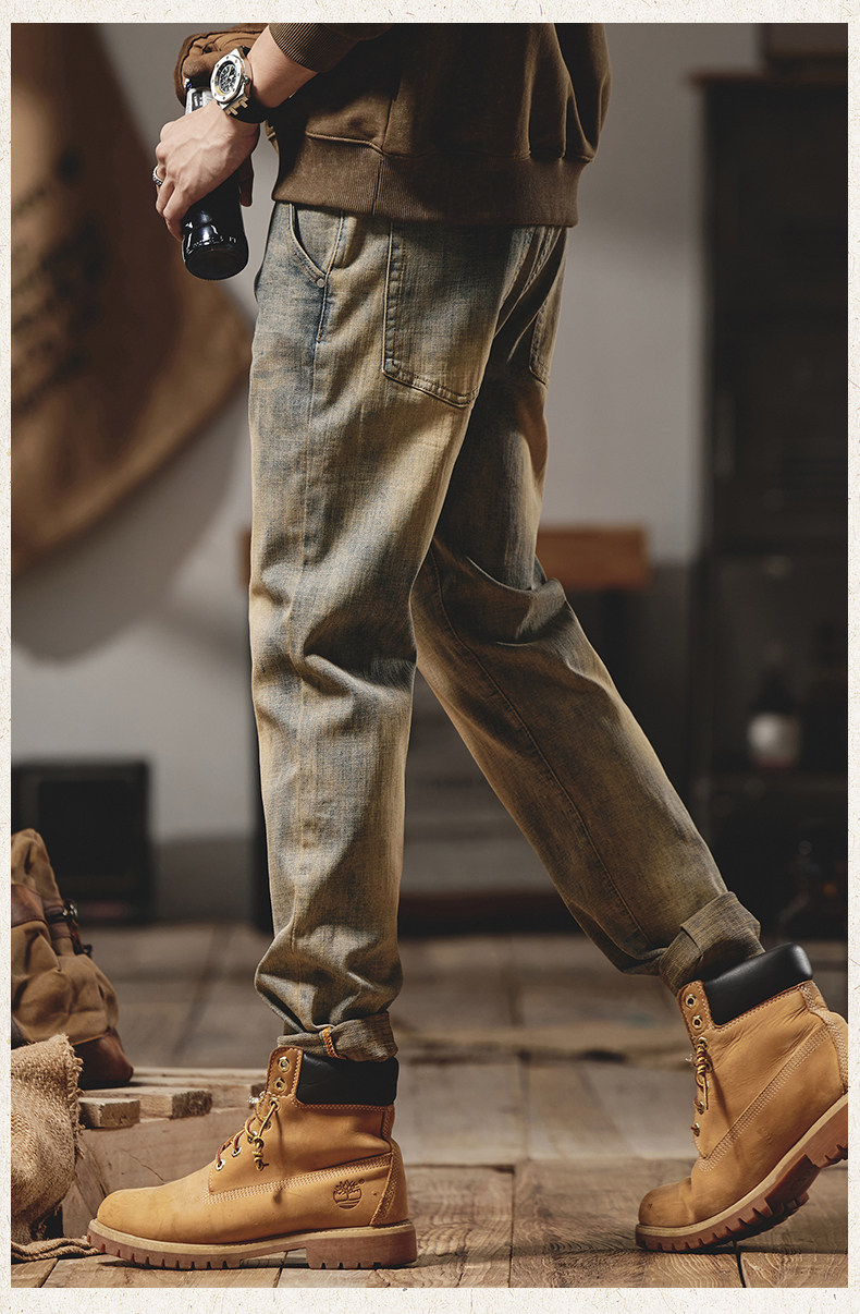 美式復古黃泥染牛仔褲男士秋冬2025新款彈力直筒加絨加厚休閒褲子