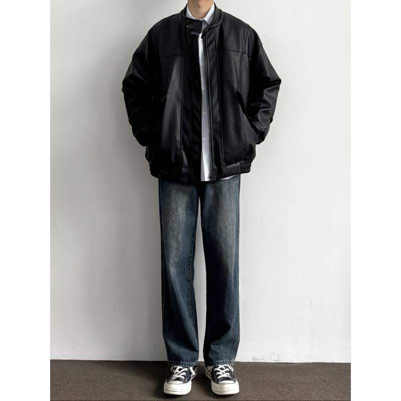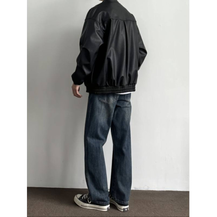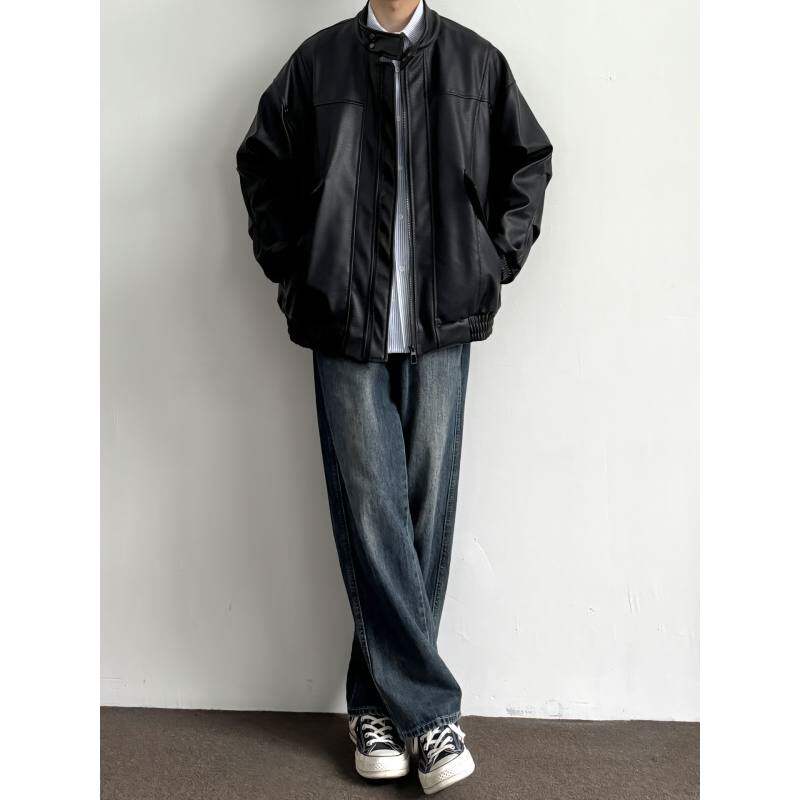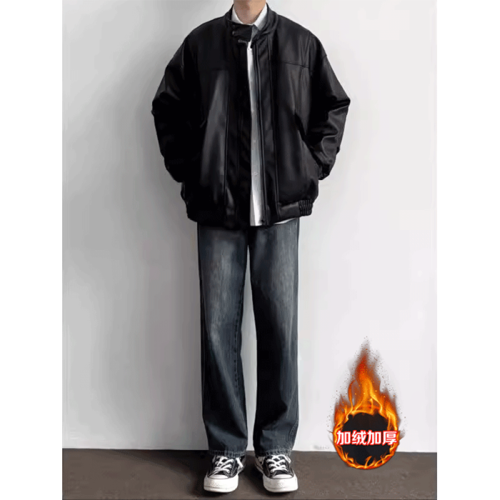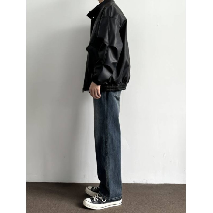 美式vibe提檔版型褲子深藍色牛仔褲男款秋冬加絨加厚顯腿長直筒褲