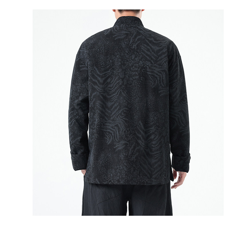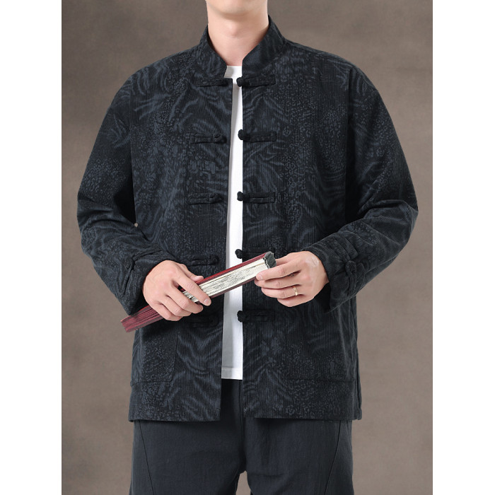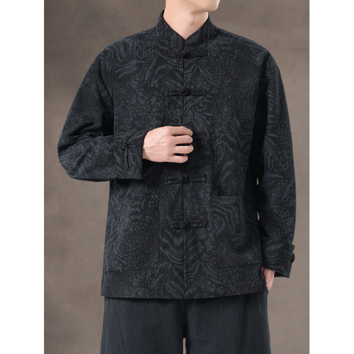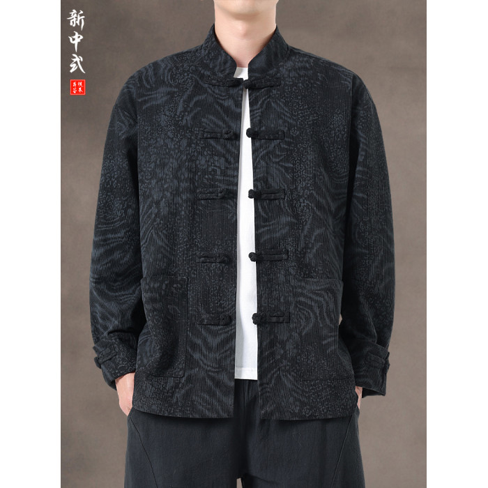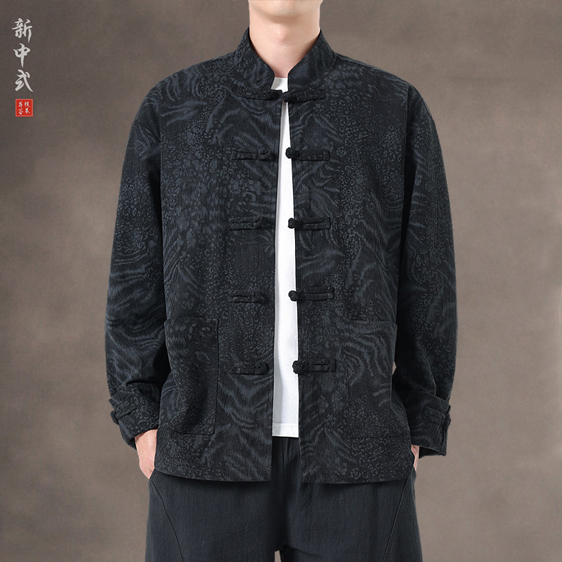 風秋冬暗紋提花唐裝外套國潮寬鬆大碼圓領盤釦中山裝茶服夾克