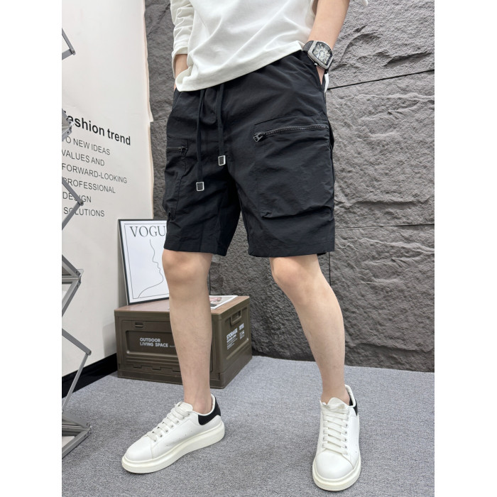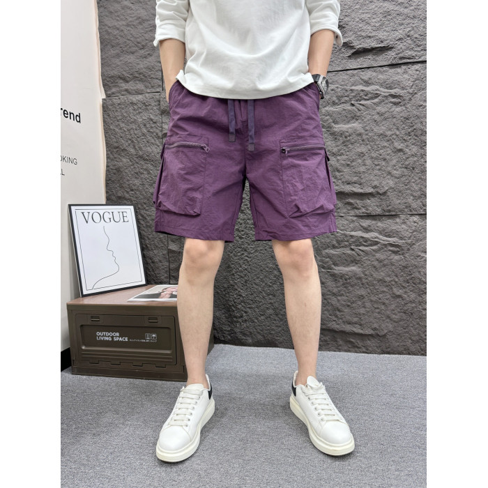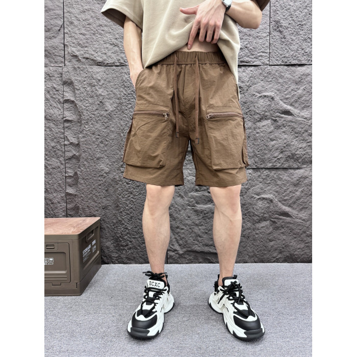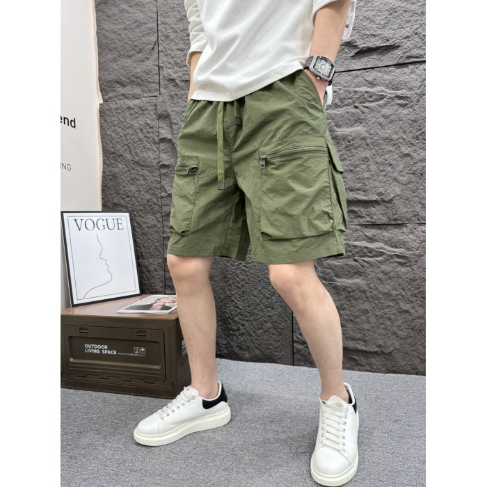 夏季戶外速乾工裝短褲拉鍊多口袋中褲寬鬆直筒五分褲透氣沙灘褲子