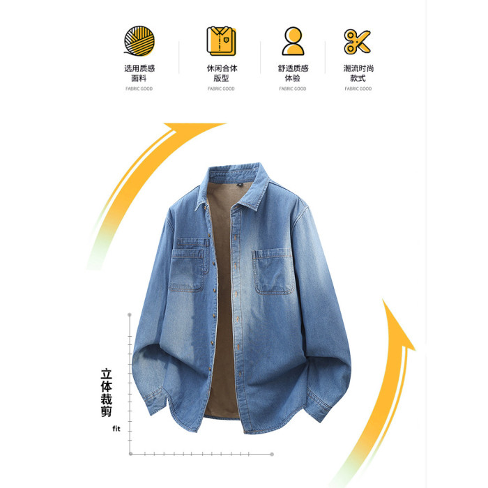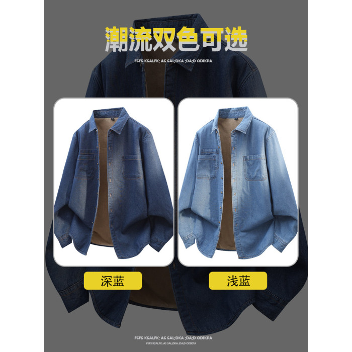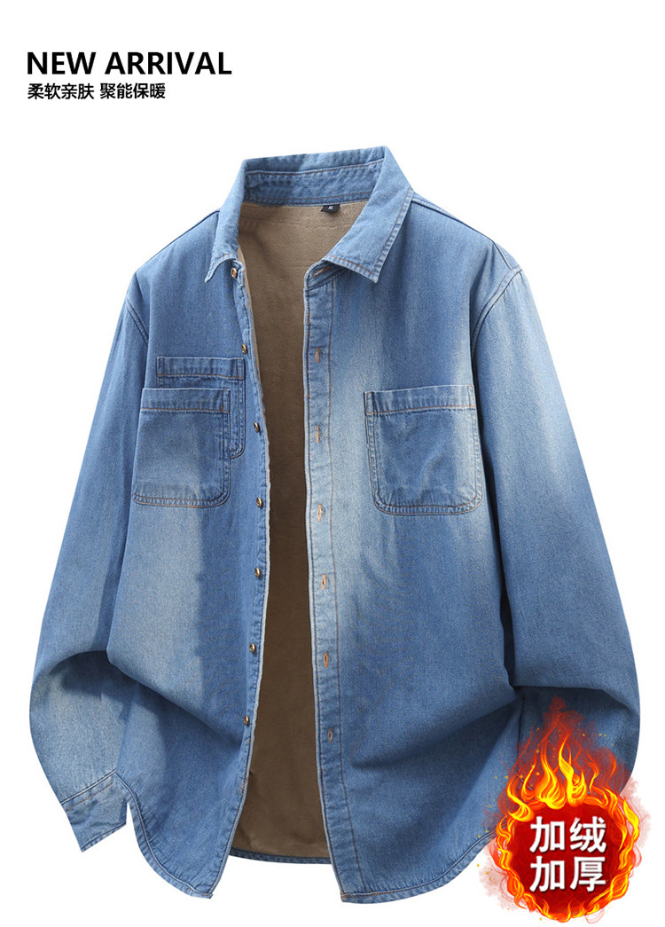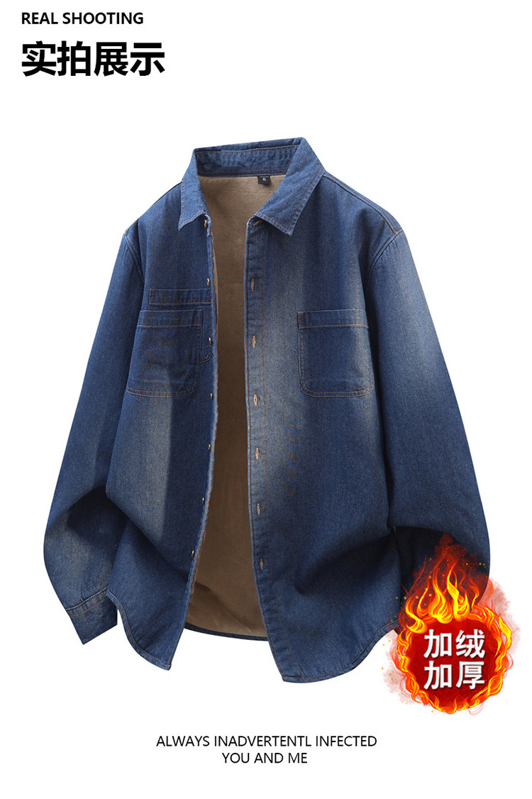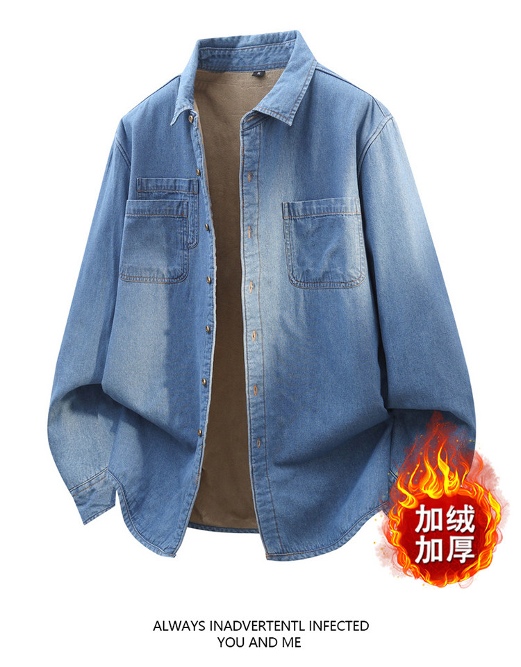 羅矇加絨加厚牛仔襯衫男士獨特超好看外套深藍休閒內搭曡穿襯衣男