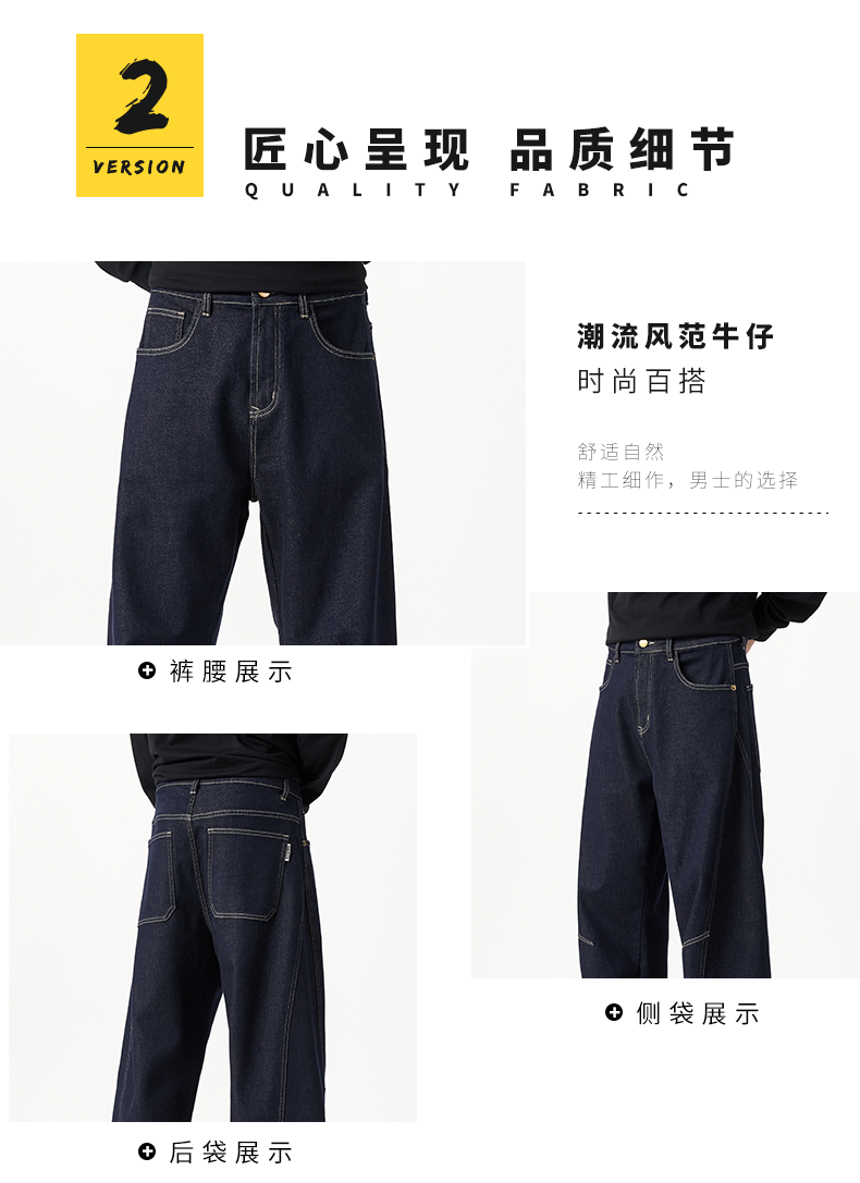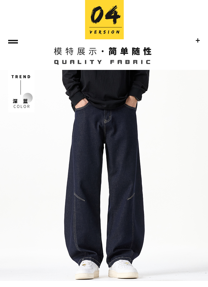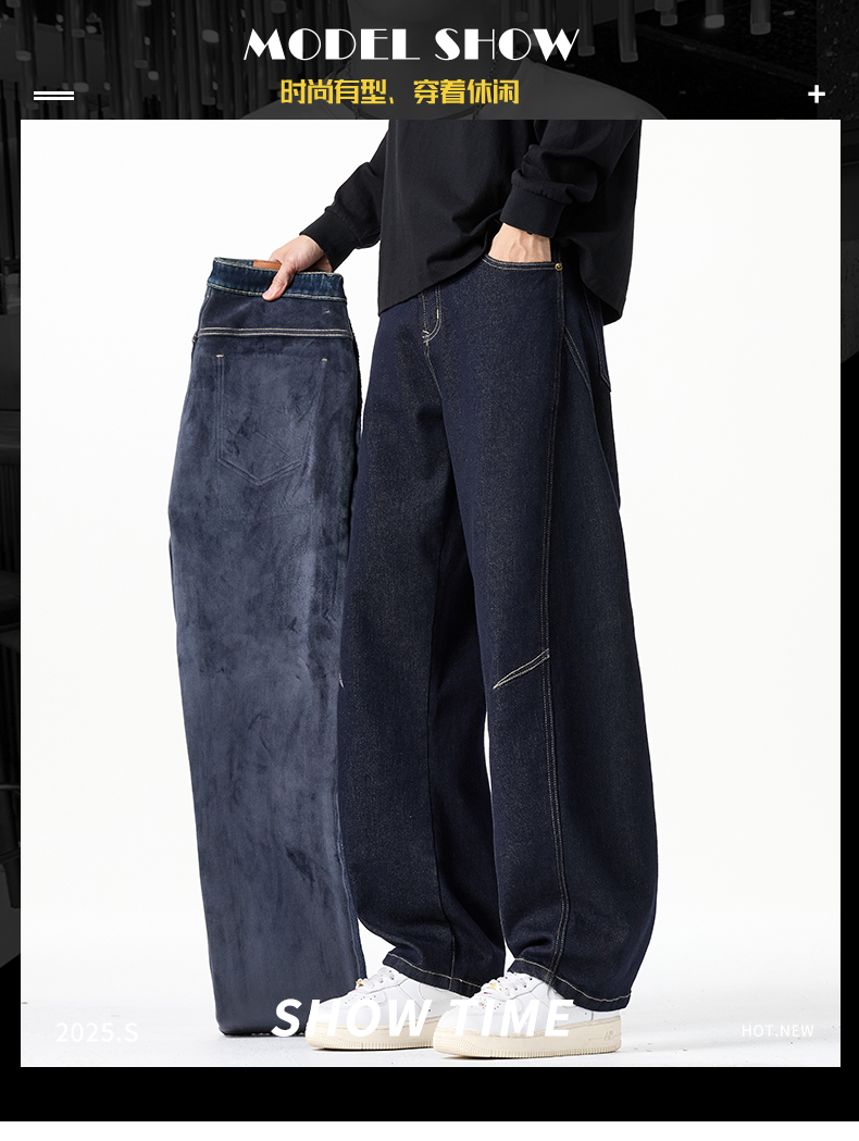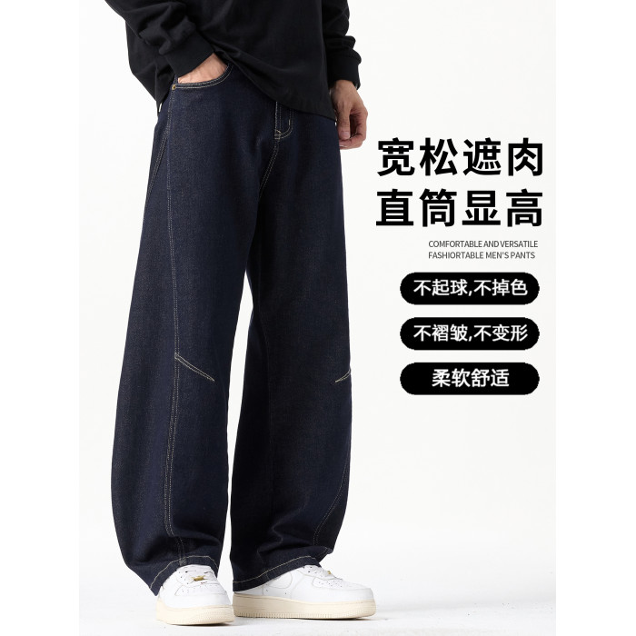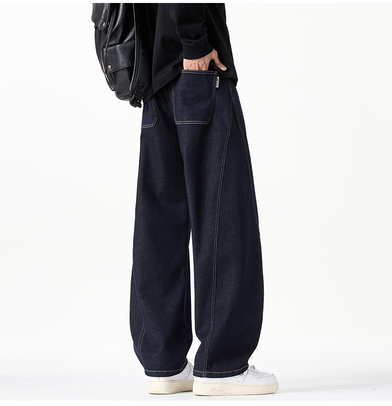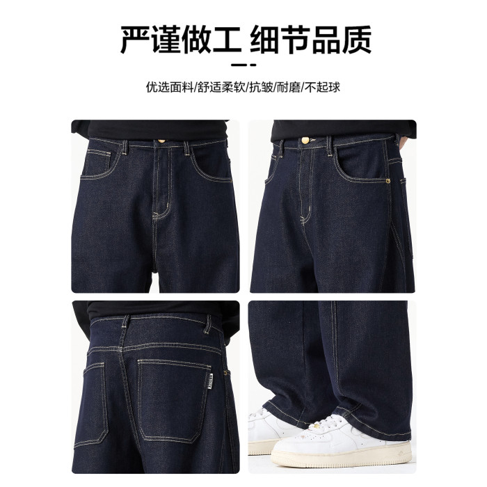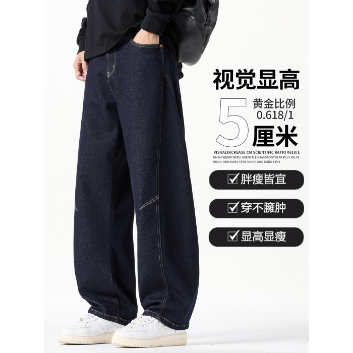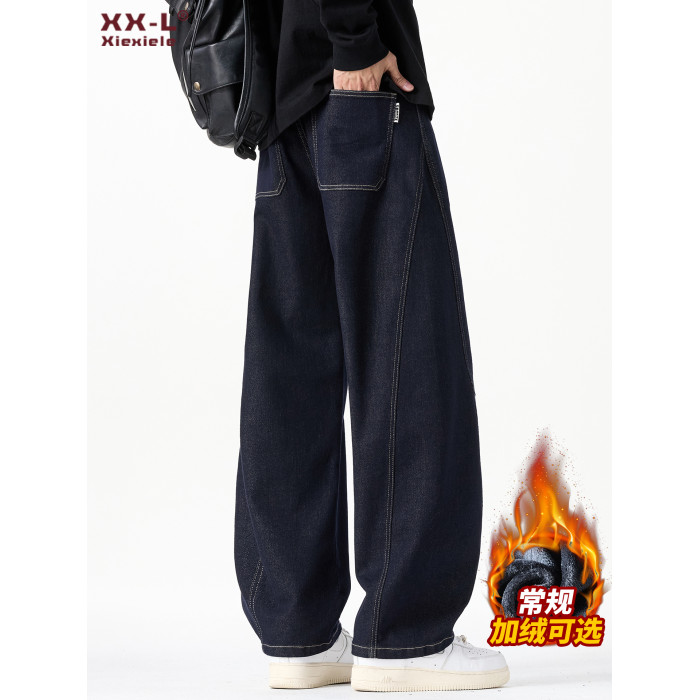 原色彎刀牛仔褲男士2026秋冬新款加絨美式潮牌寬鬆直筒春秋長褲子