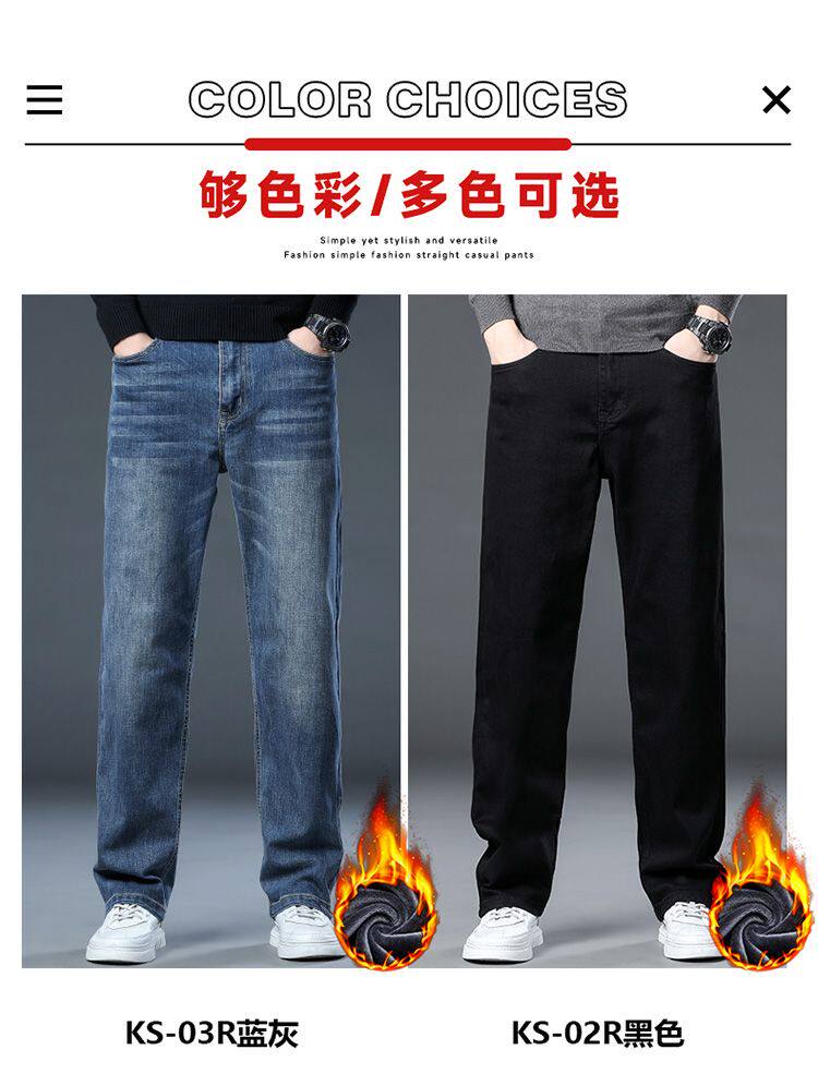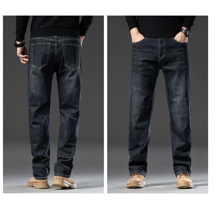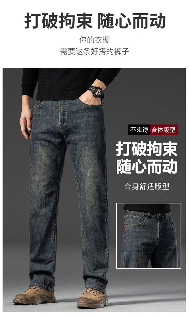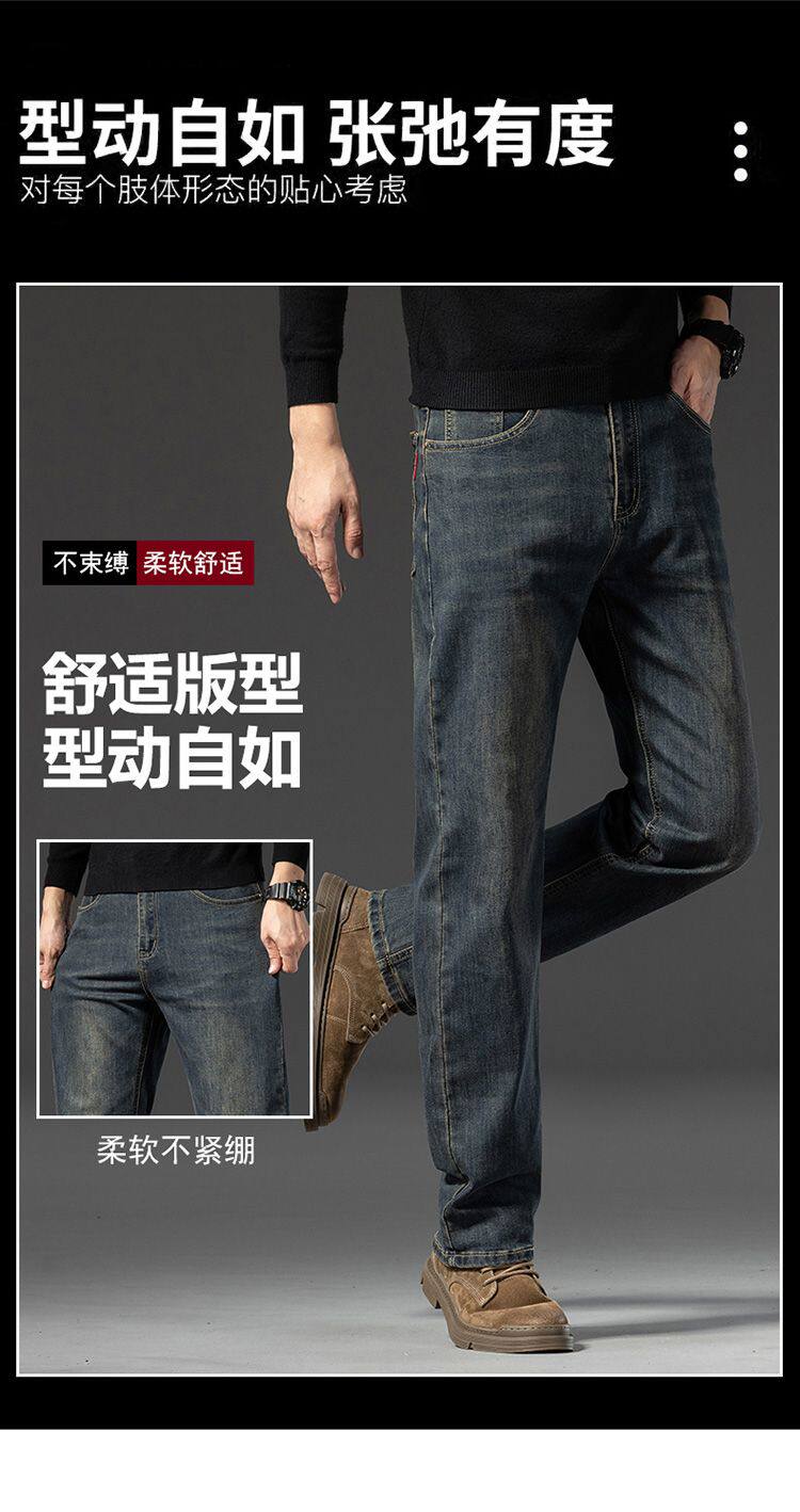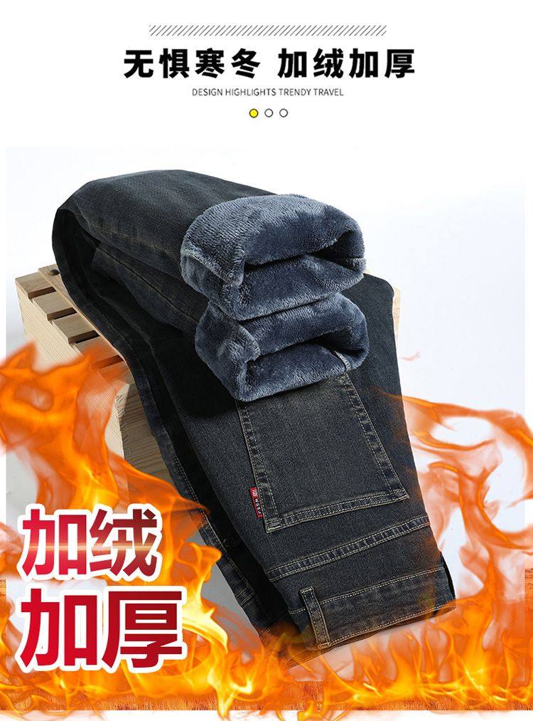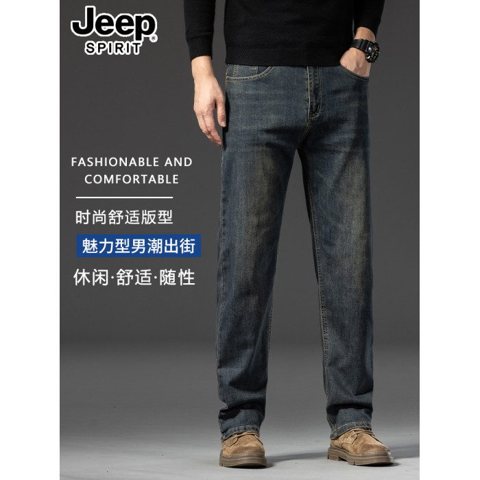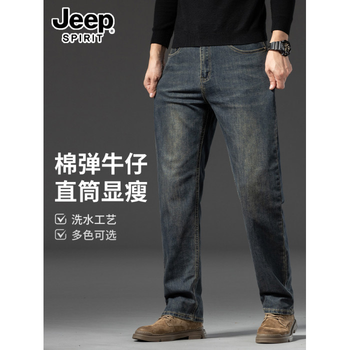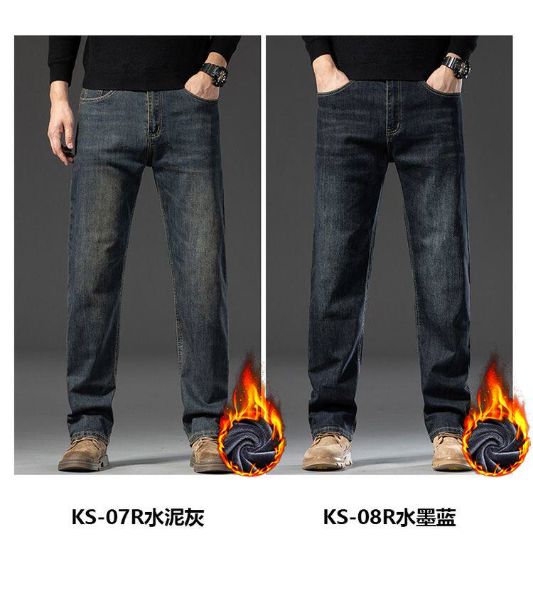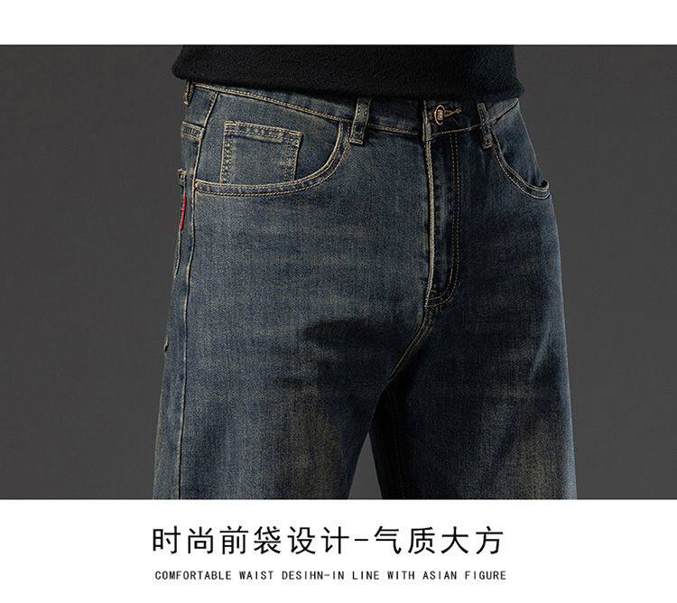 吉普專櫃秋冬季新款復古牛仔褲男寬鬆直筒大碼加絨加厚水洗長褲子