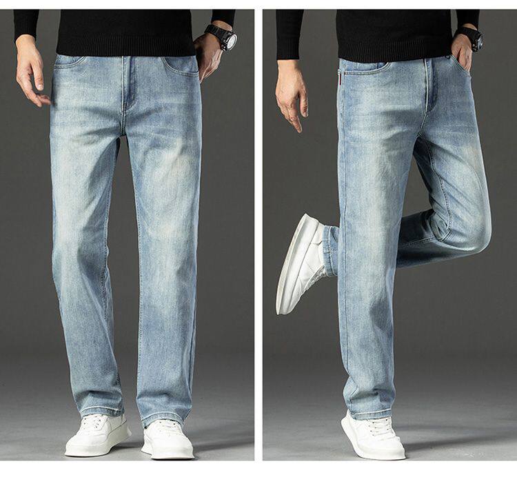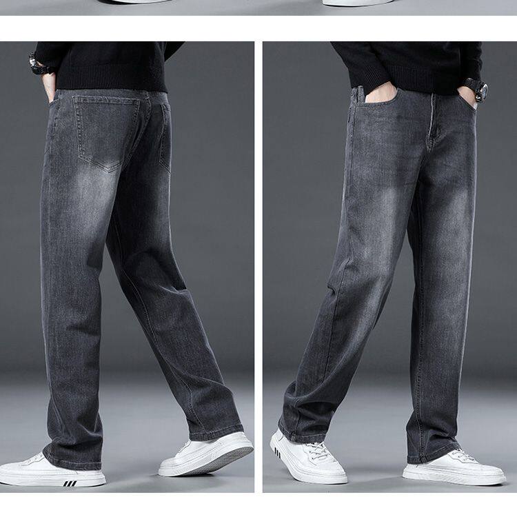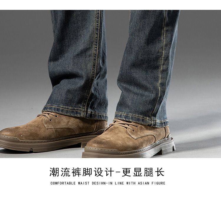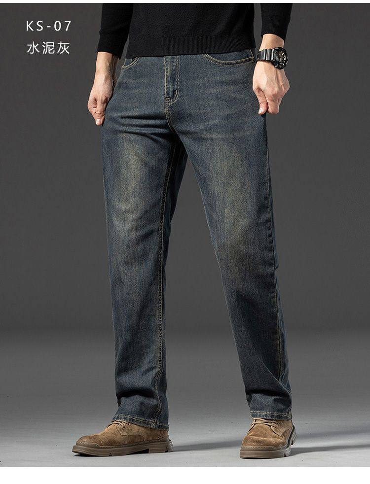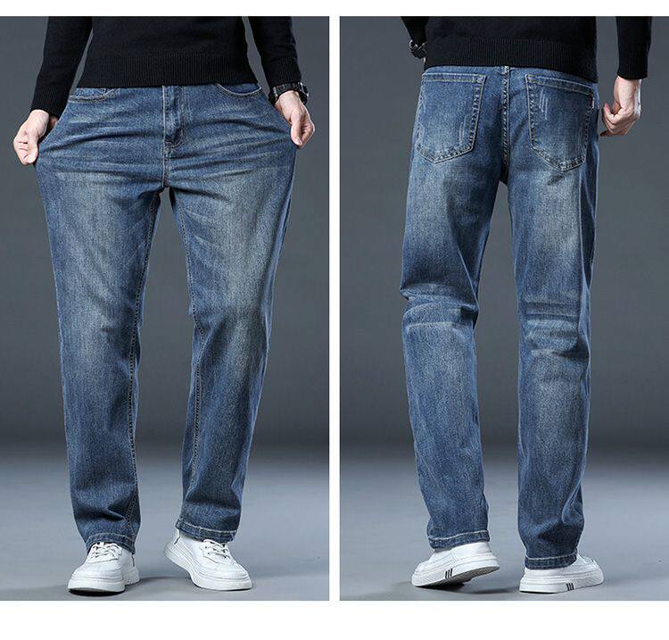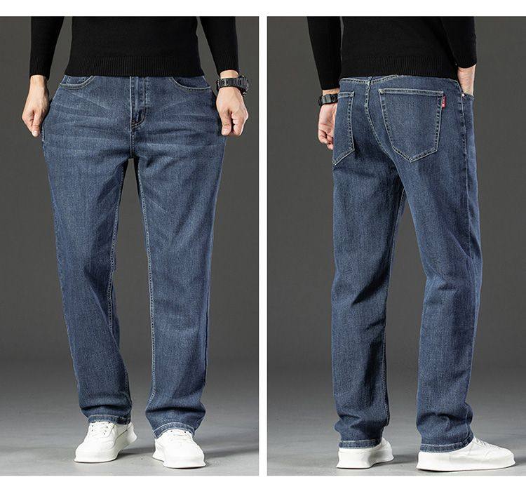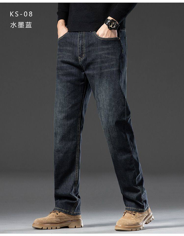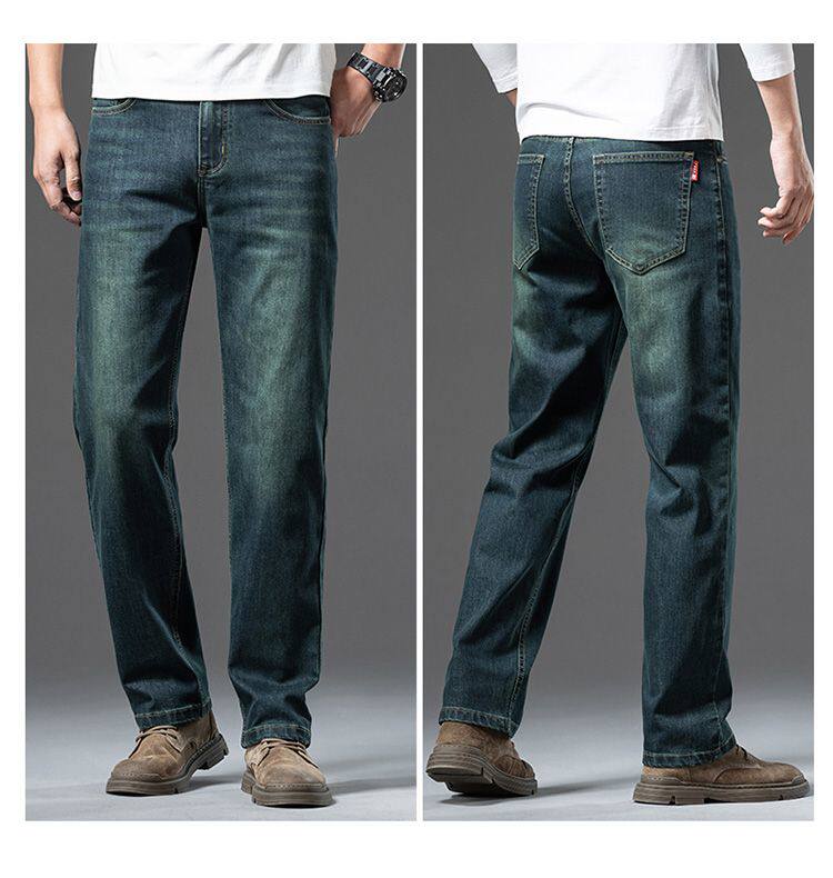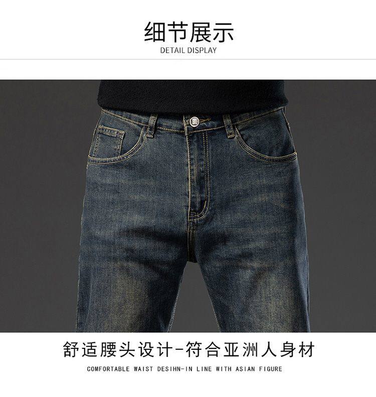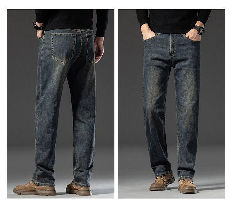 吉普專櫃秋冬季新款復古牛仔褲男寬鬆直筒大碼加絨加厚水洗長褲子