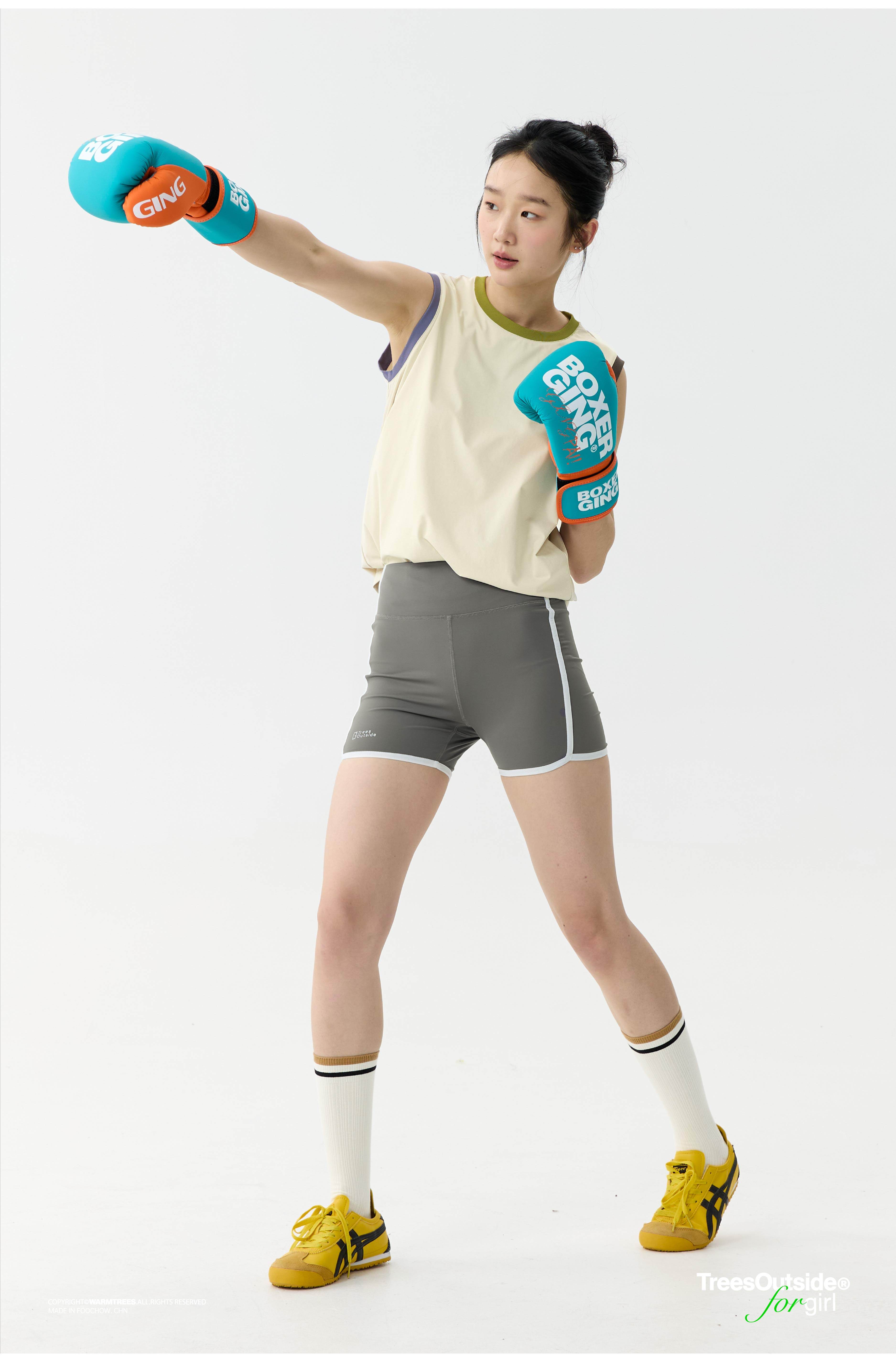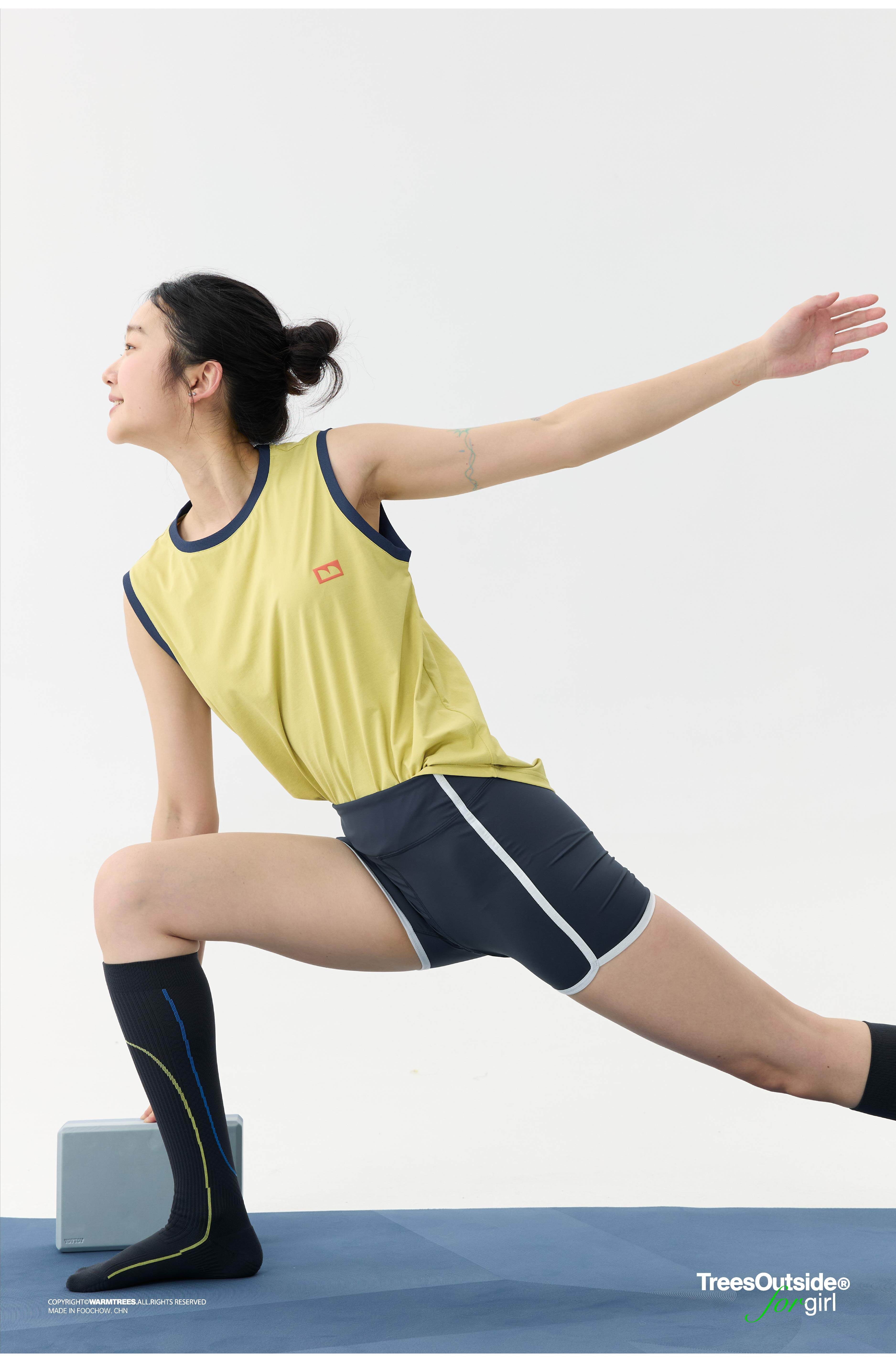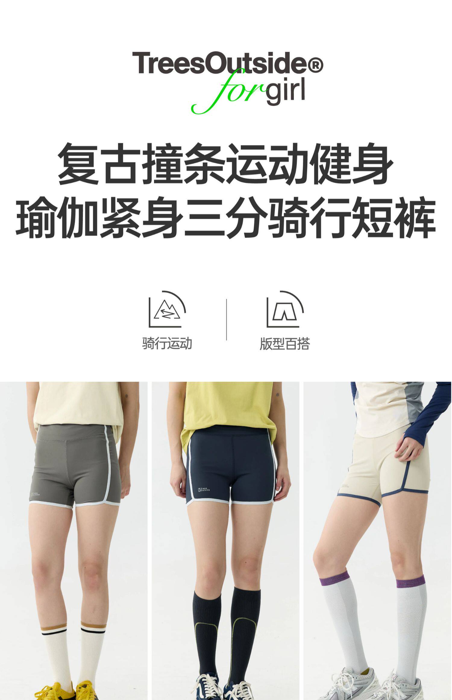 TreesOutside for girl復古撞條運動健身瑜珈緊身三分騎行短褲