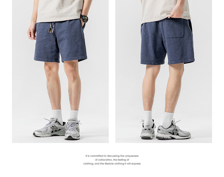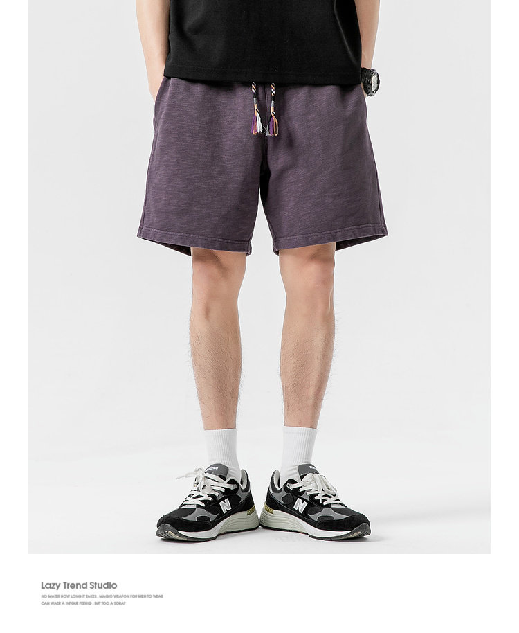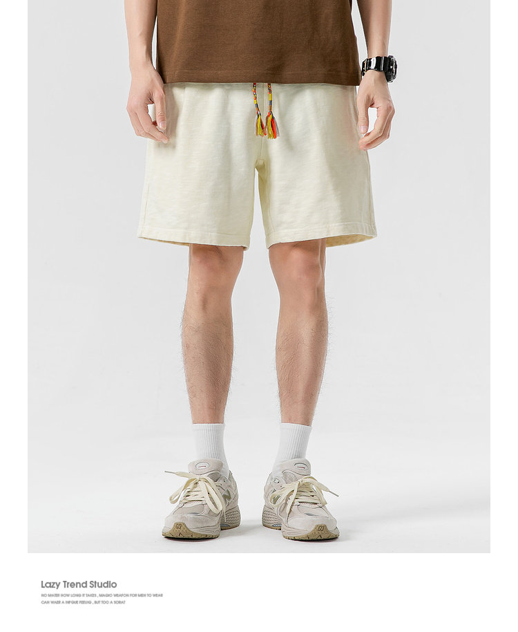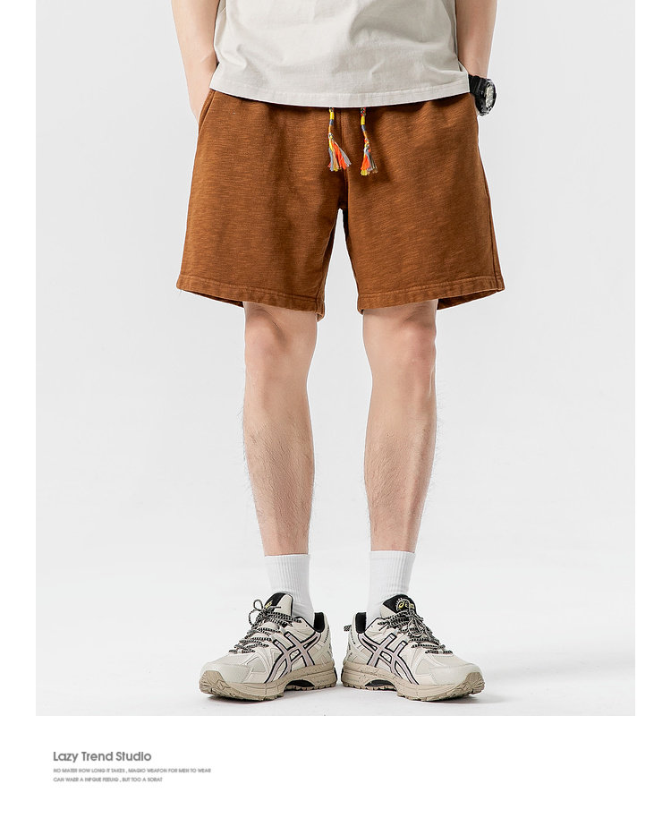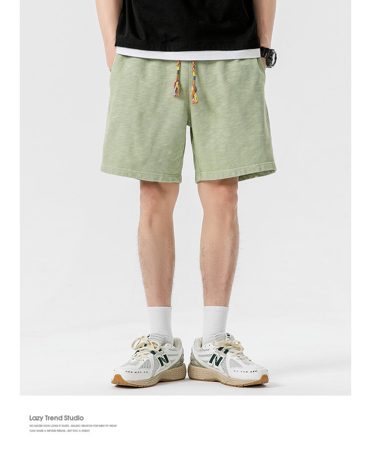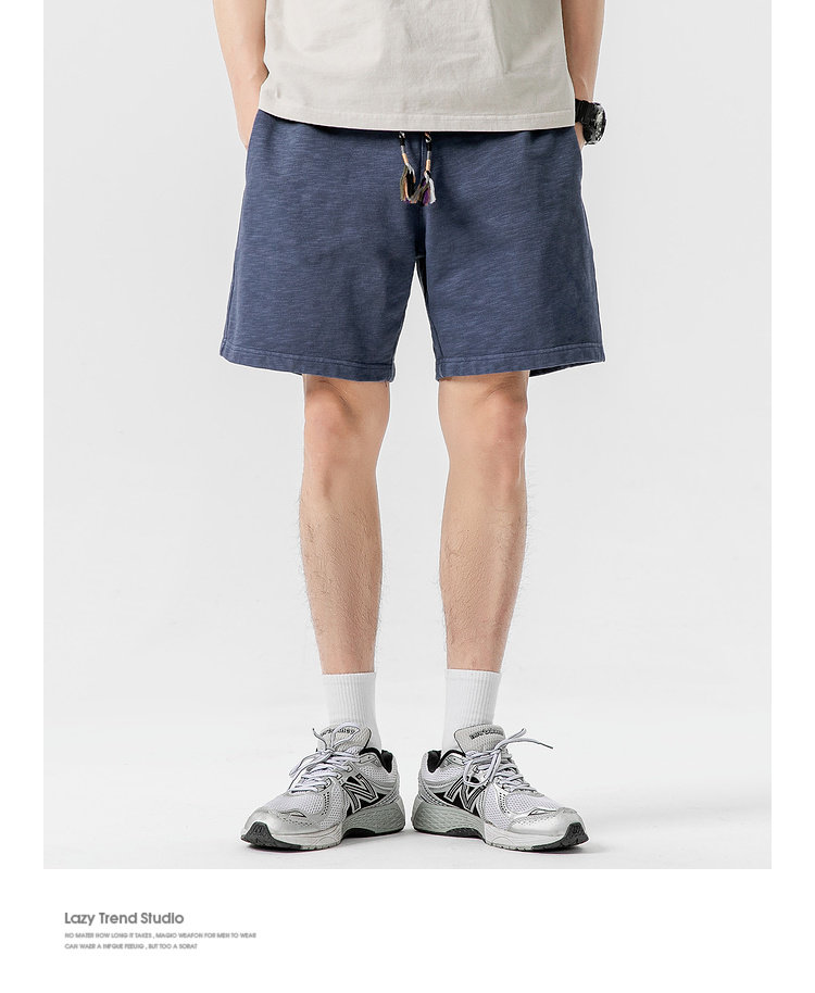 LAZY DAY原創男裝日系純色竹節棉蠟染短褲男夏季寬鬆休閒五分衛褲