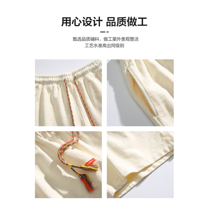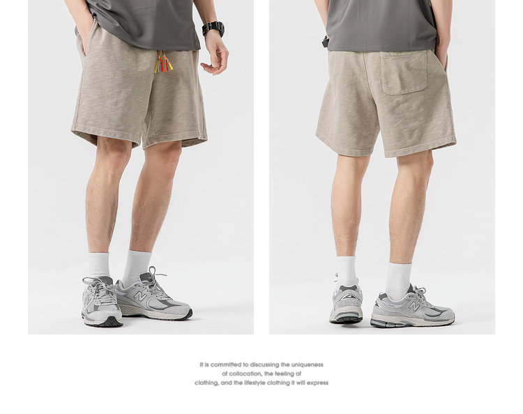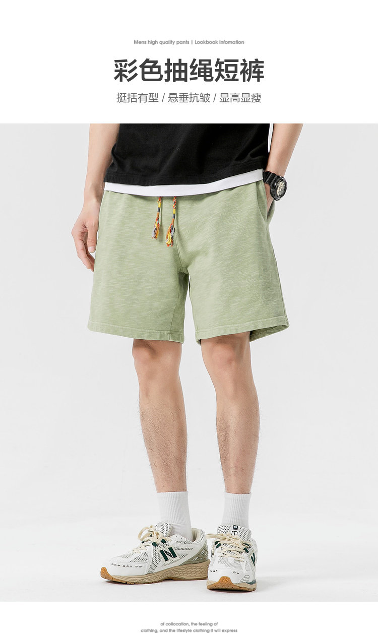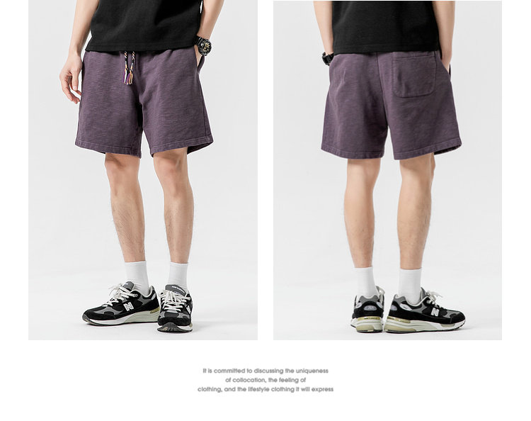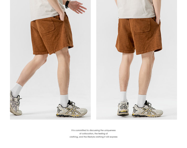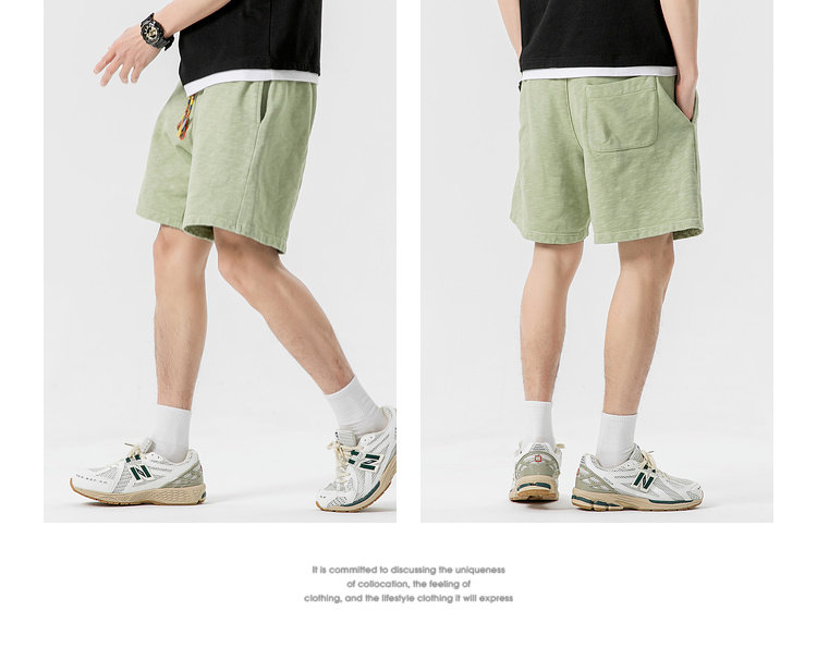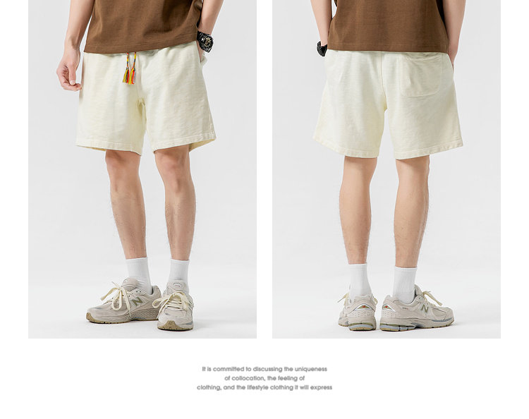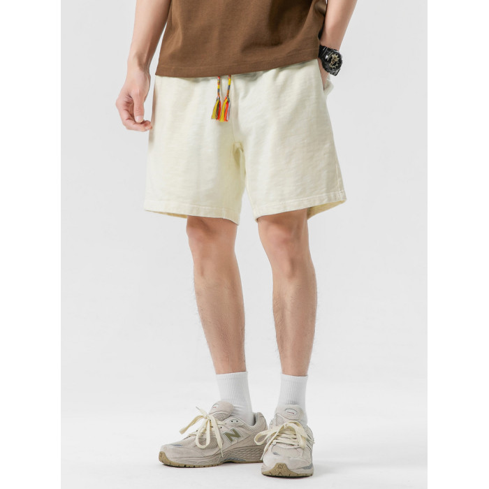 LAZY DAY原創男裝日系純色竹節棉蠟染短褲男夏季寬鬆休閒五分衛褲