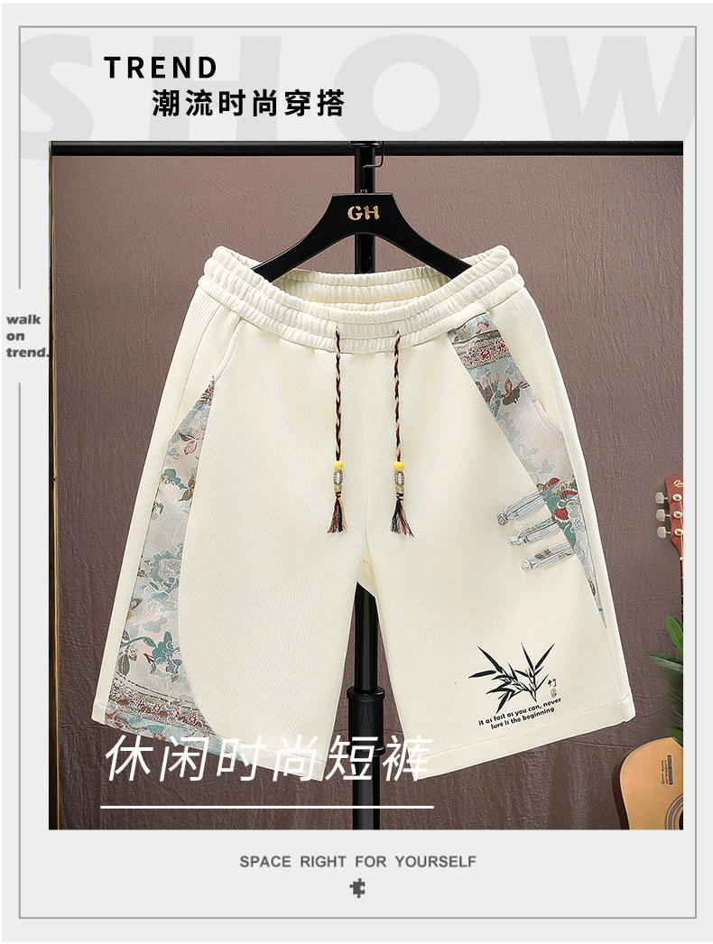 夏季風短褲男薄款冰絲寬鬆國潮五分褲休閒運動沙灘外穿大褲衩