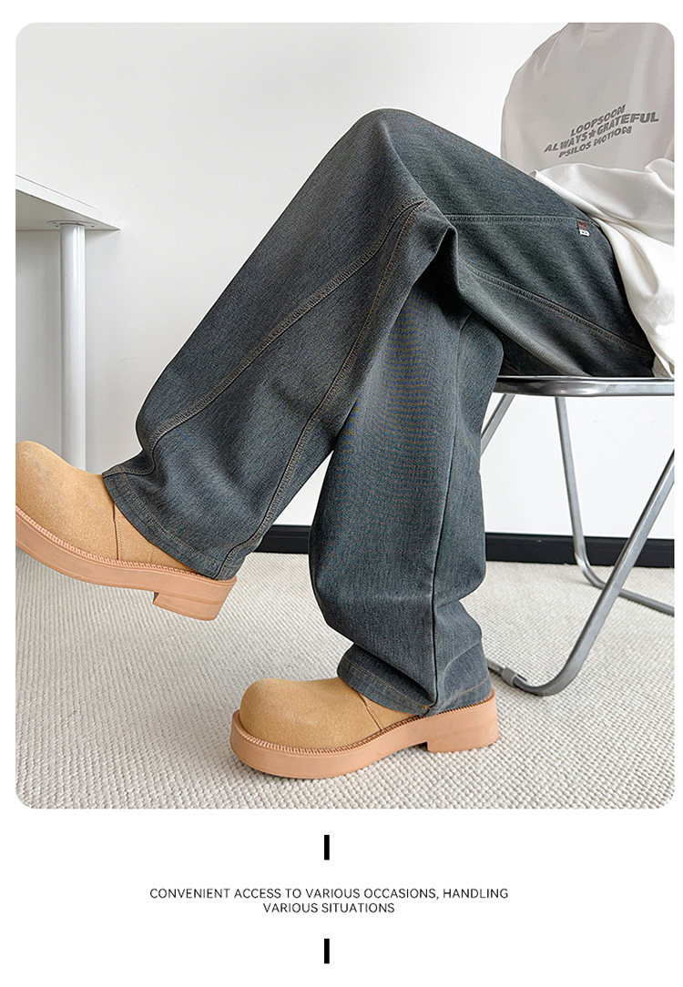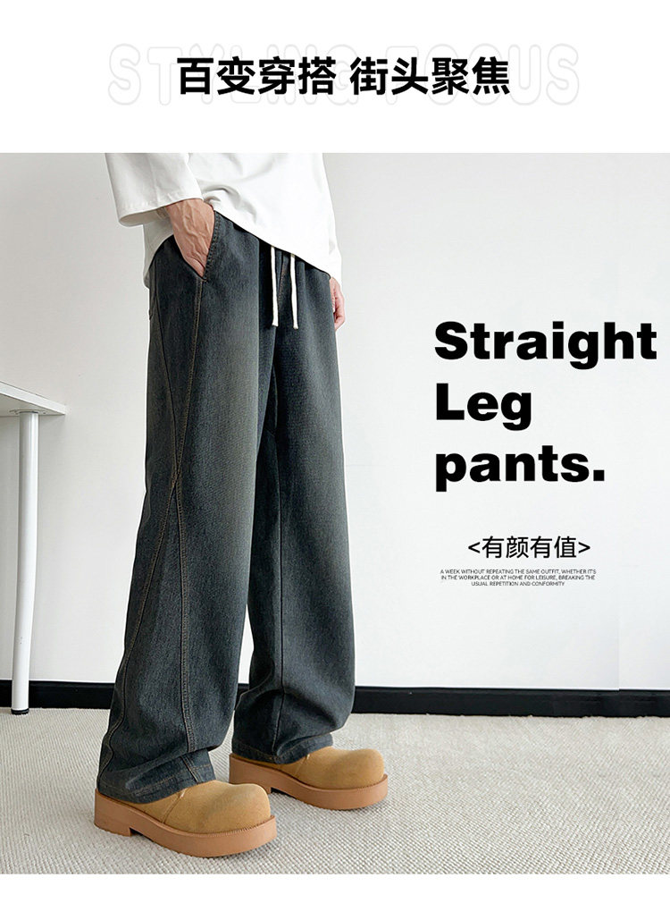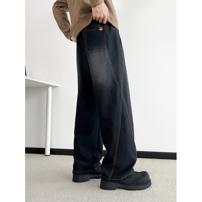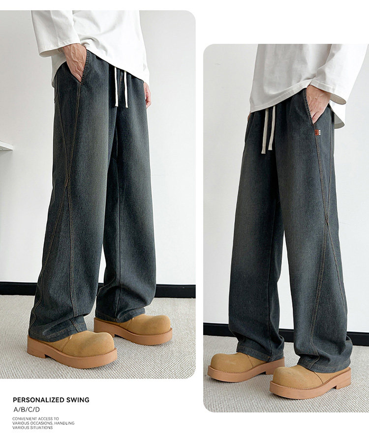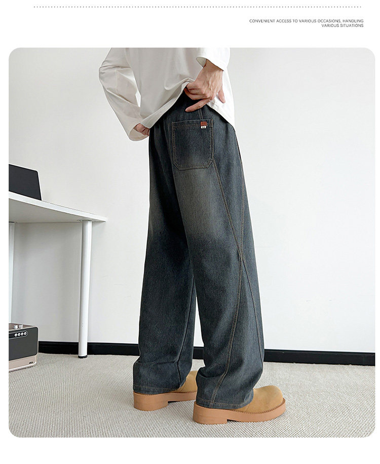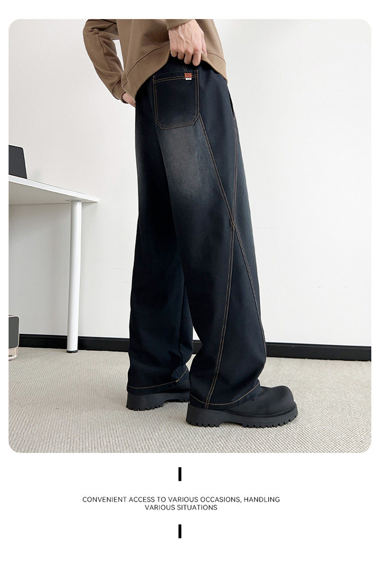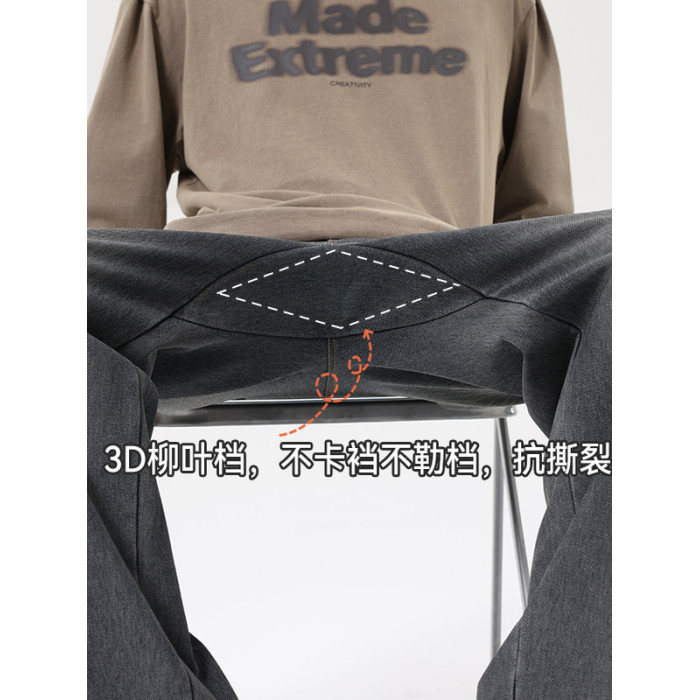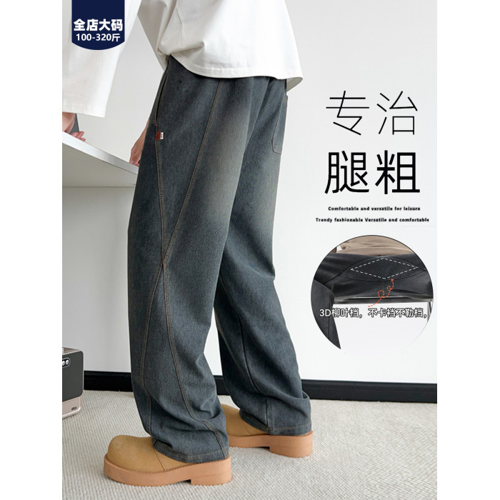 大碼柳葉襠牛仔褲男秋冬季胖子寬鬆加肥加大碼復古水洗直筒休閒褲