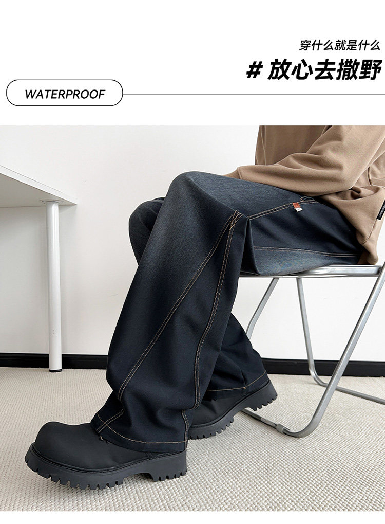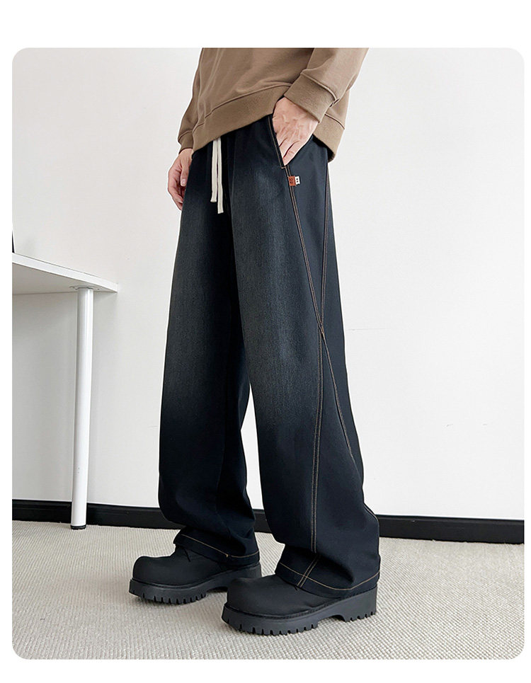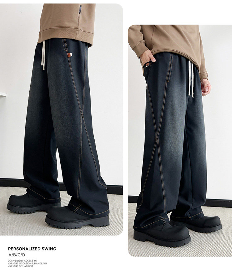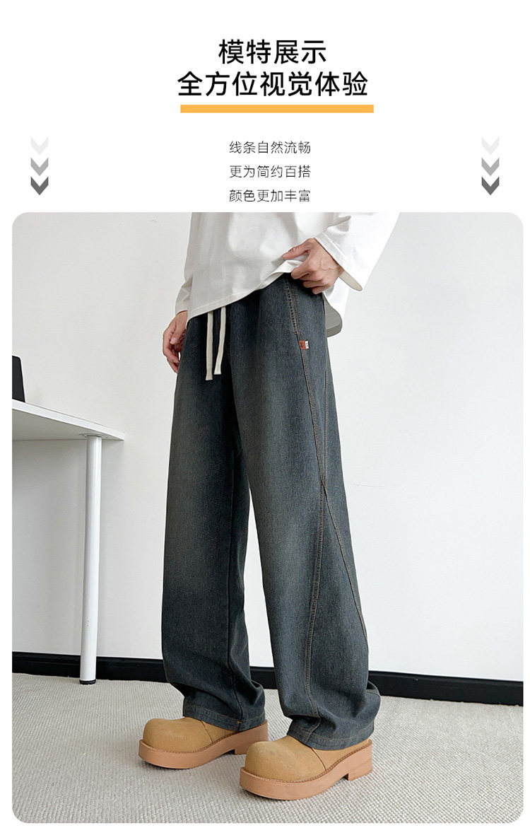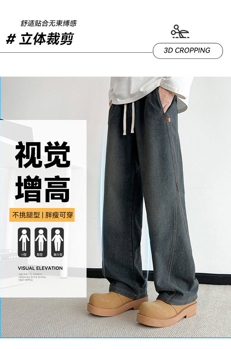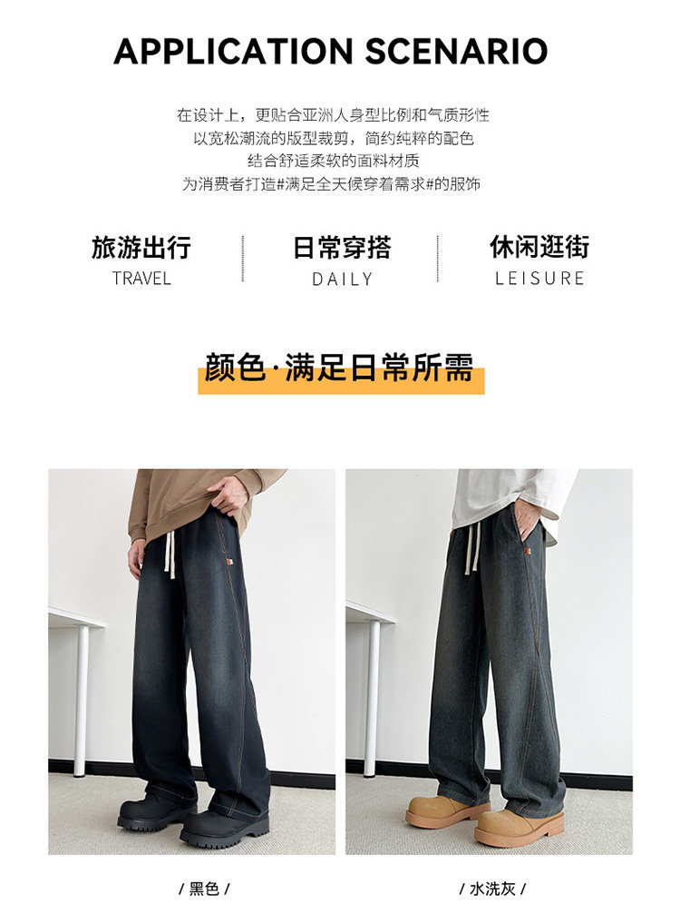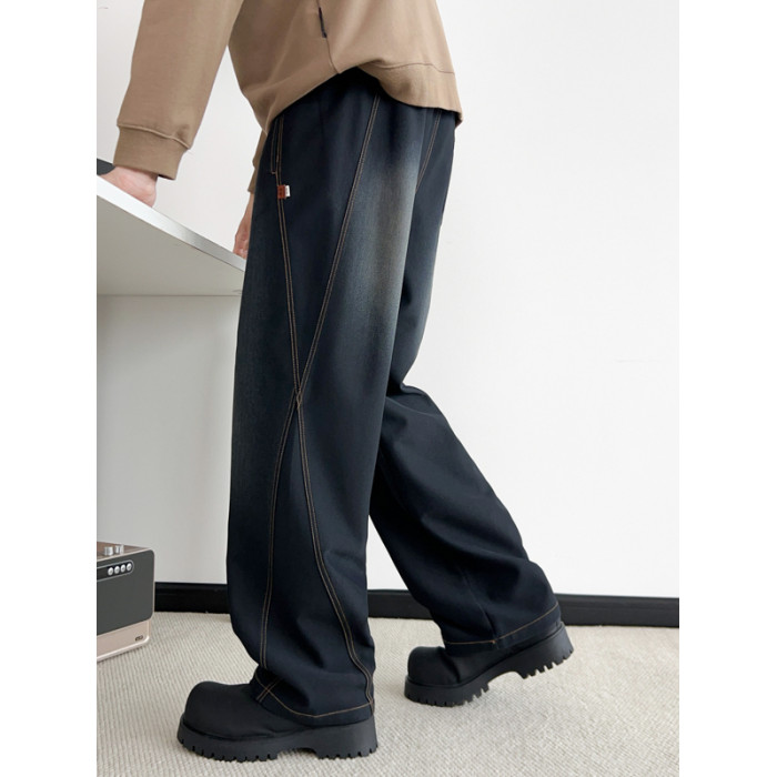 大碼柳葉襠牛仔褲男秋冬季胖子寬鬆加肥加大碼復古水洗直筒休閒褲