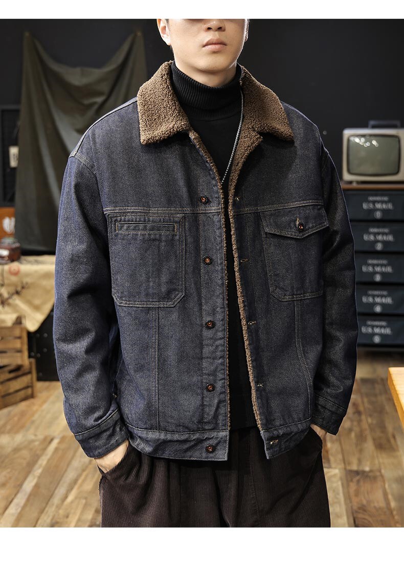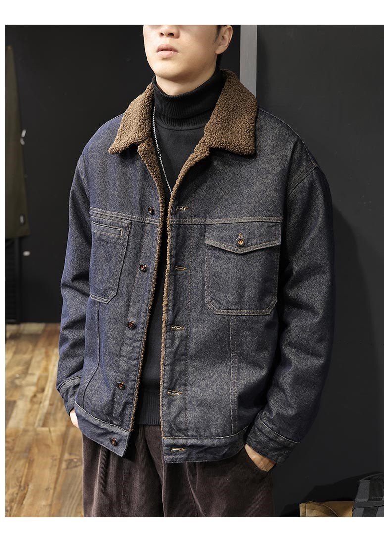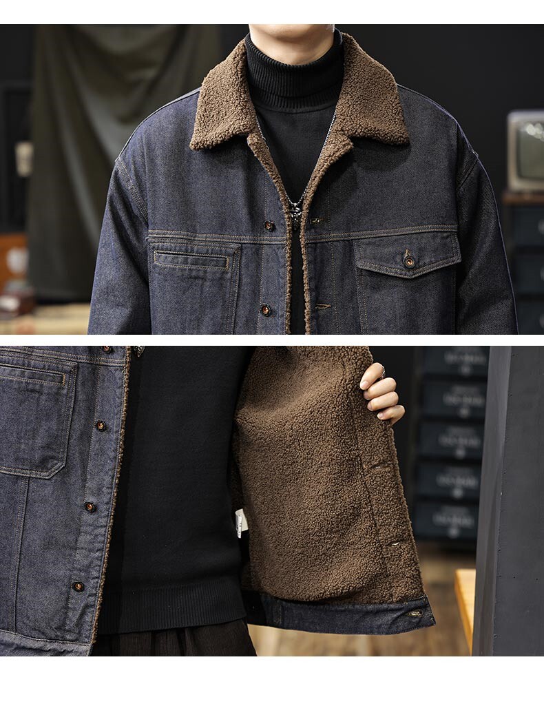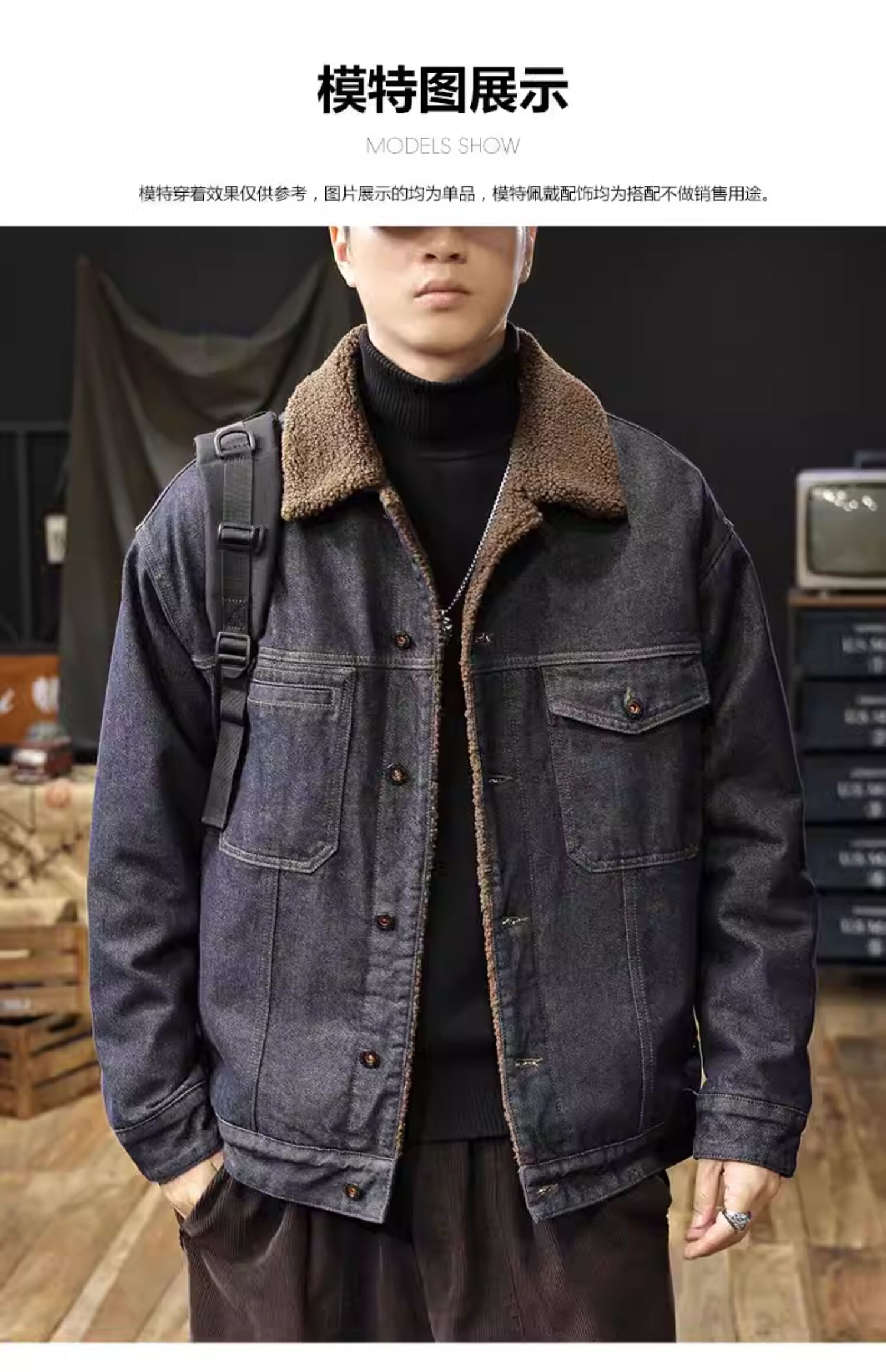 美式復古丹甯羊羔絨牛仔外套男冬季潮牌新款加絨加厚保暖棉服夾克