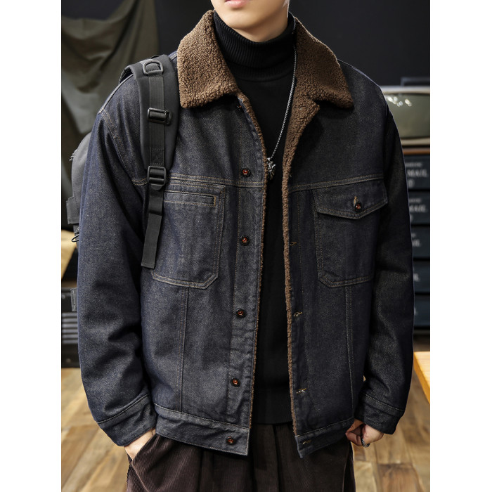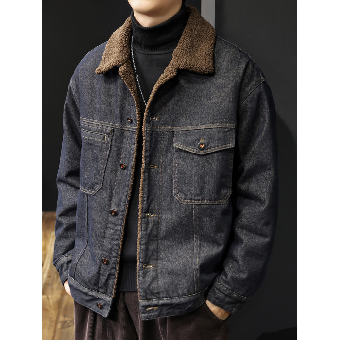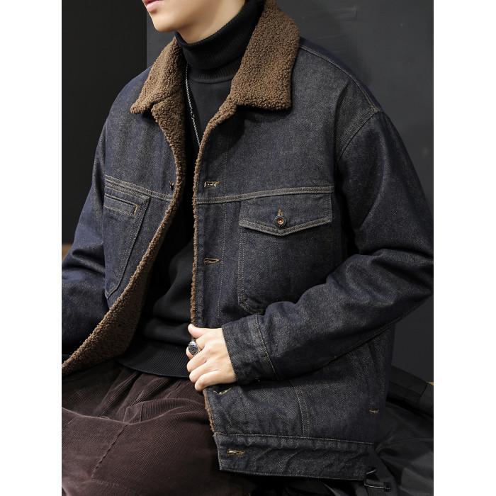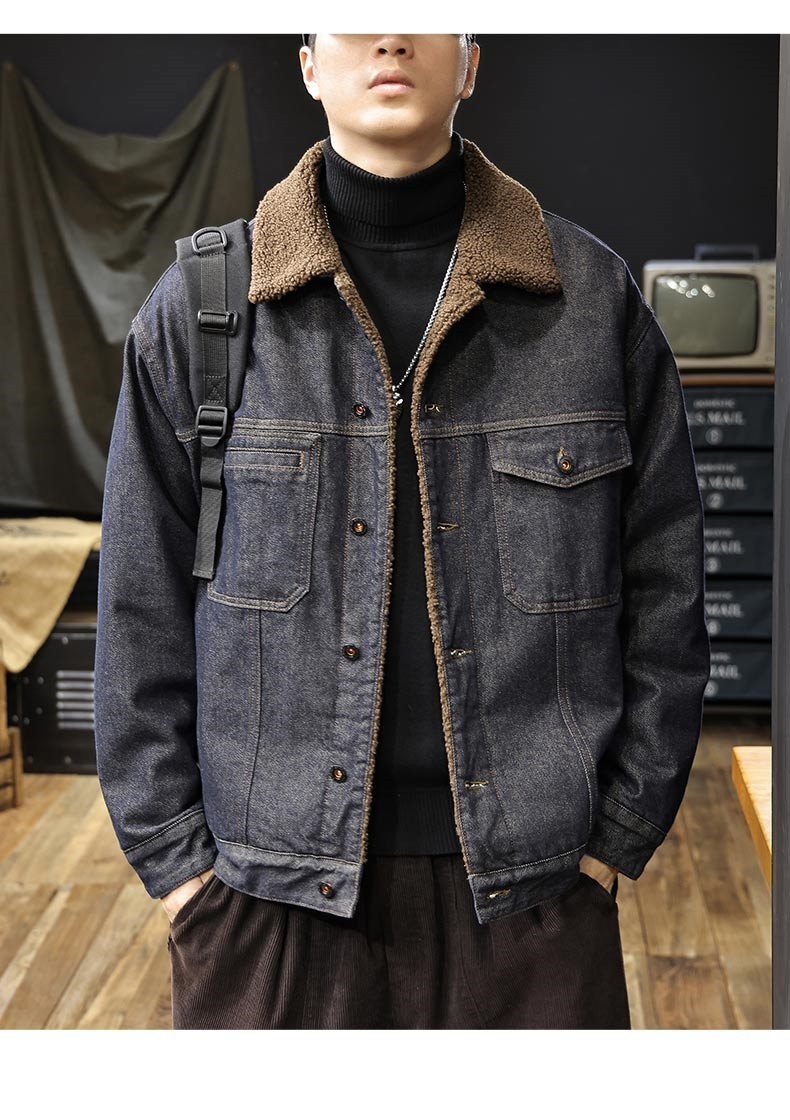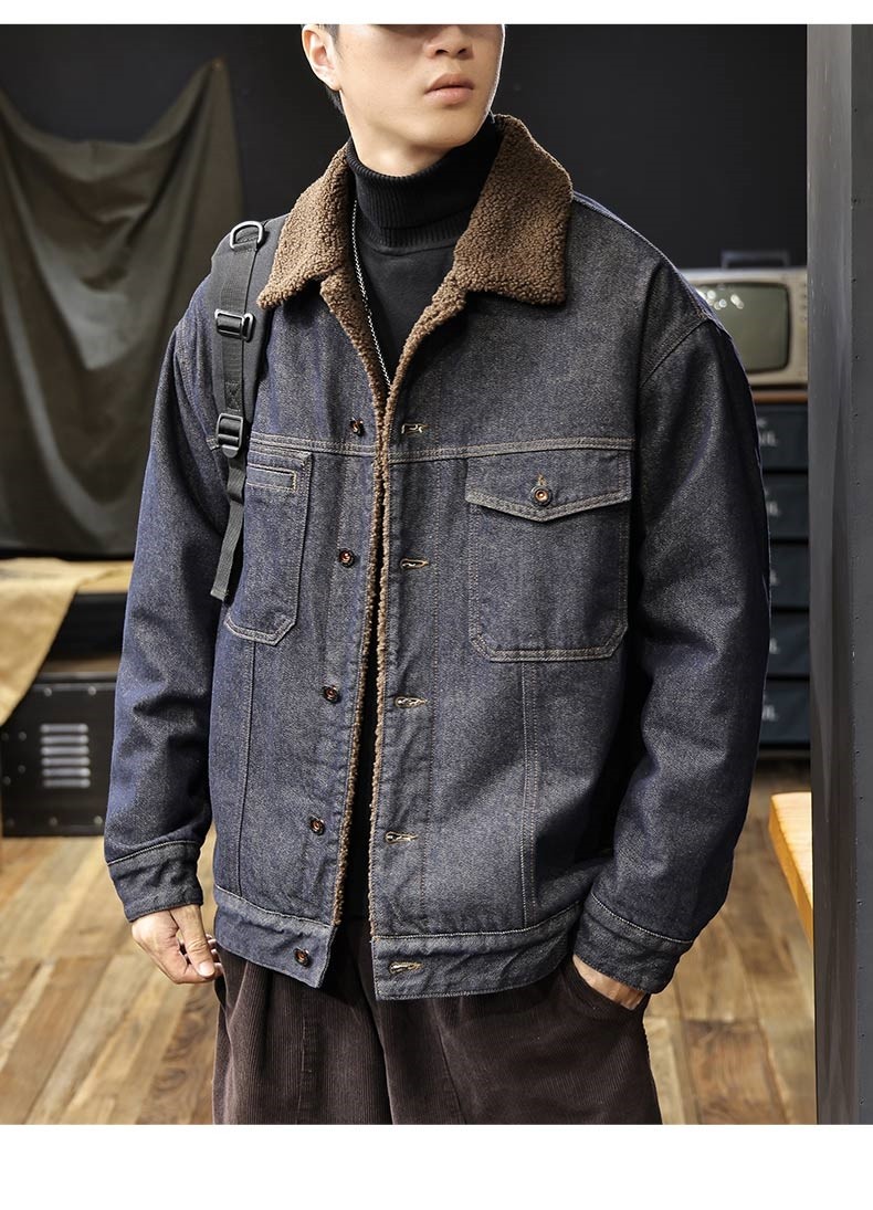 美式復古丹甯羊羔絨牛仔外套男冬季潮牌新款加絨加厚保暖棉服夾克