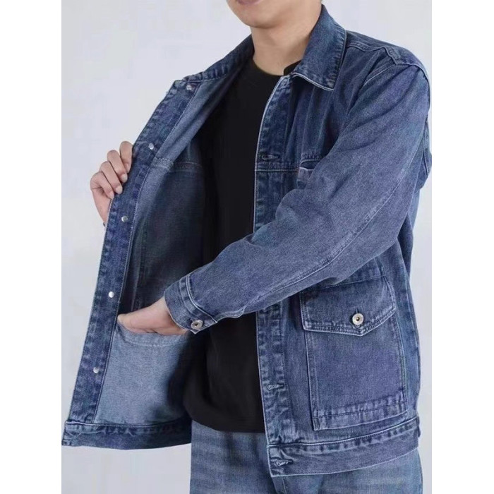 乾活穿牛仔外套男士加絨加厚大碼勞保工作服工裝秋冬季耐磨夾克服