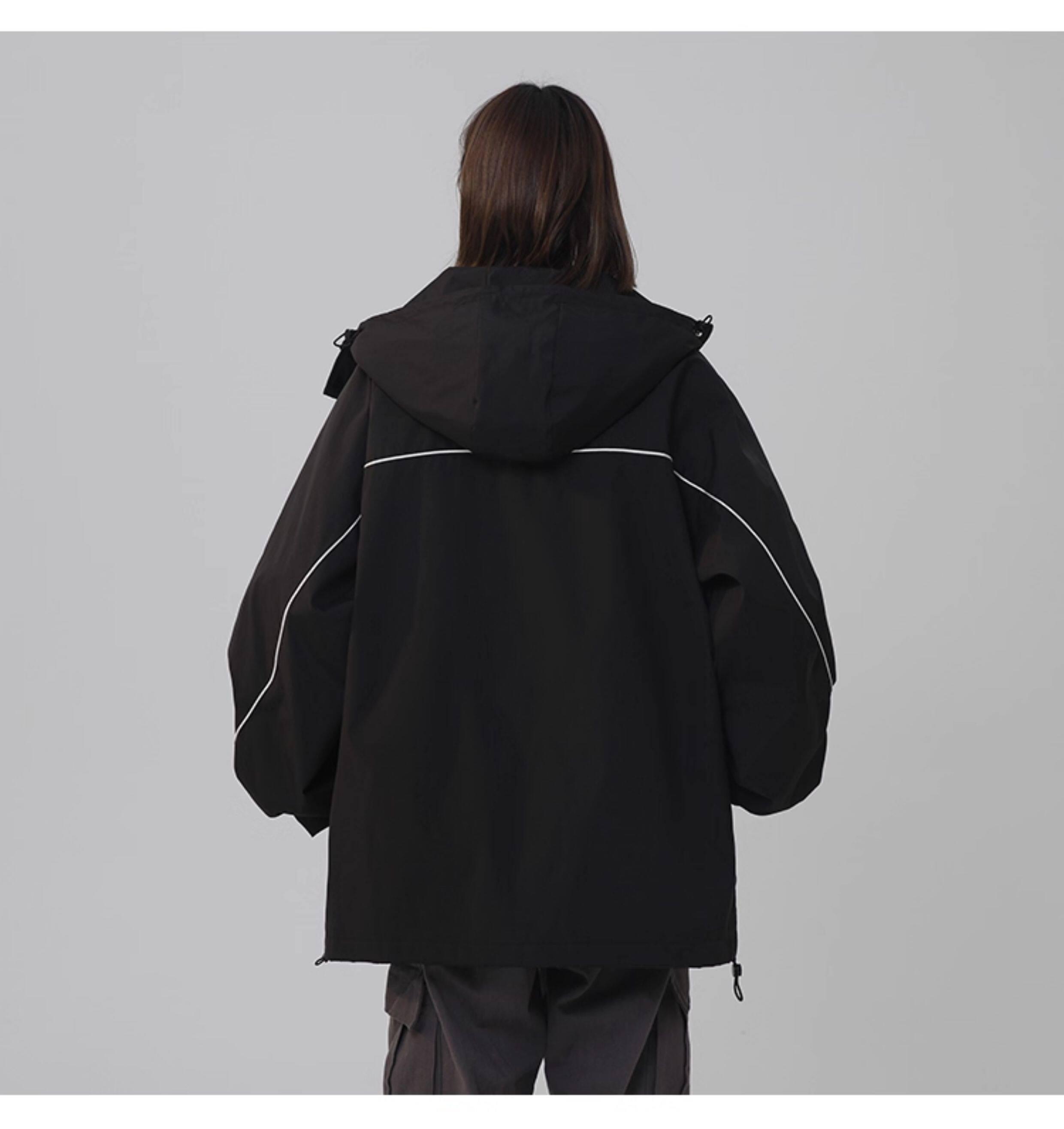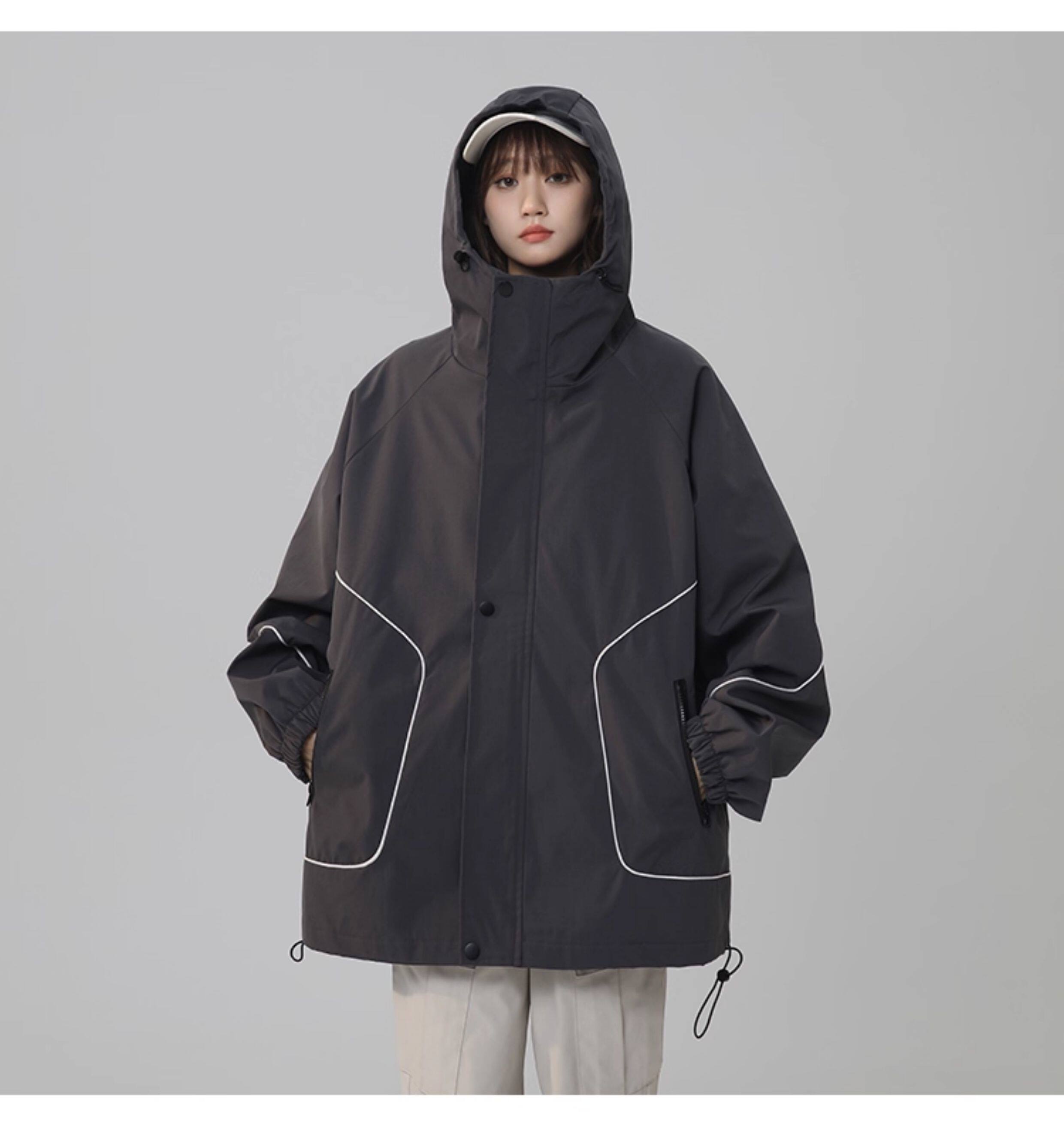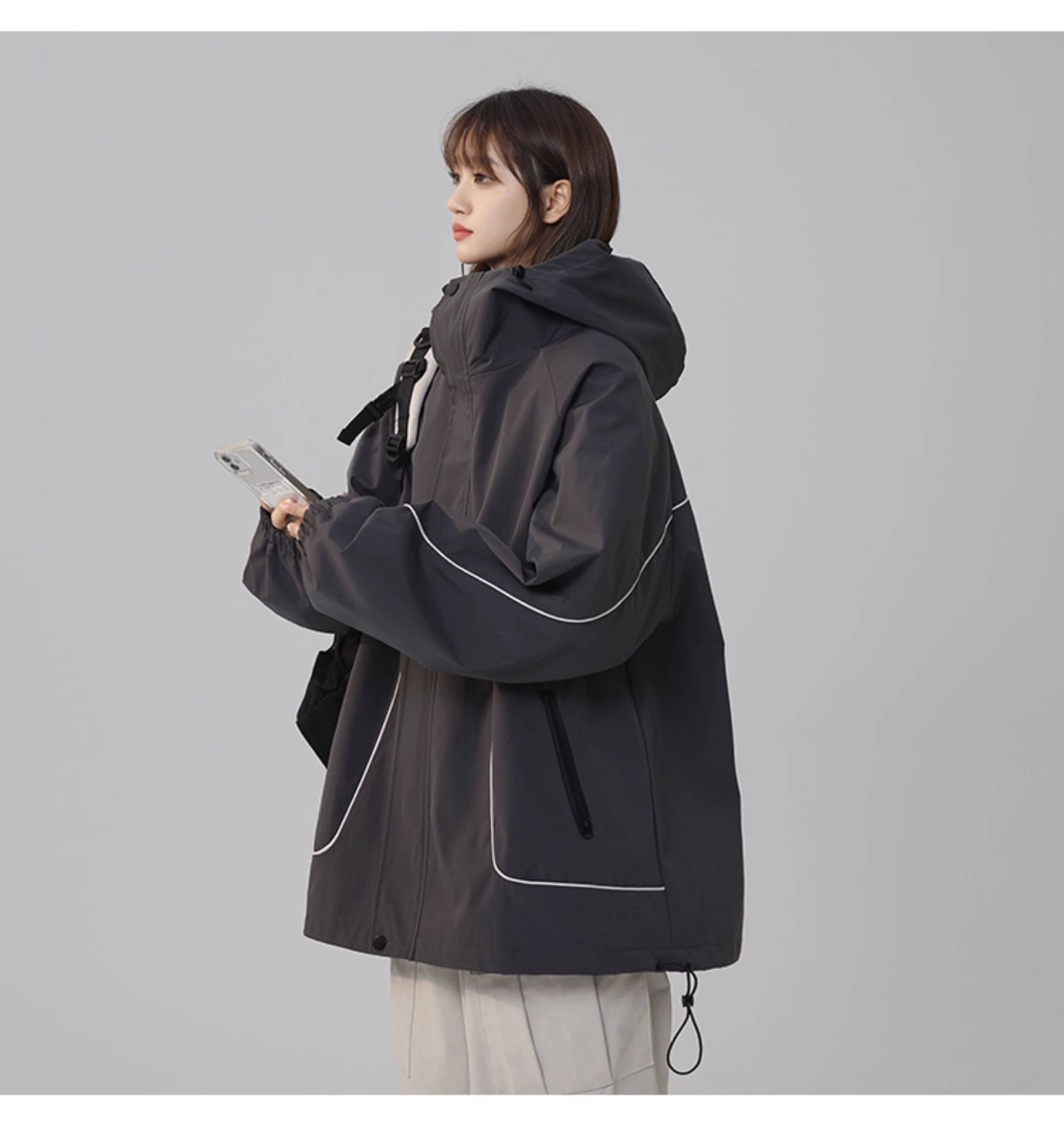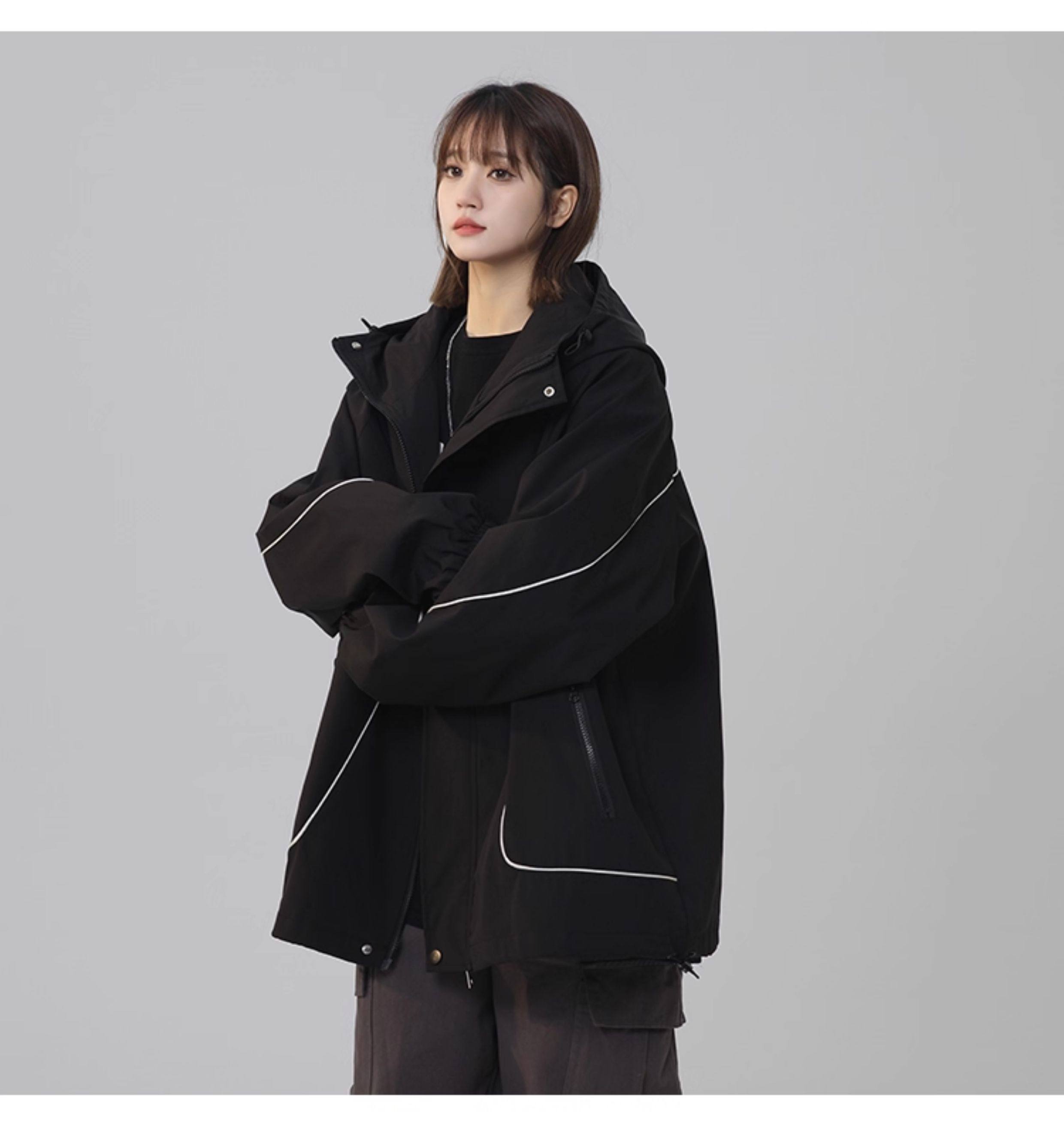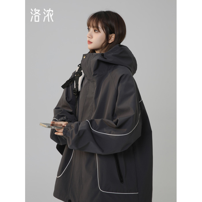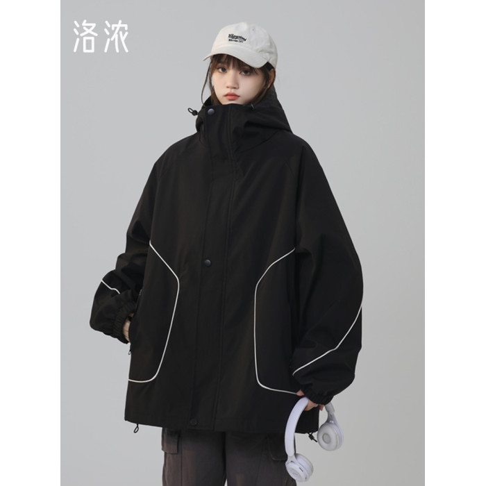 洛濃無性別秋季夾克外套男女連帽沖鋒防潑水純色寬鬆大碼高街學生