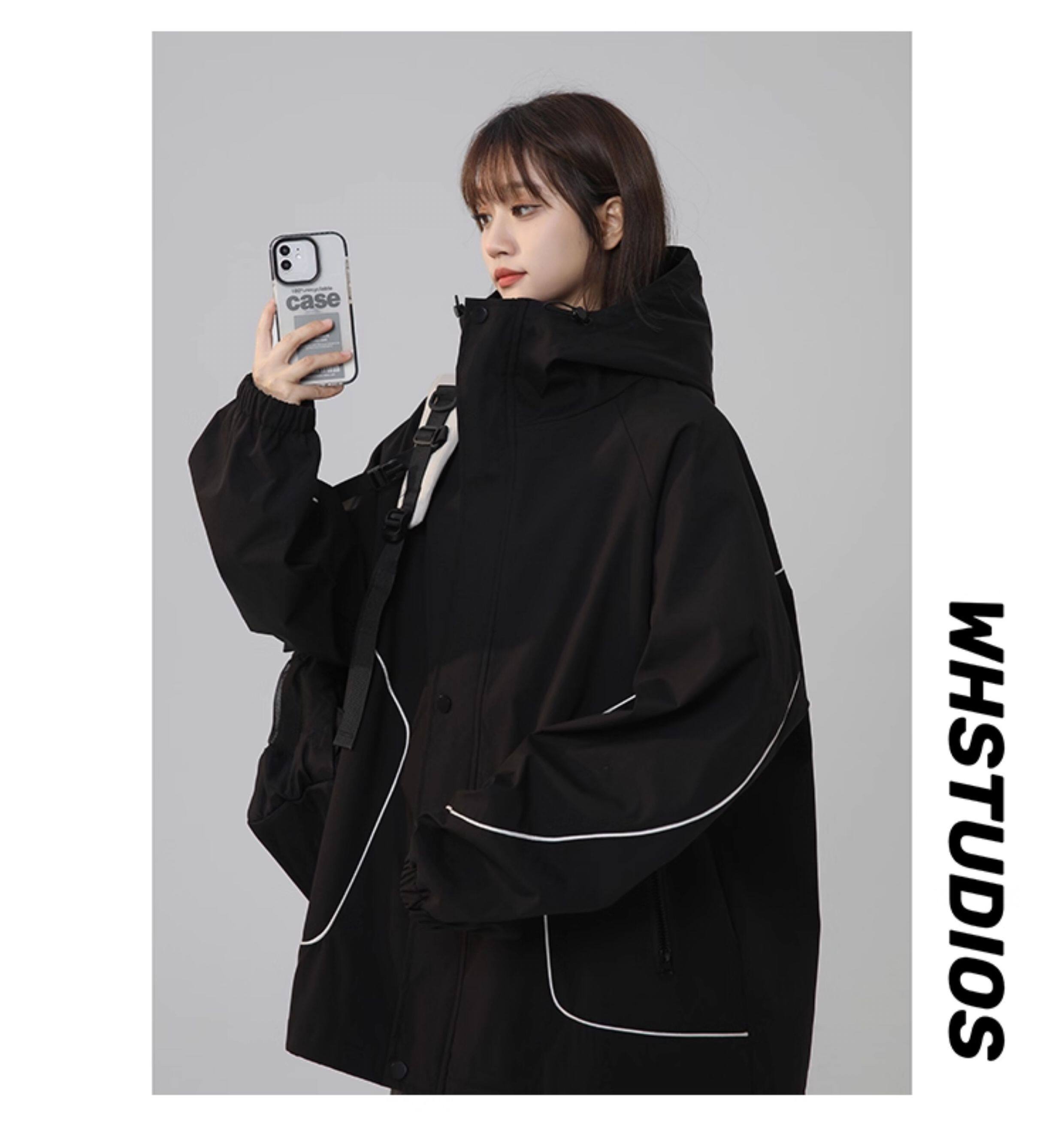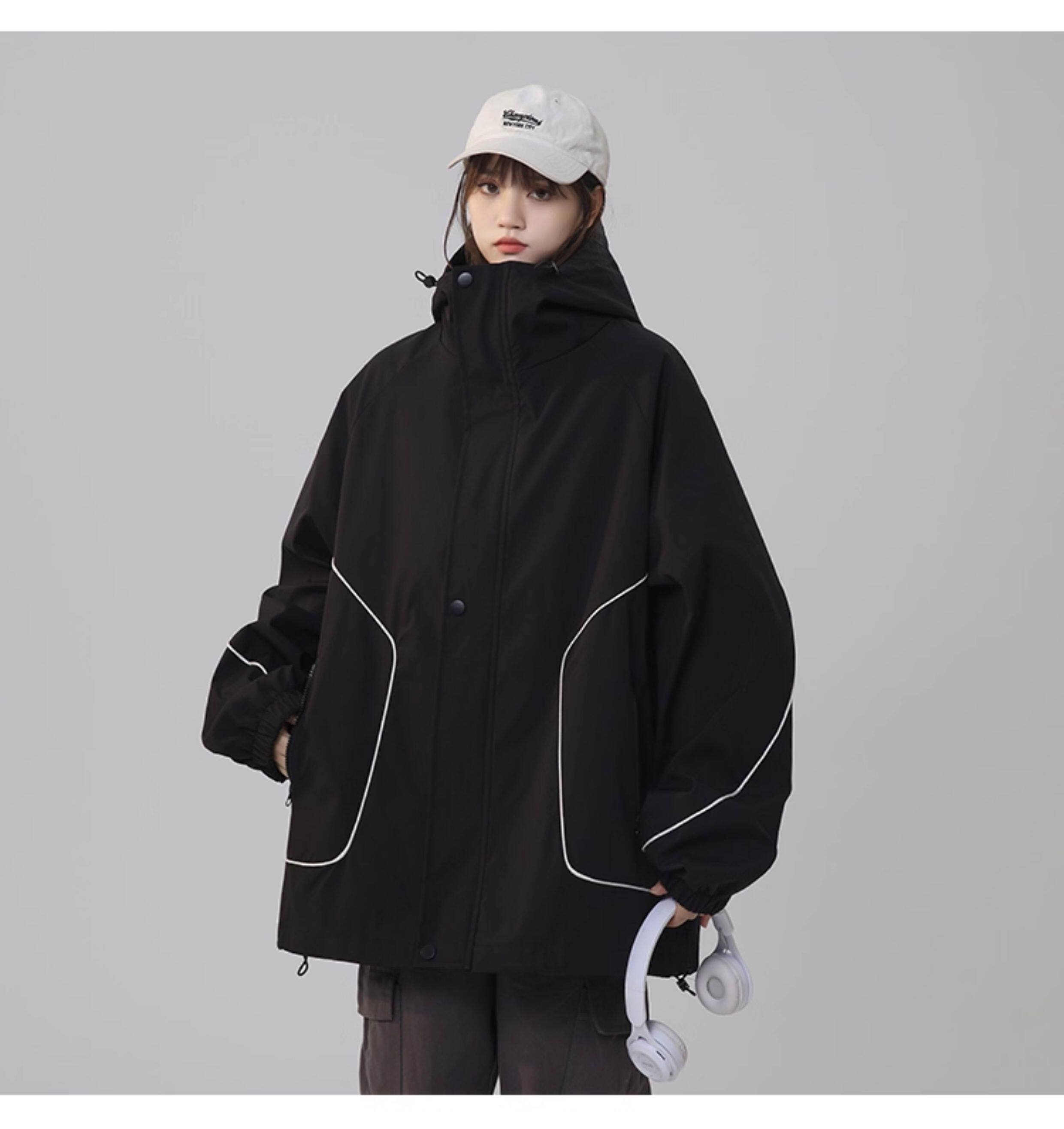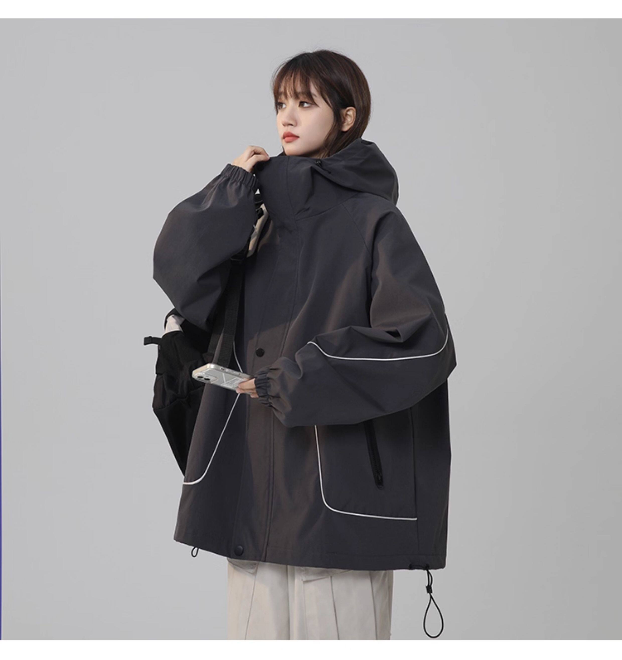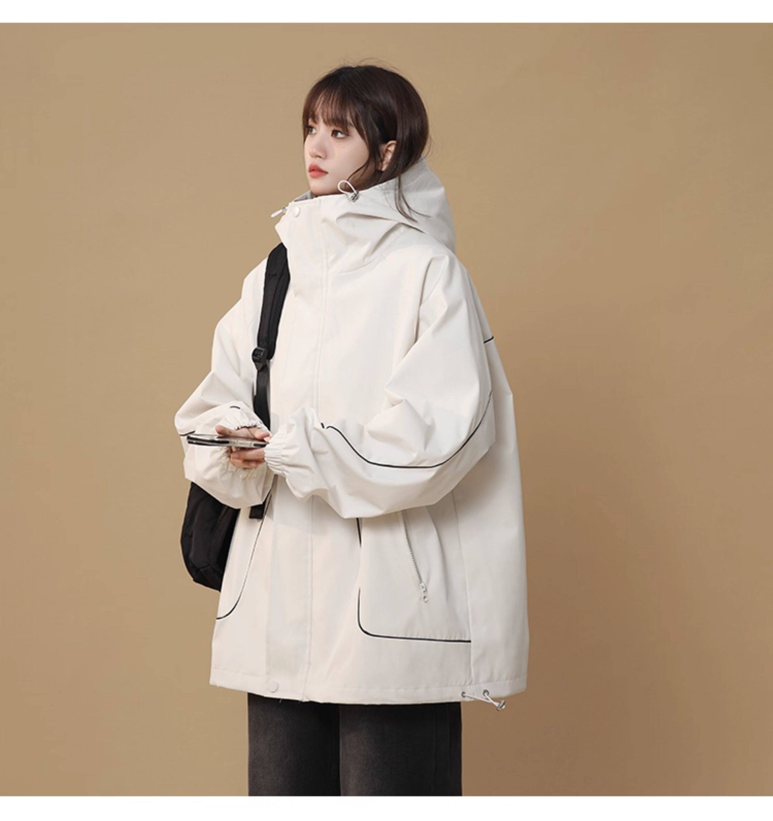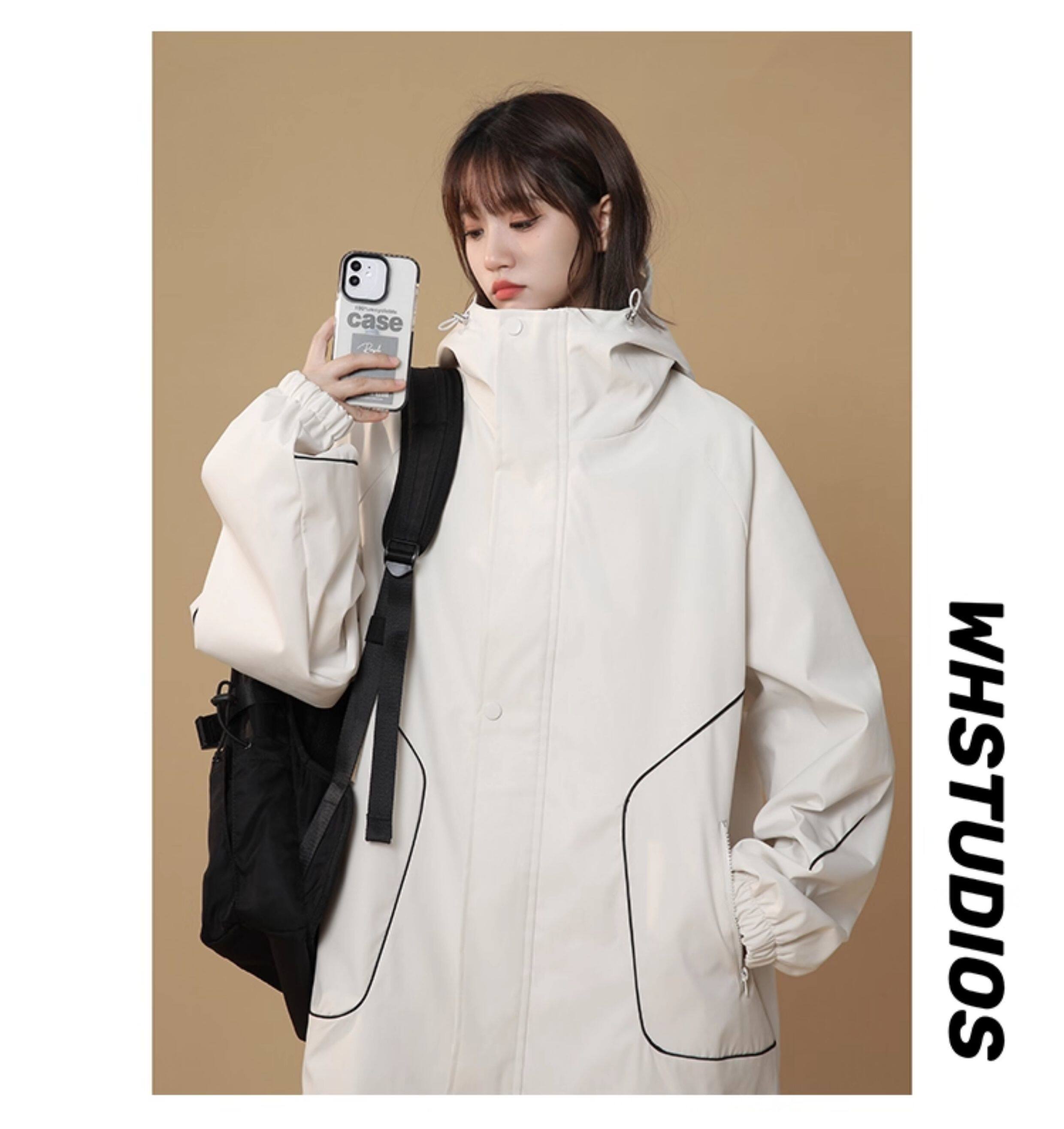 洛濃無性別秋季夾克外套男女連帽沖鋒防潑水純色寬鬆大碼高街學生