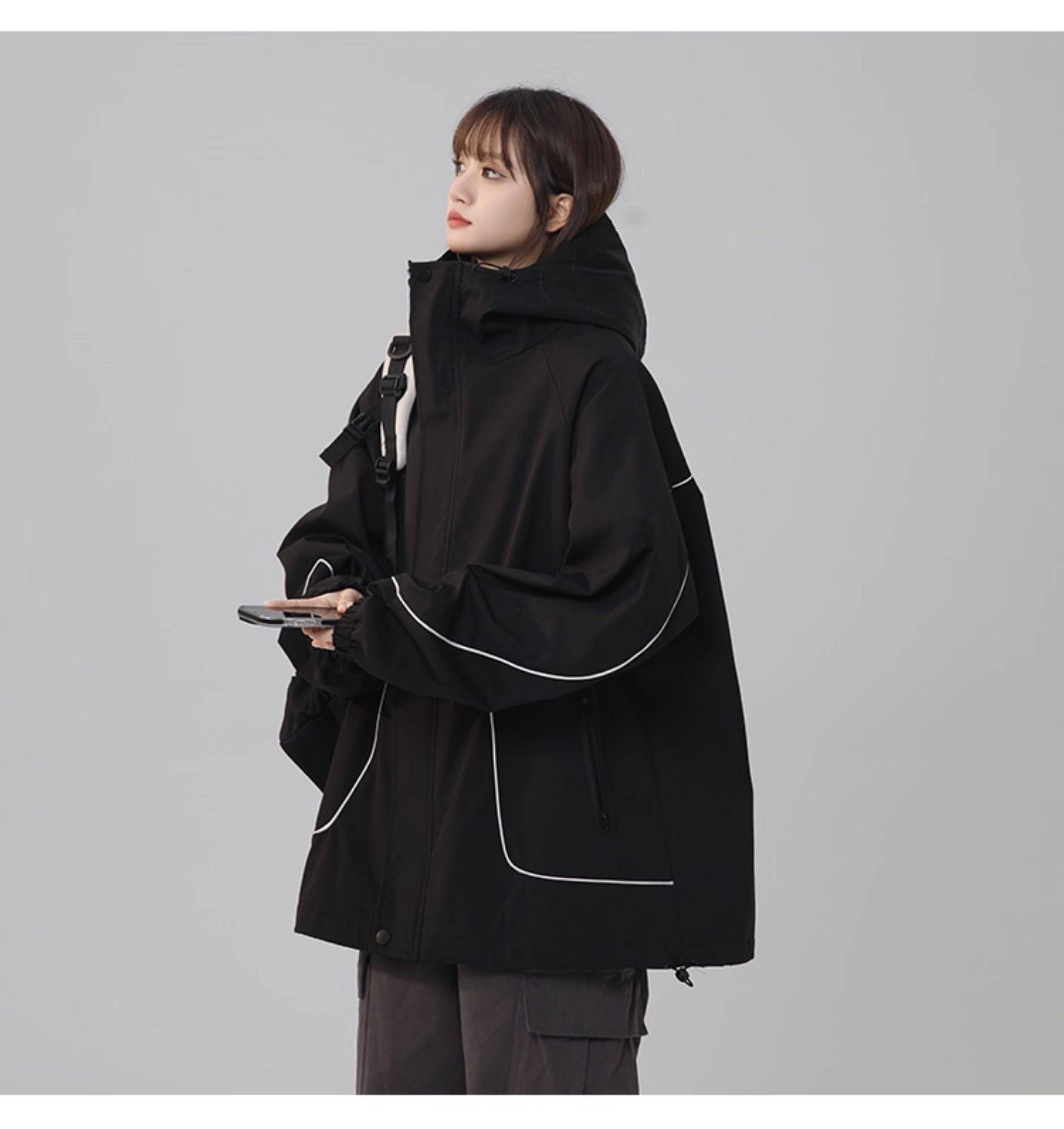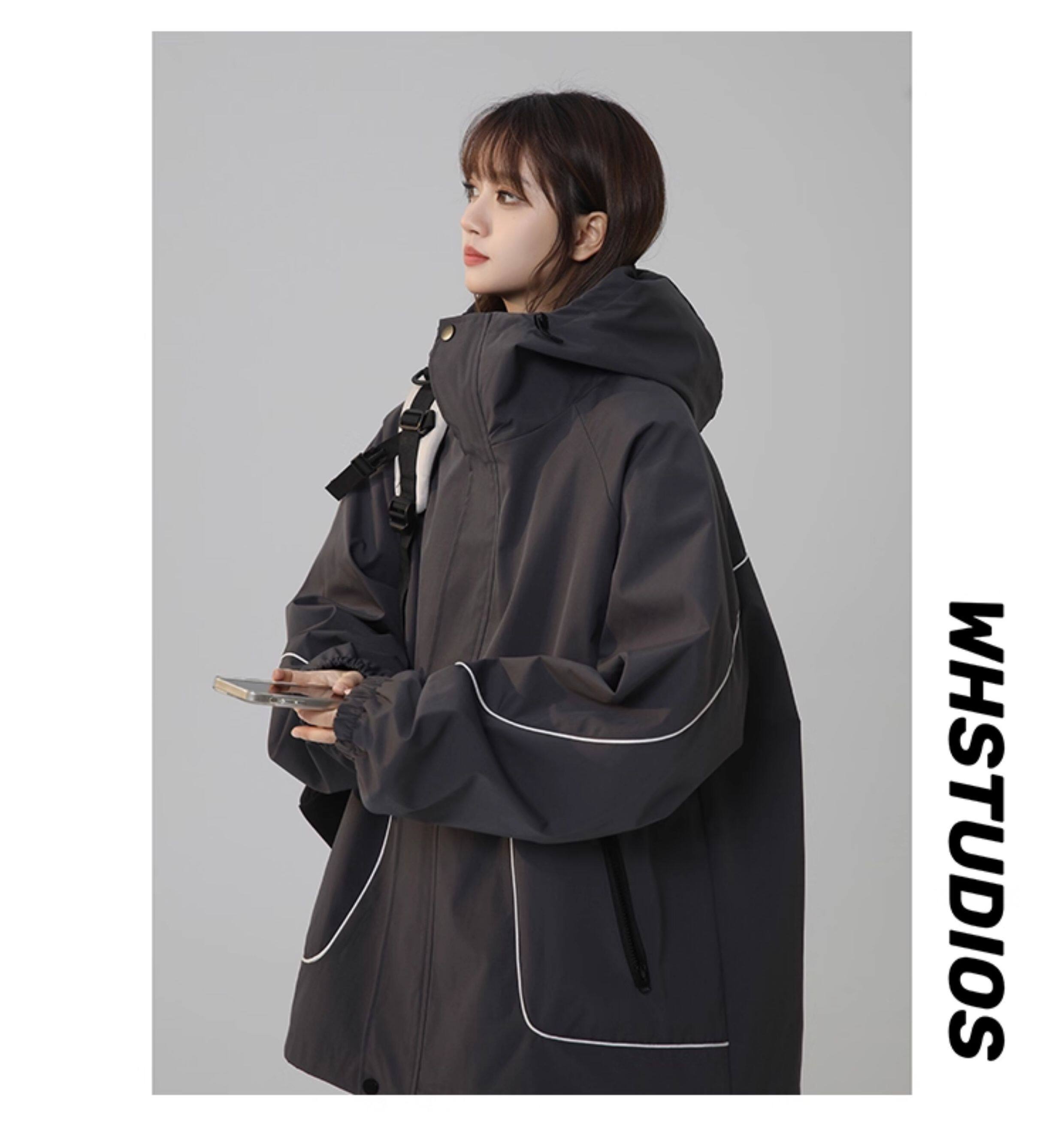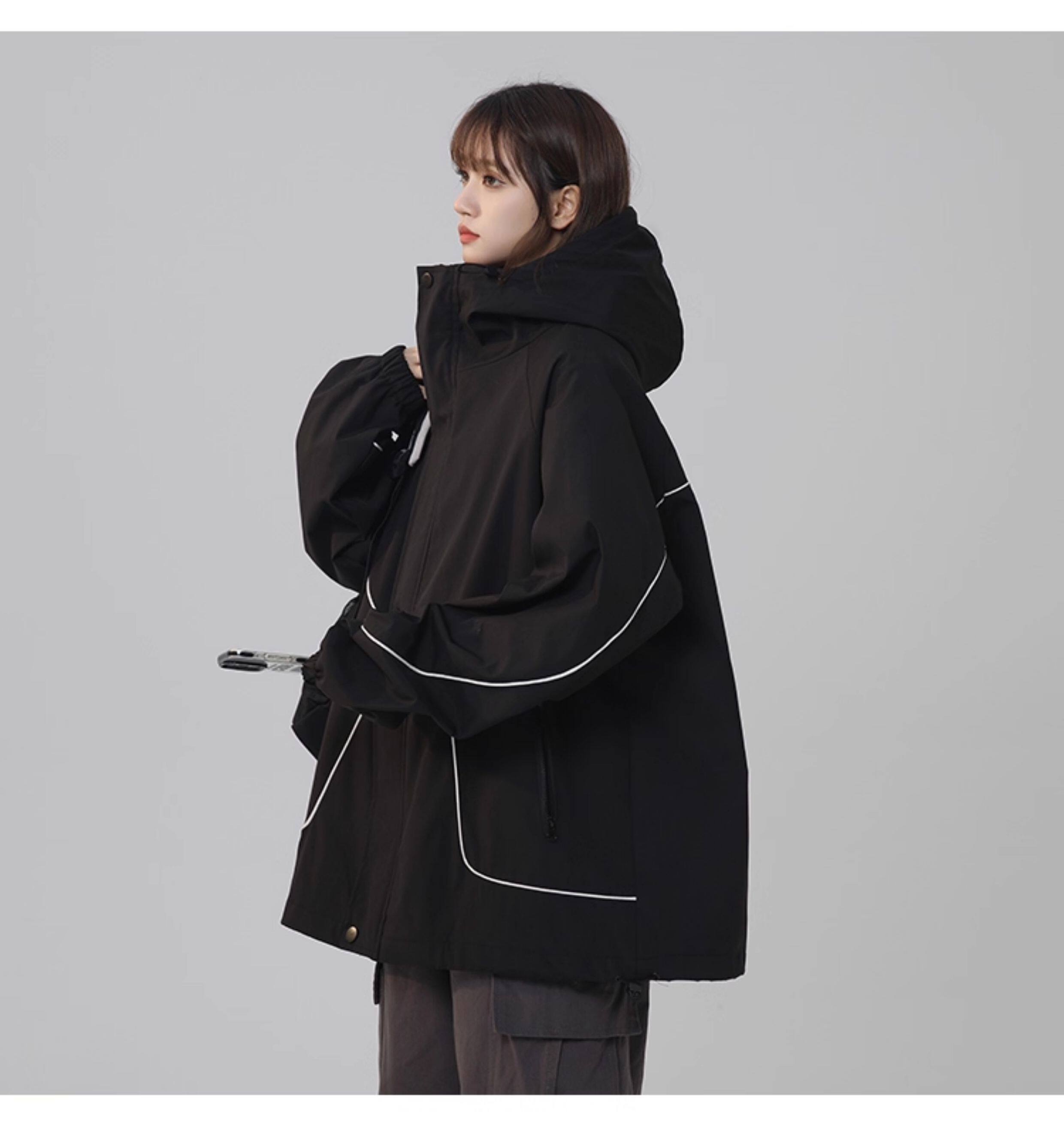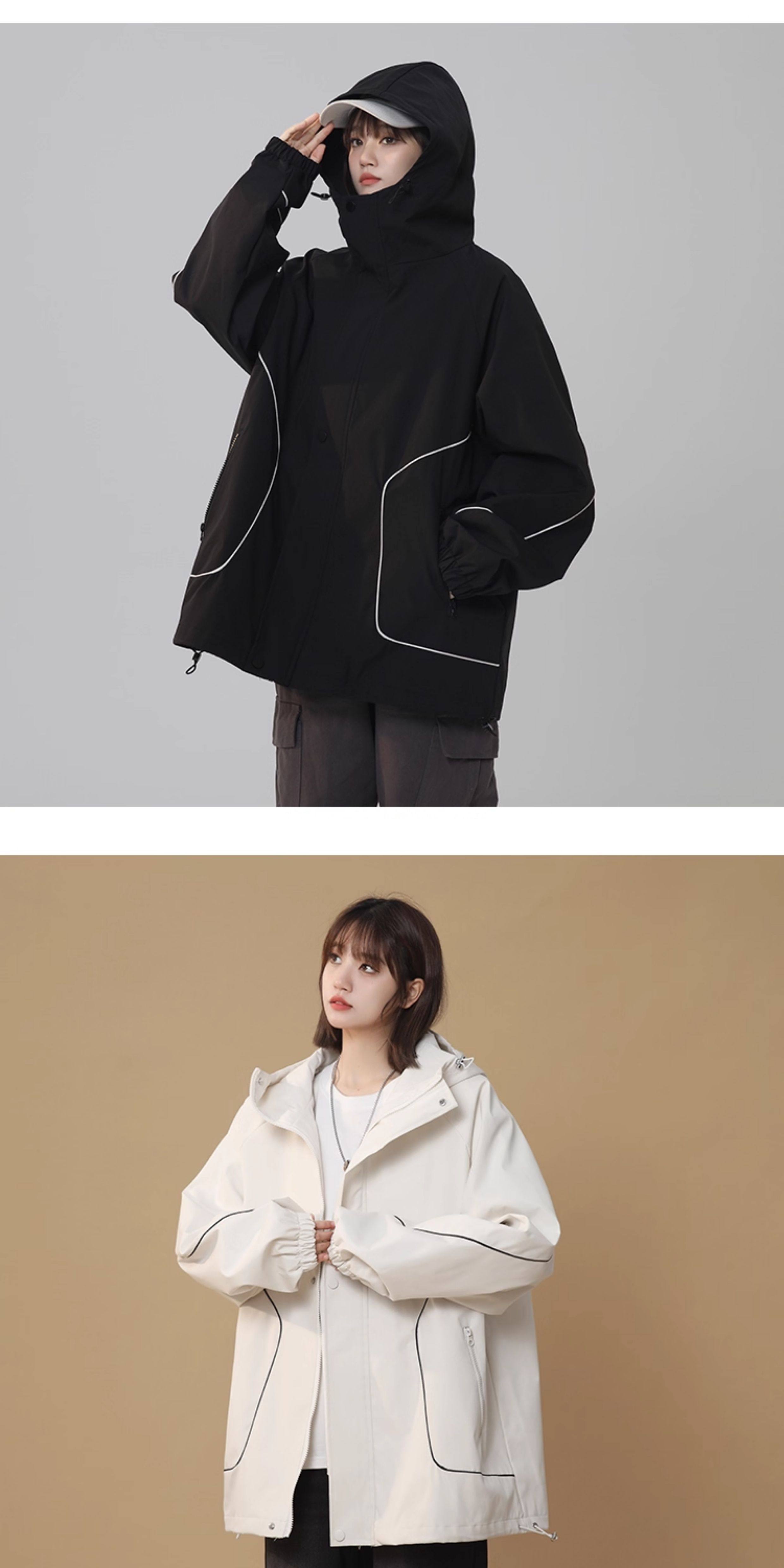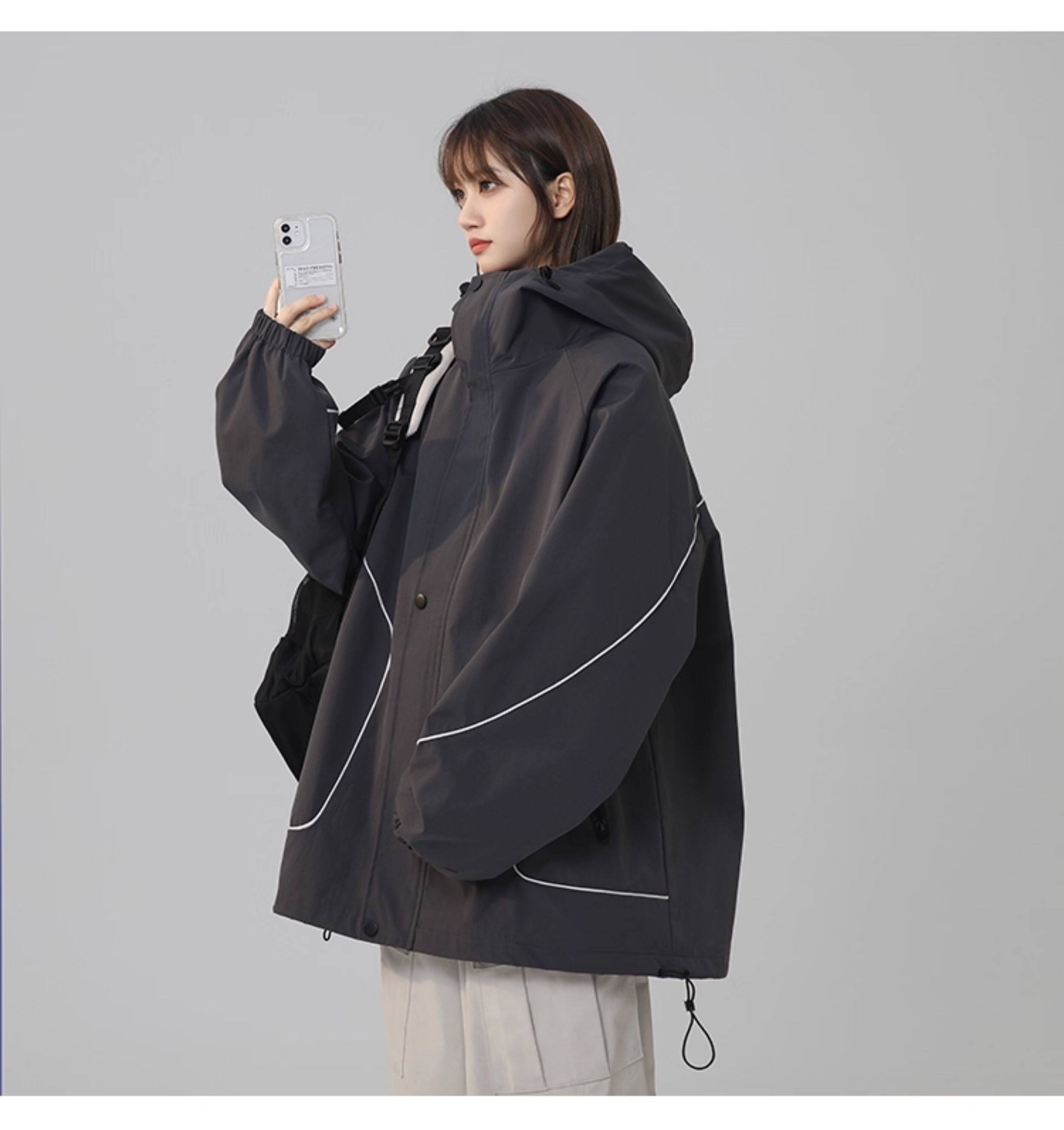 洛濃無性別秋季夾克外套男女連帽沖鋒防潑水純色寬鬆大碼高街學生