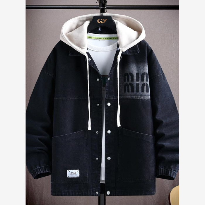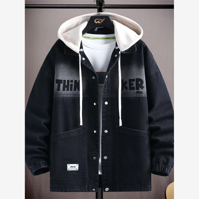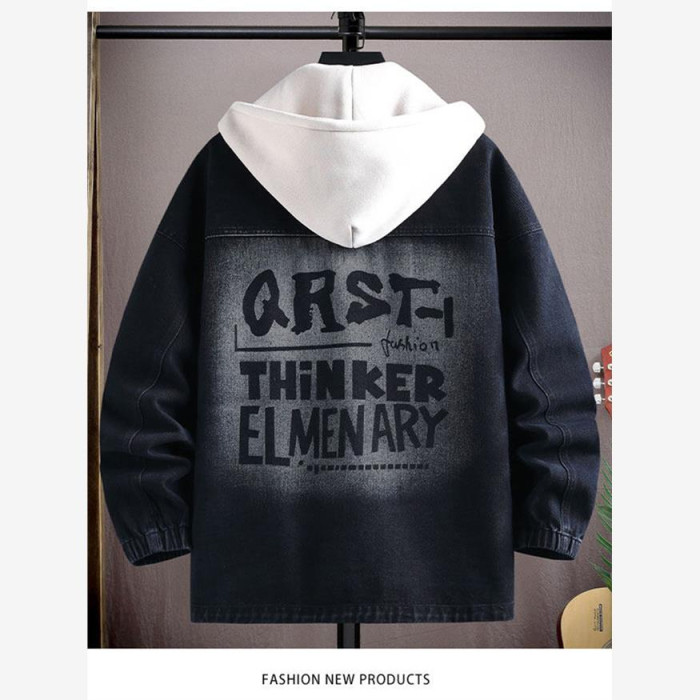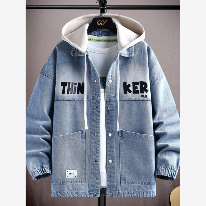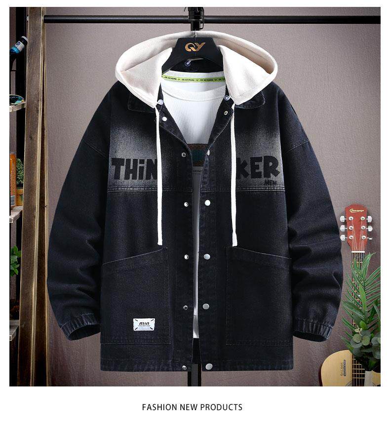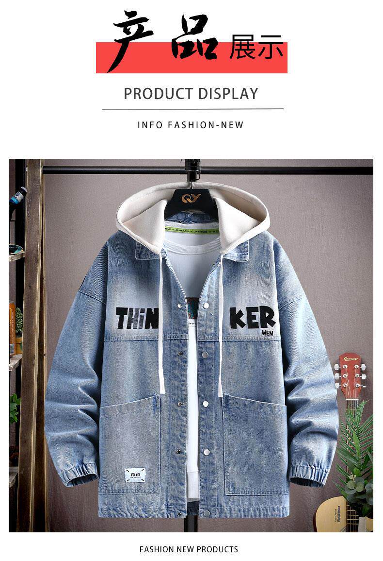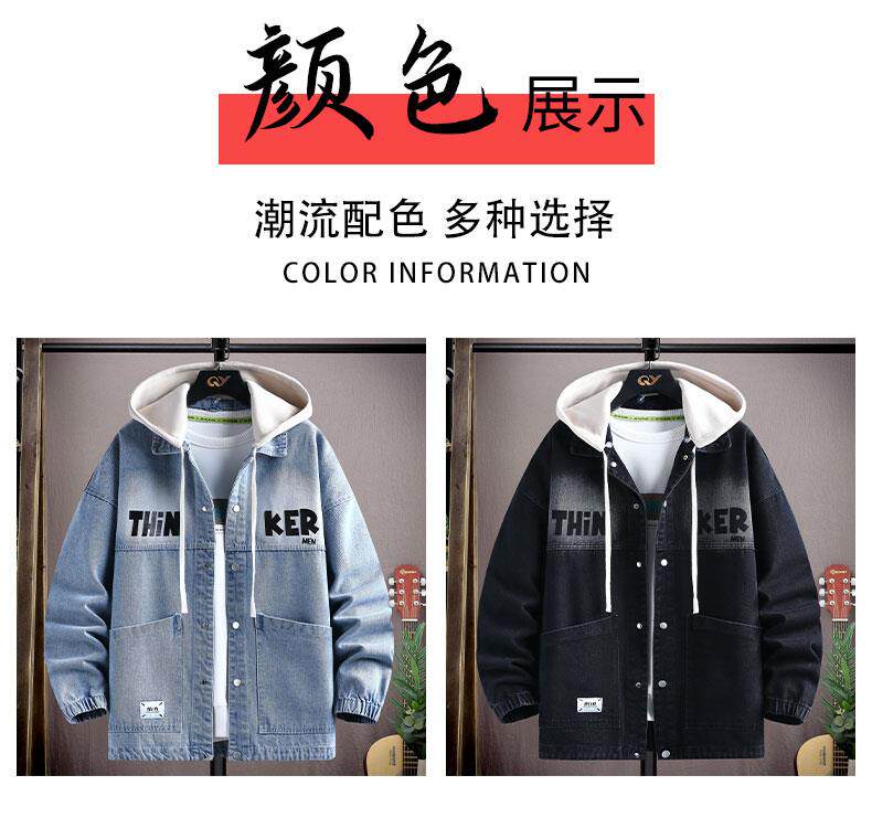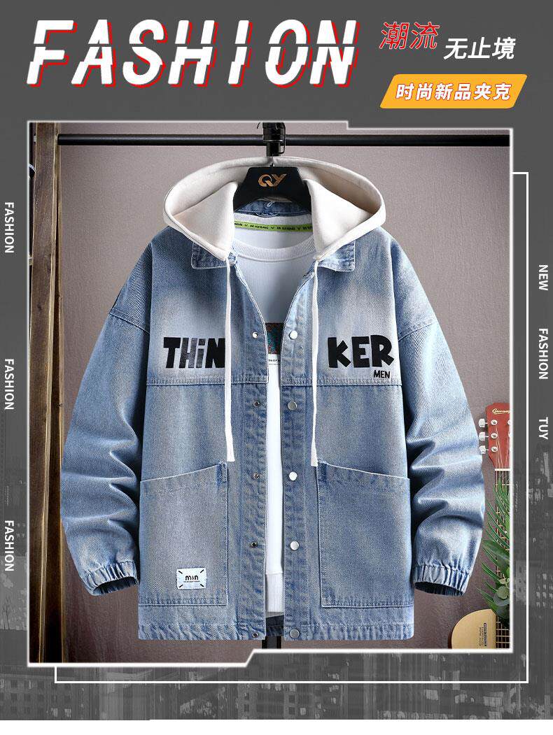 2025春裝新款連帽牛仔外套男青少年初高中學生春秋季休閒時尚夾克