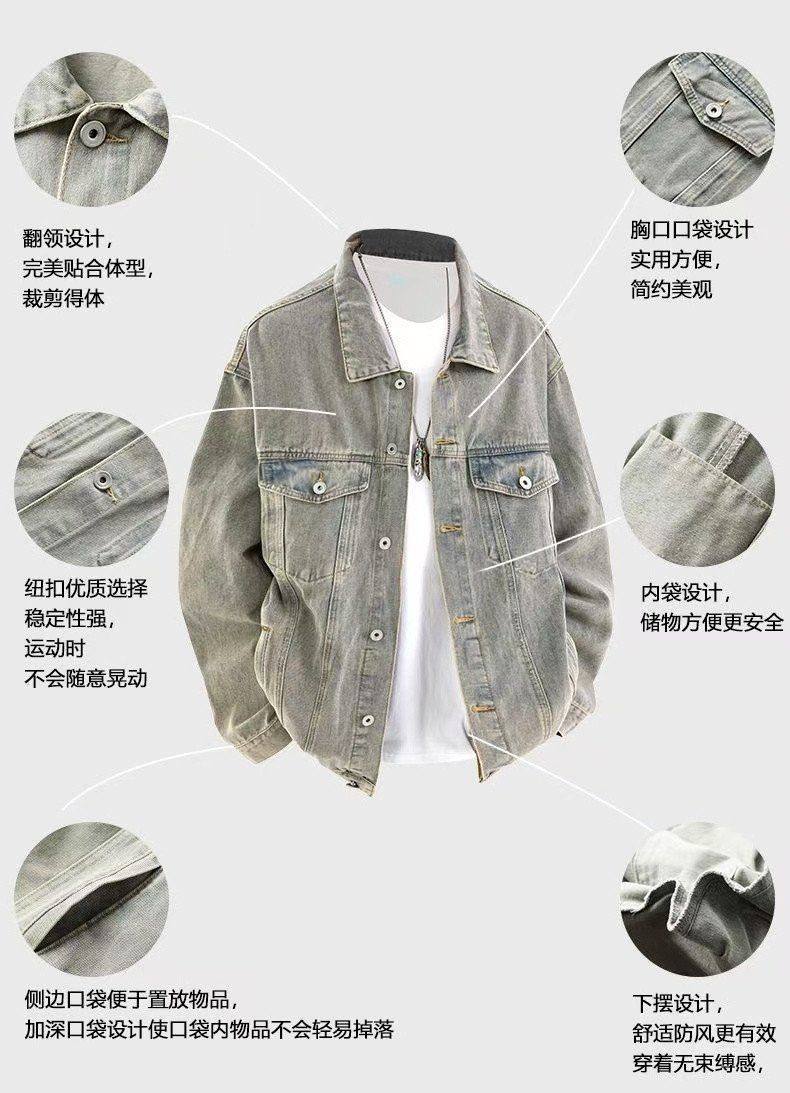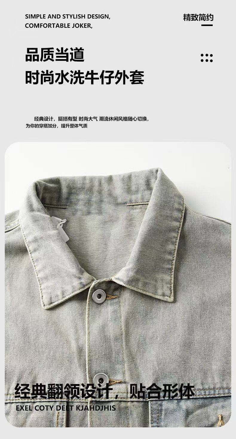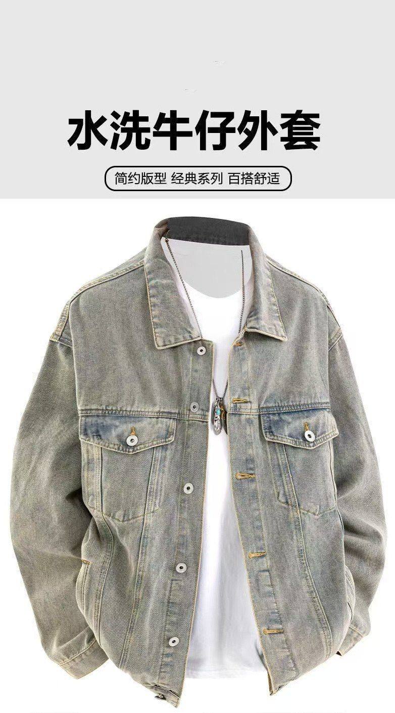 美式復古做舊水洗牛仔外套男春秋季寬鬆工裝高街黃泥潮流百搭夾克