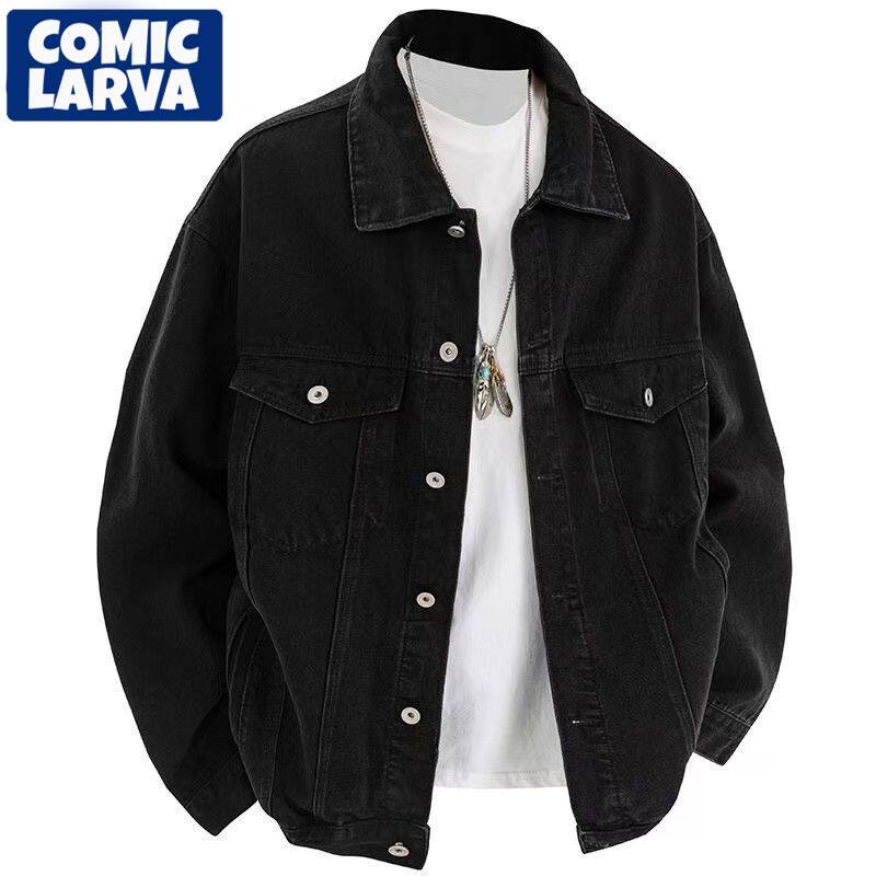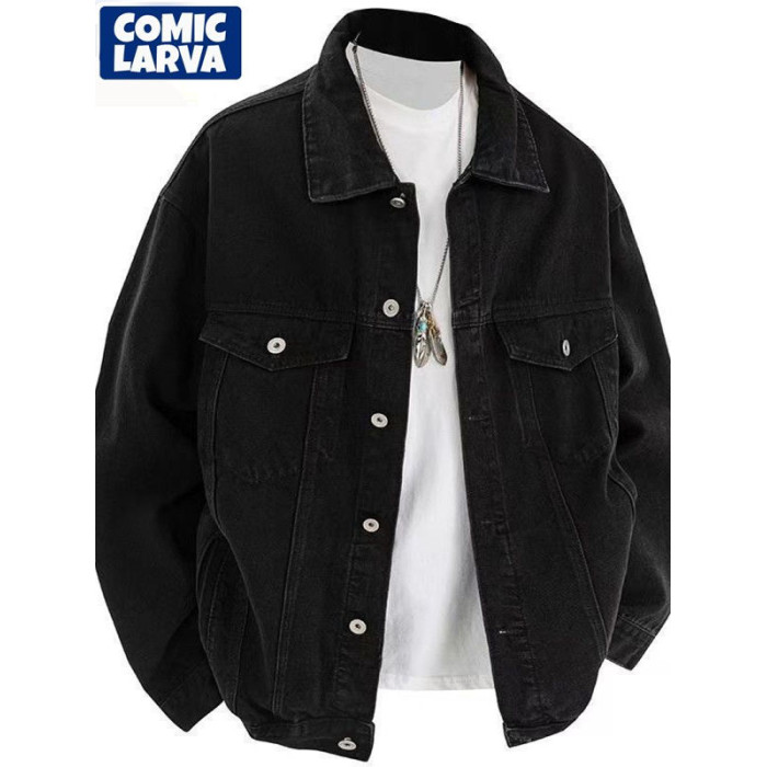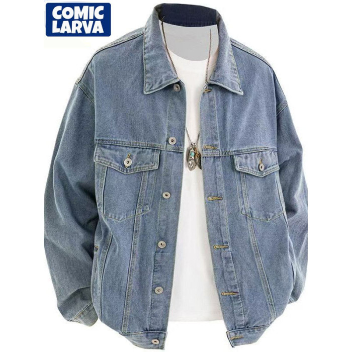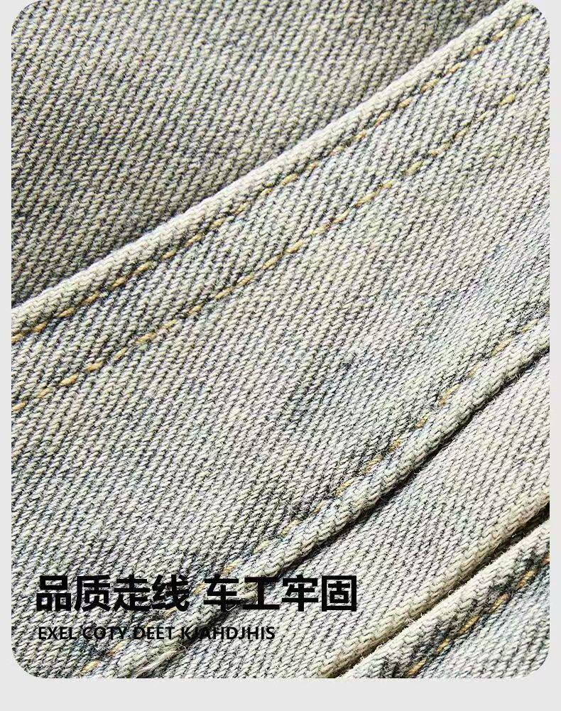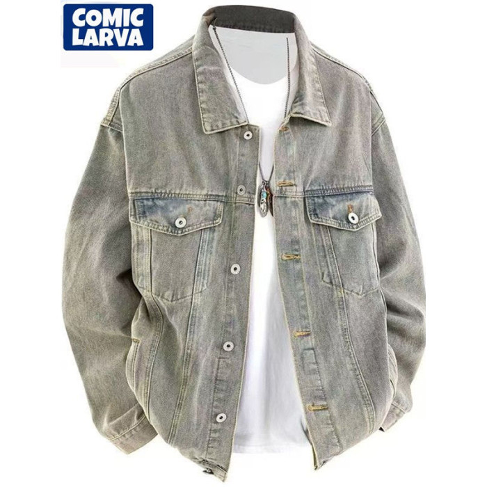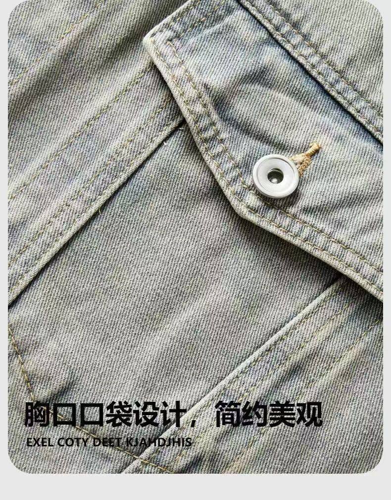 美式復古做舊水洗牛仔外套男春秋季寬鬆工裝高街黃泥潮流百搭夾克