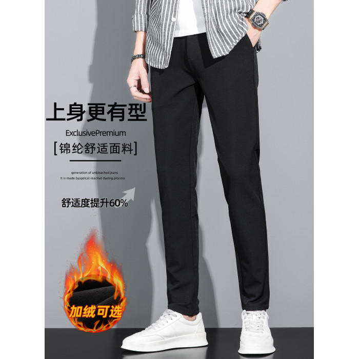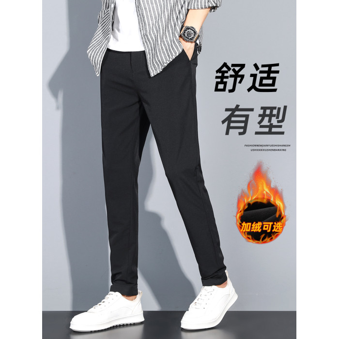 秋冬2026新款男士休閒褲修身直筒褲商務西褲不沾毛長褲加絨男褲子