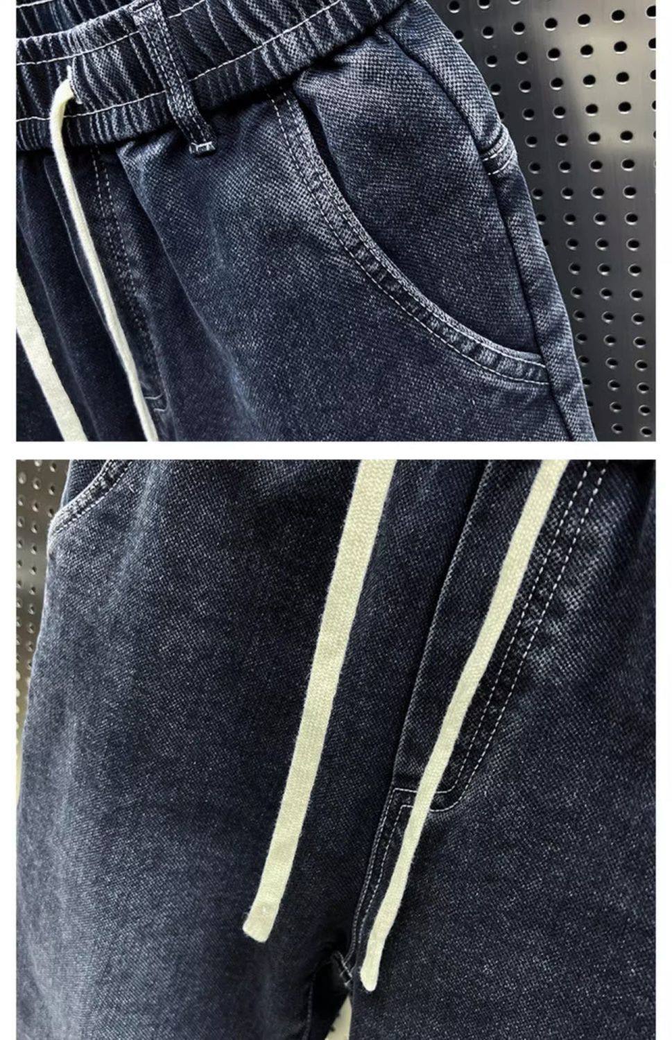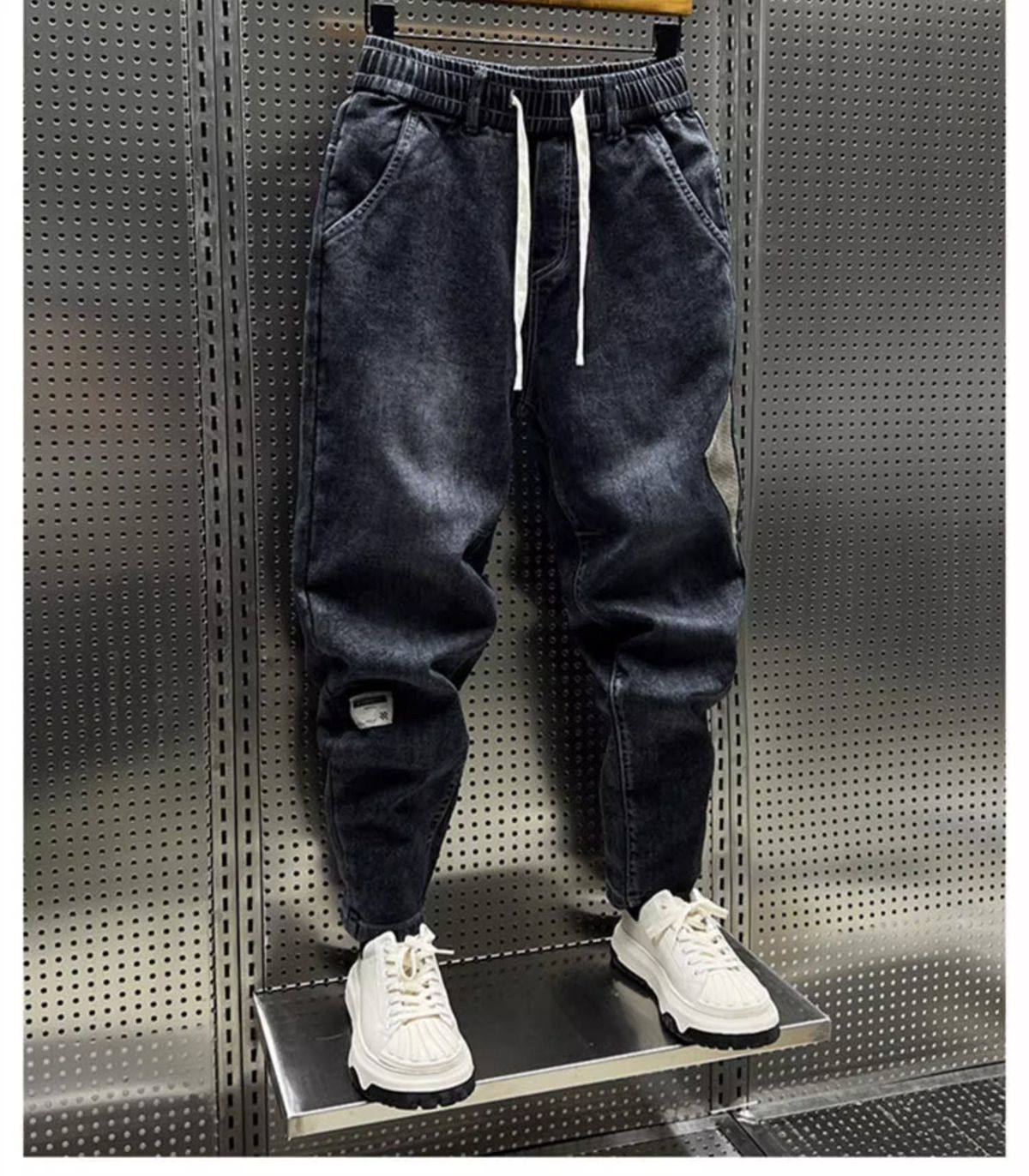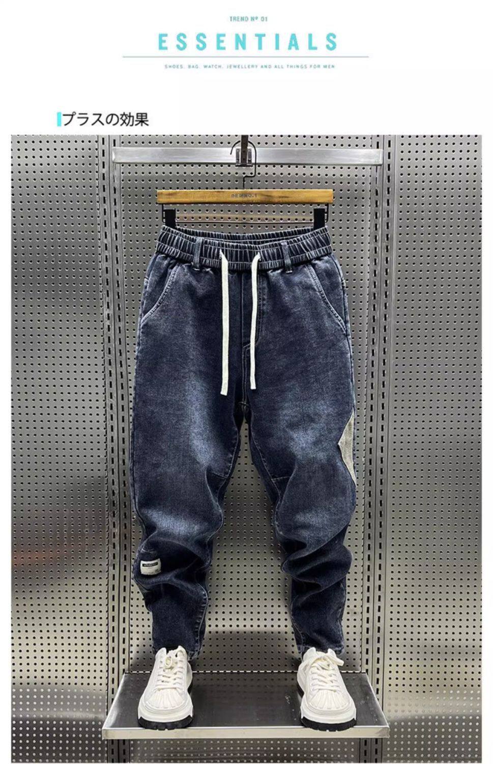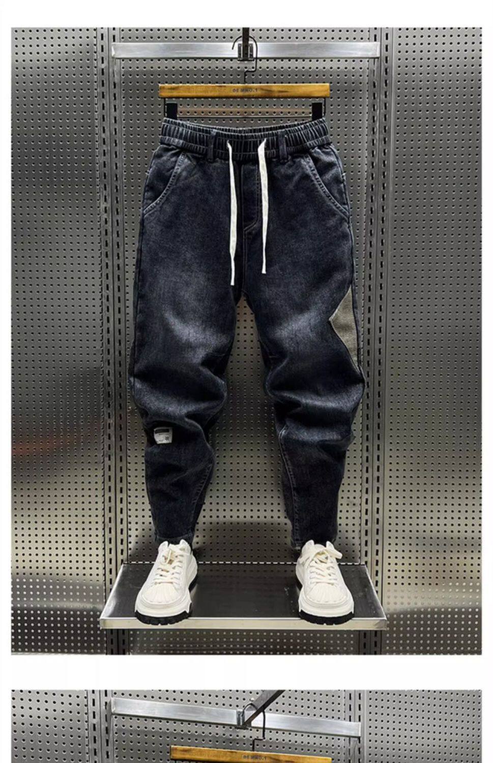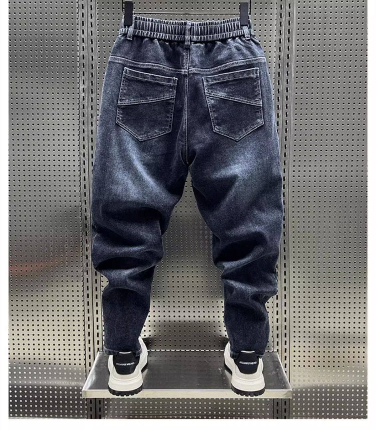 特大碼300斤哈倫牛仔褲男士秋冬復古工裝拼接寬鬆休閒束腳蘿蔔褲2