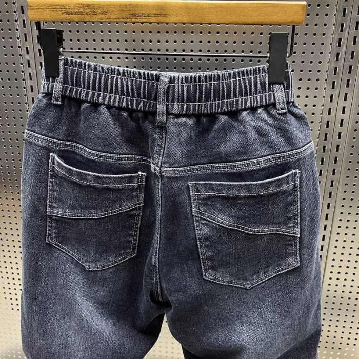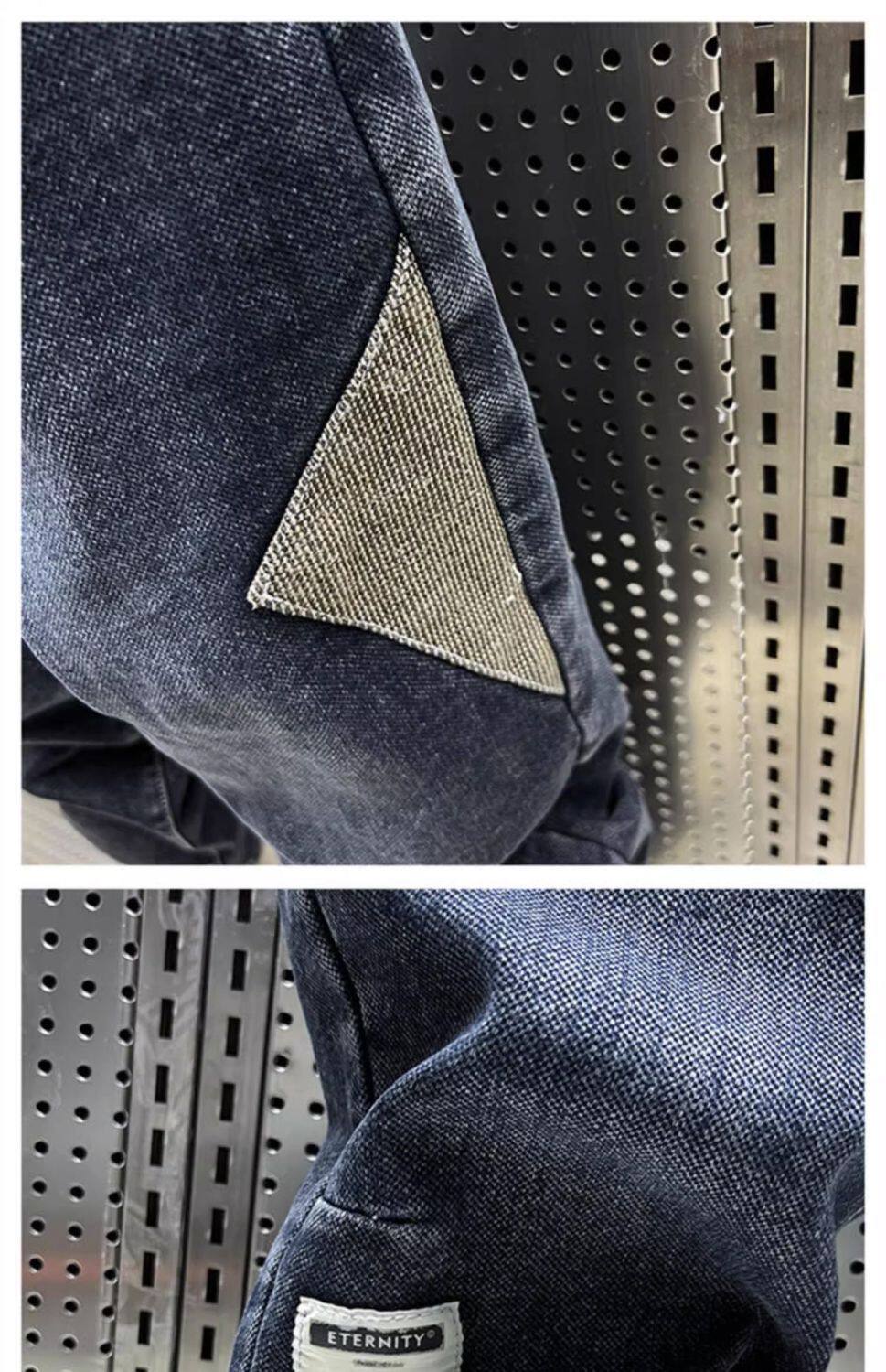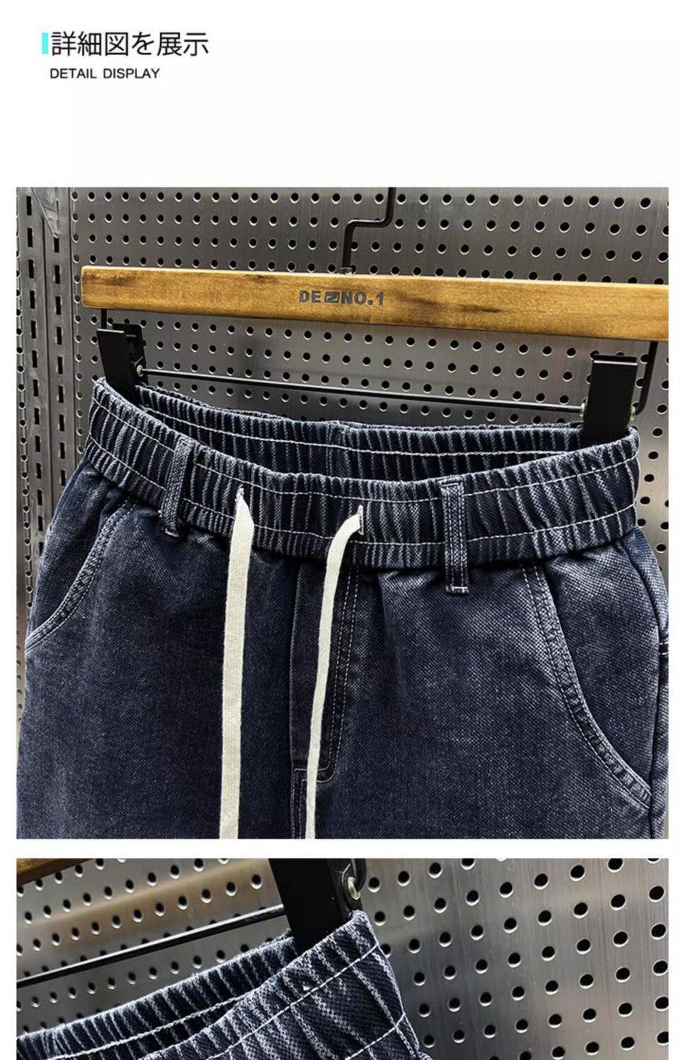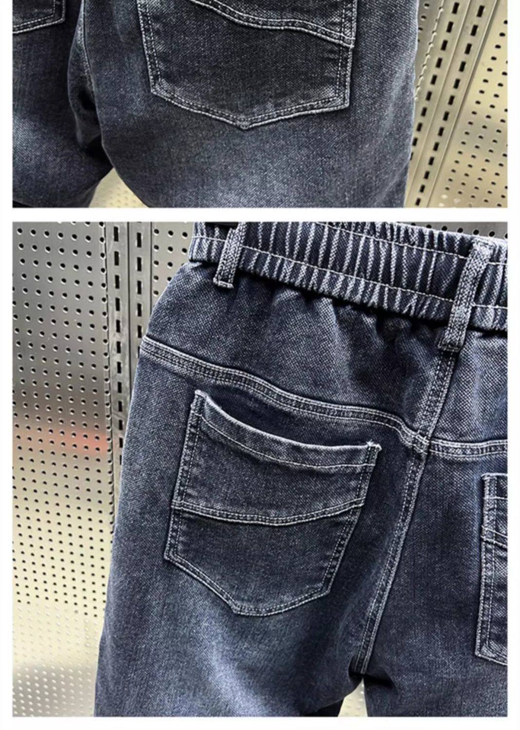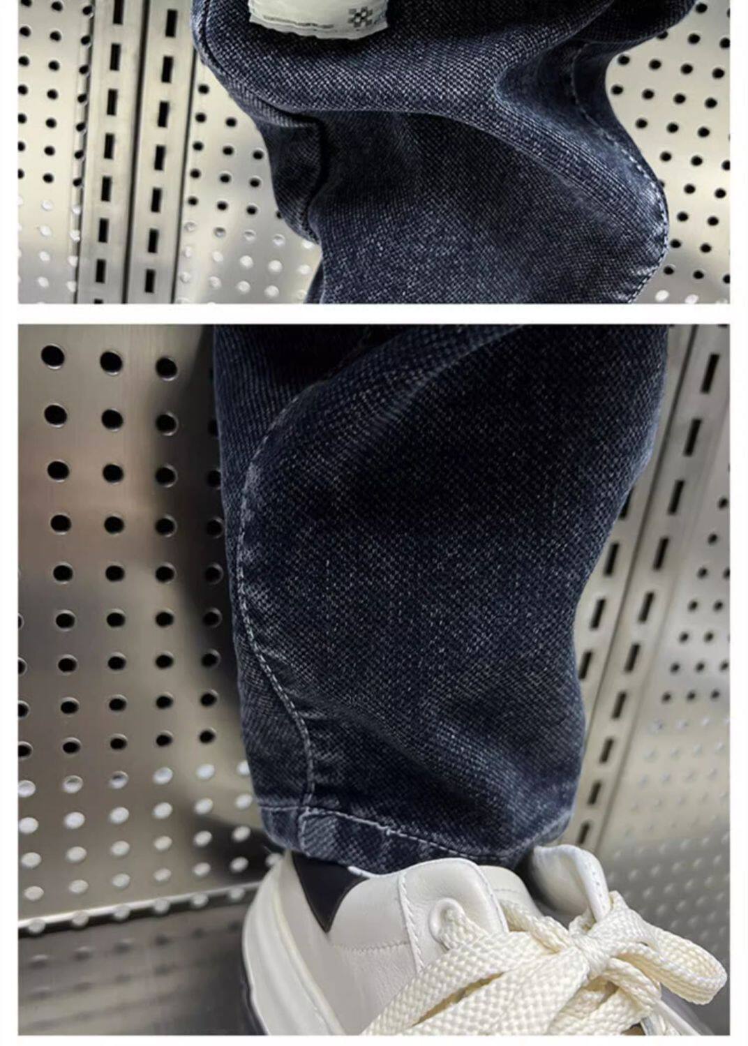 特大碼300斤哈倫牛仔褲男士秋冬復古工裝拼接寬鬆休閒束腳蘿蔔褲2