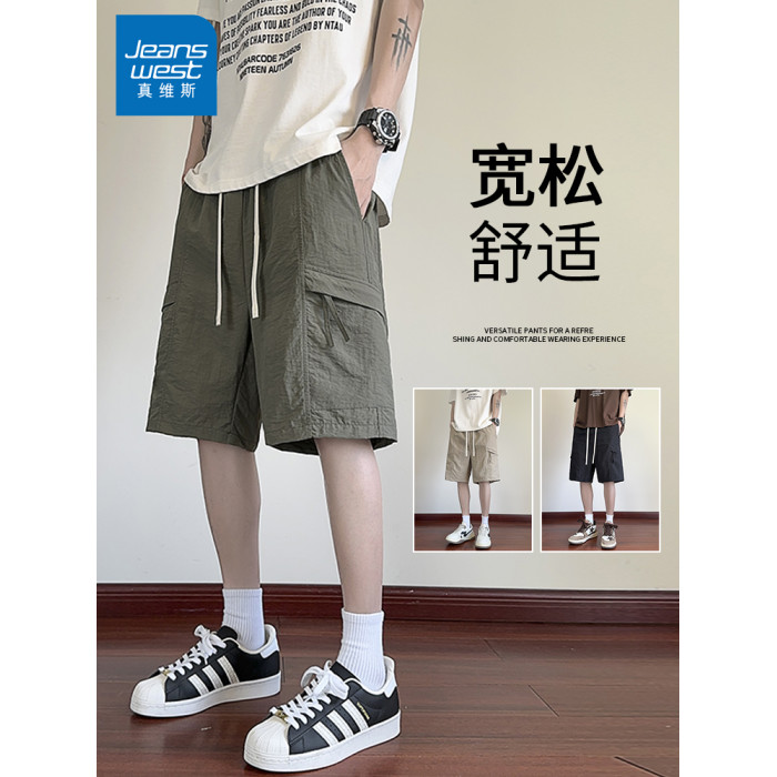 真維斯美式潮牌短褲男士夏季薄款休閒五分褲寬鬆運動褲大碼褲子男