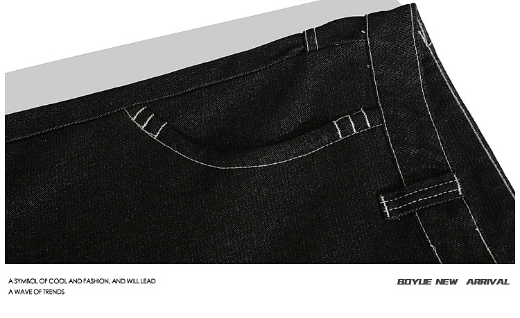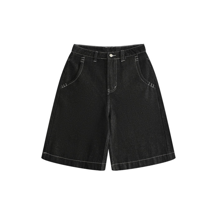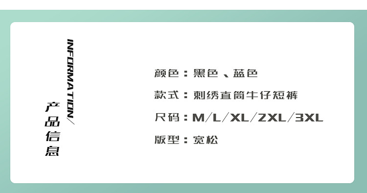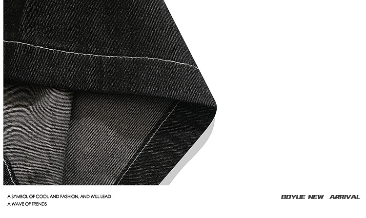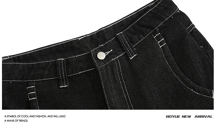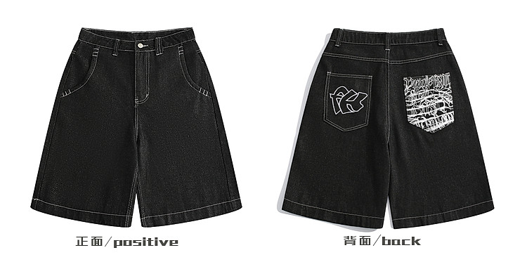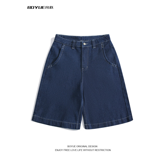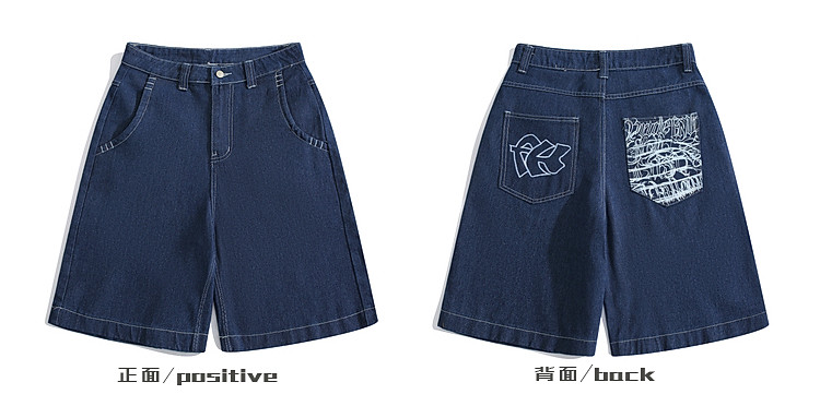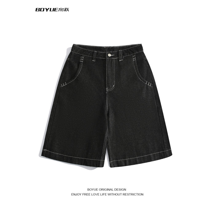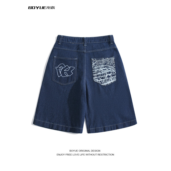 BOYUE帛躍設計感刺綉直筒牛仔短褲男美式高街潮流時尚ins五分褲男