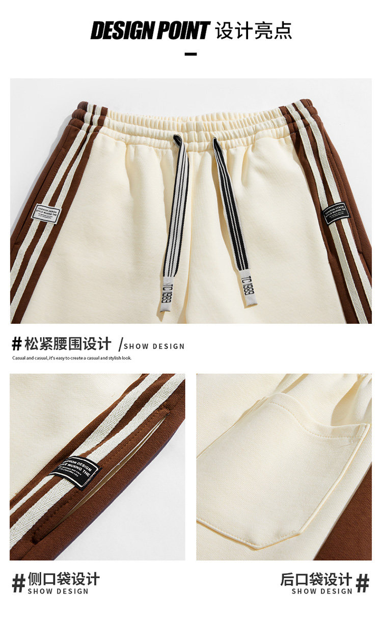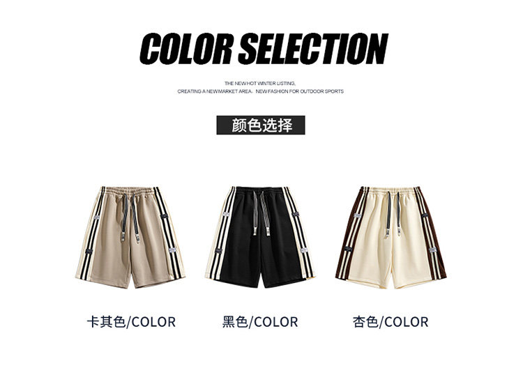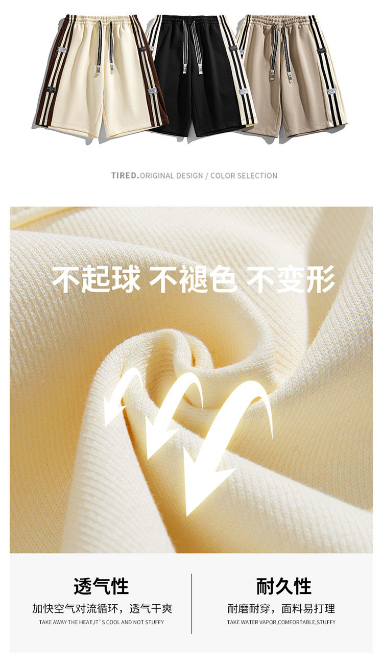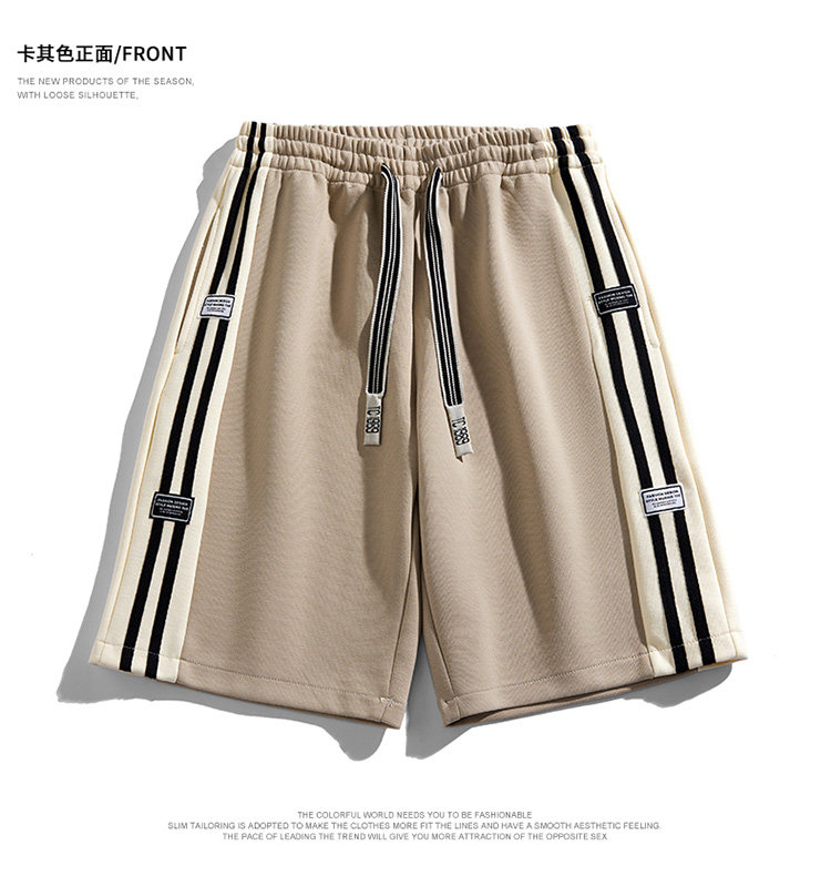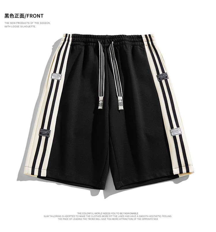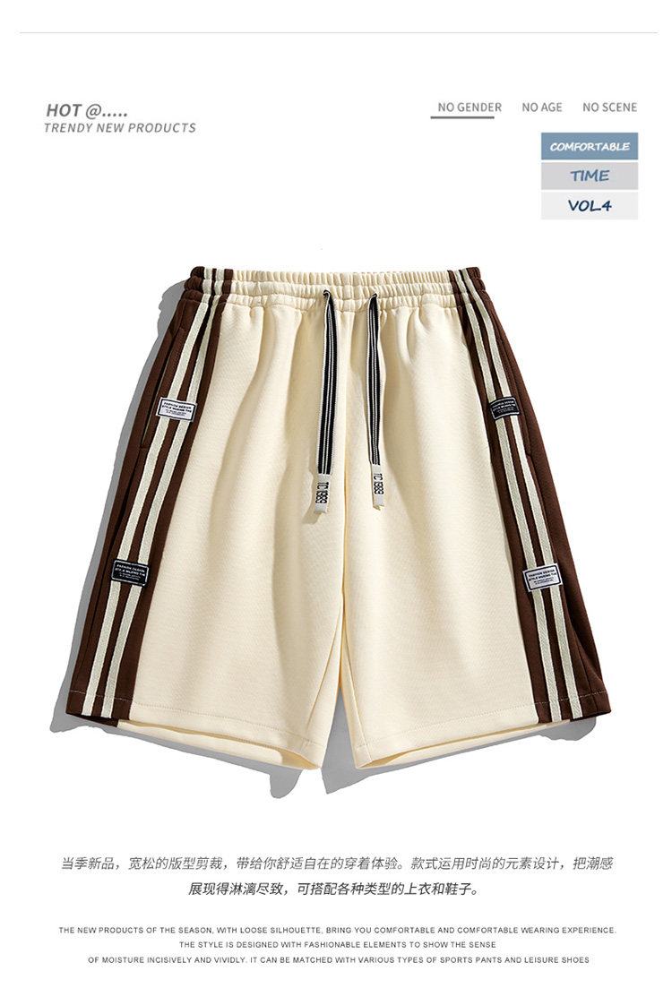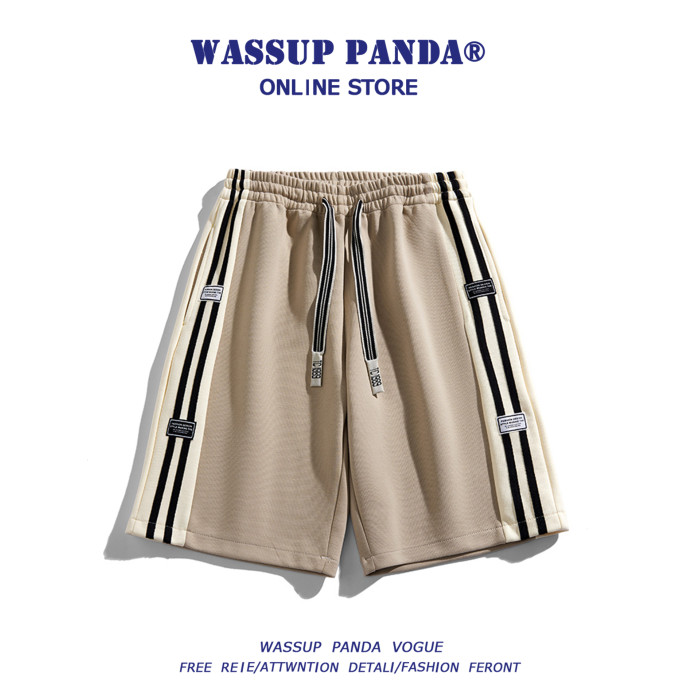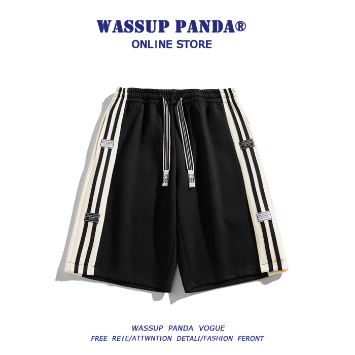 WASSUP PANDA美式撞色條紋運動短褲男夏季潮牌薄款寬鬆休閒五分褲