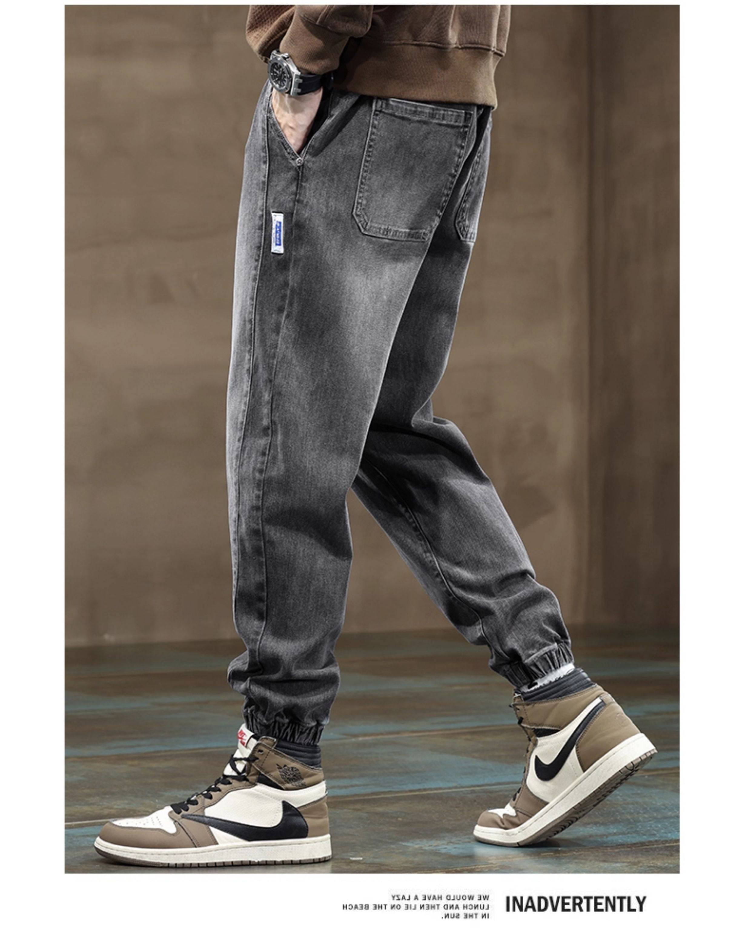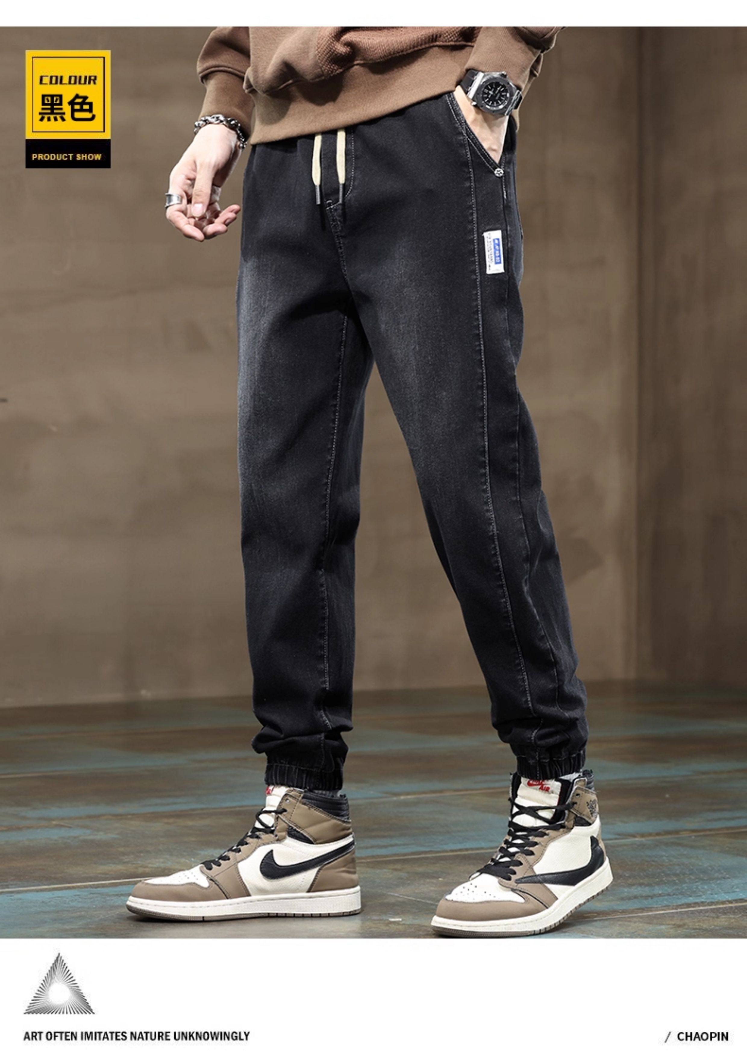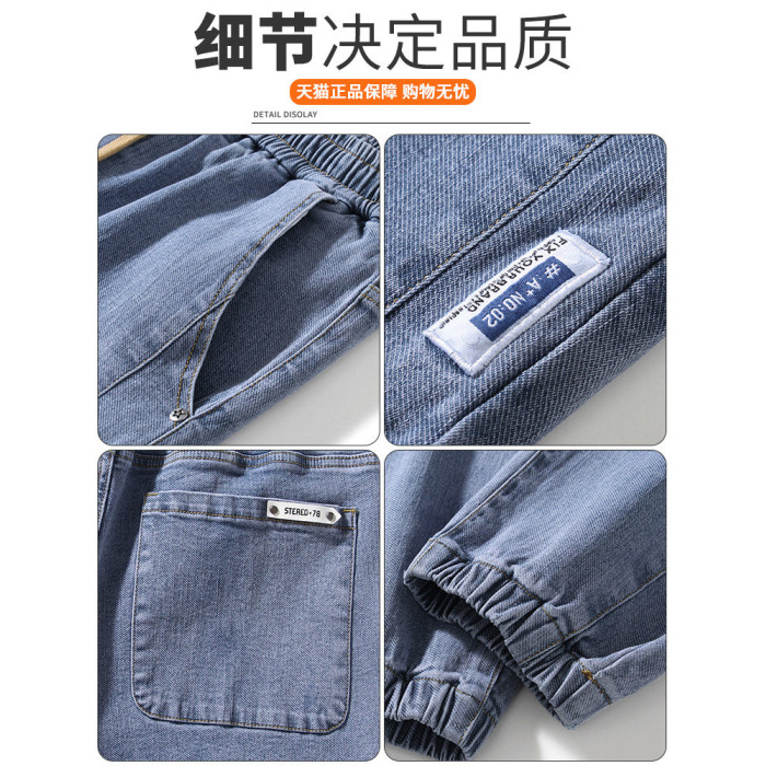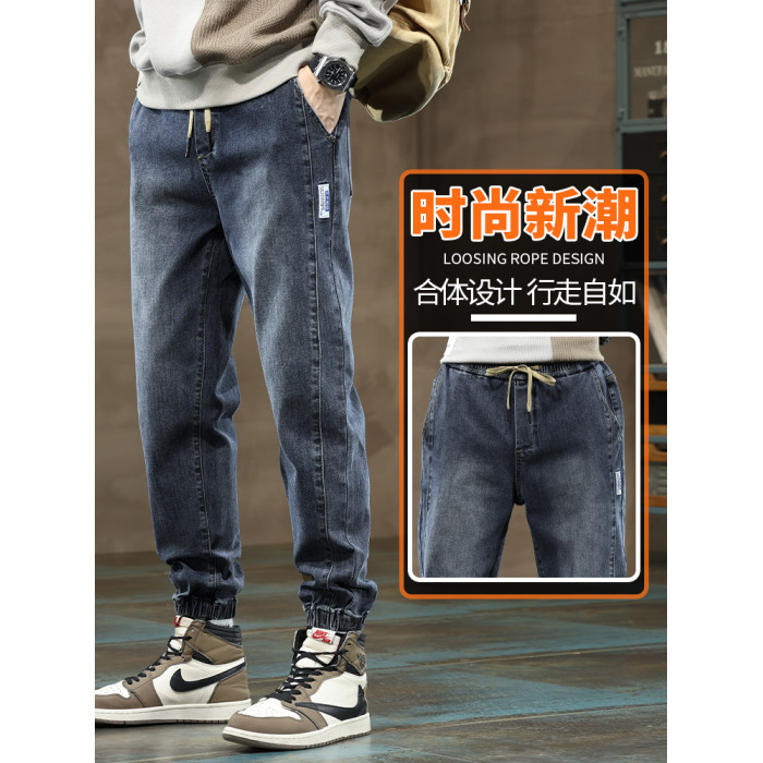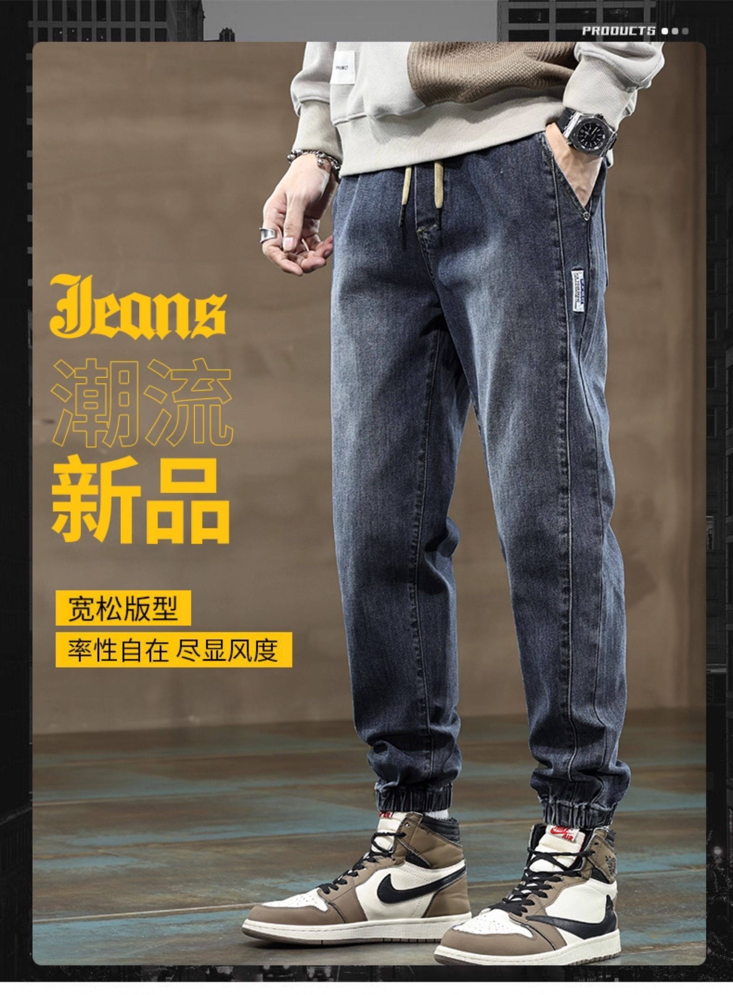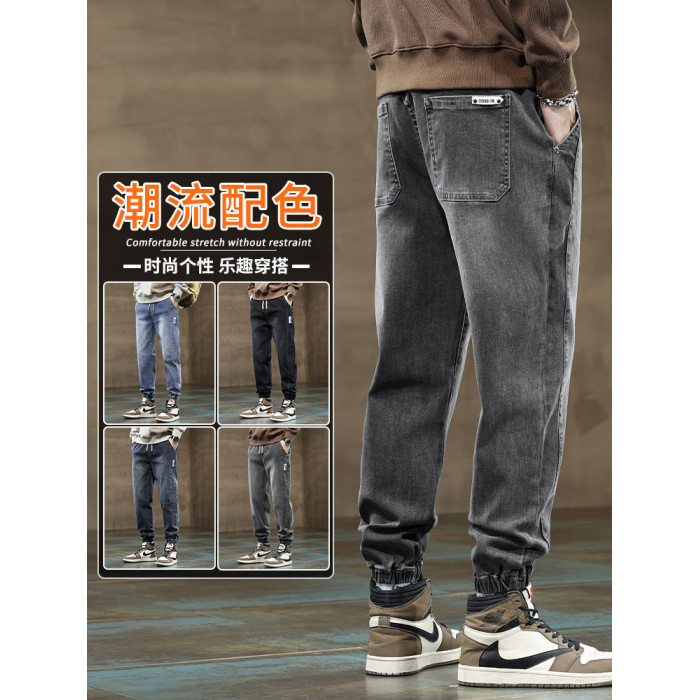 秋冬季牛仔褲男2026新款長褲工裝寬鬆束腳休閒青少年男士加絨褲子