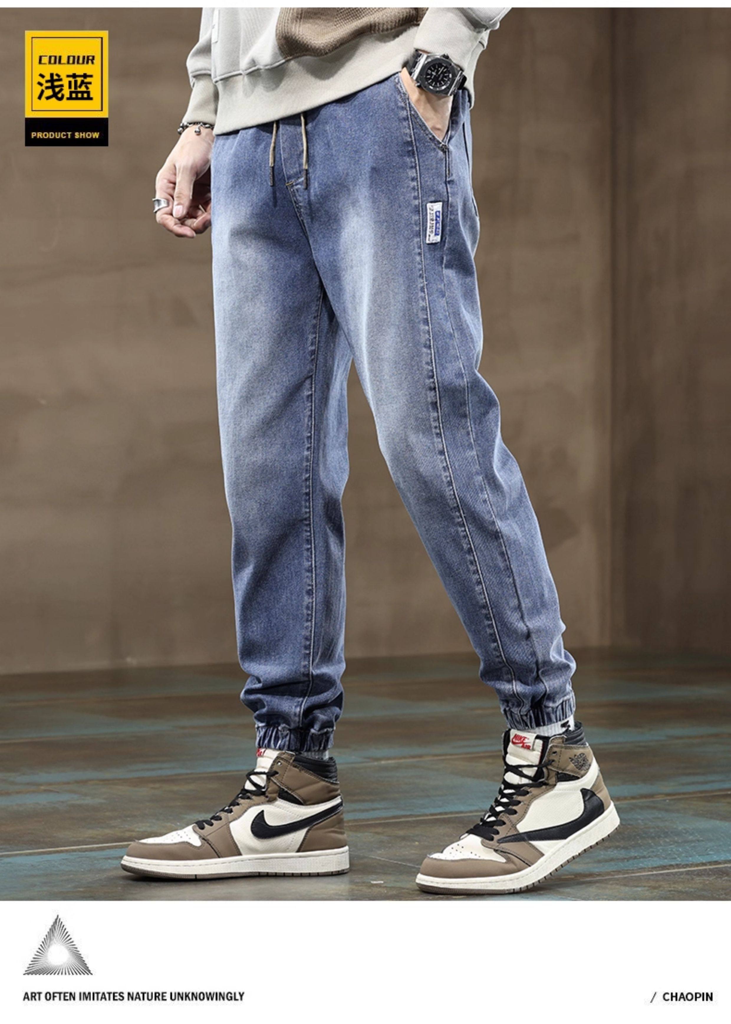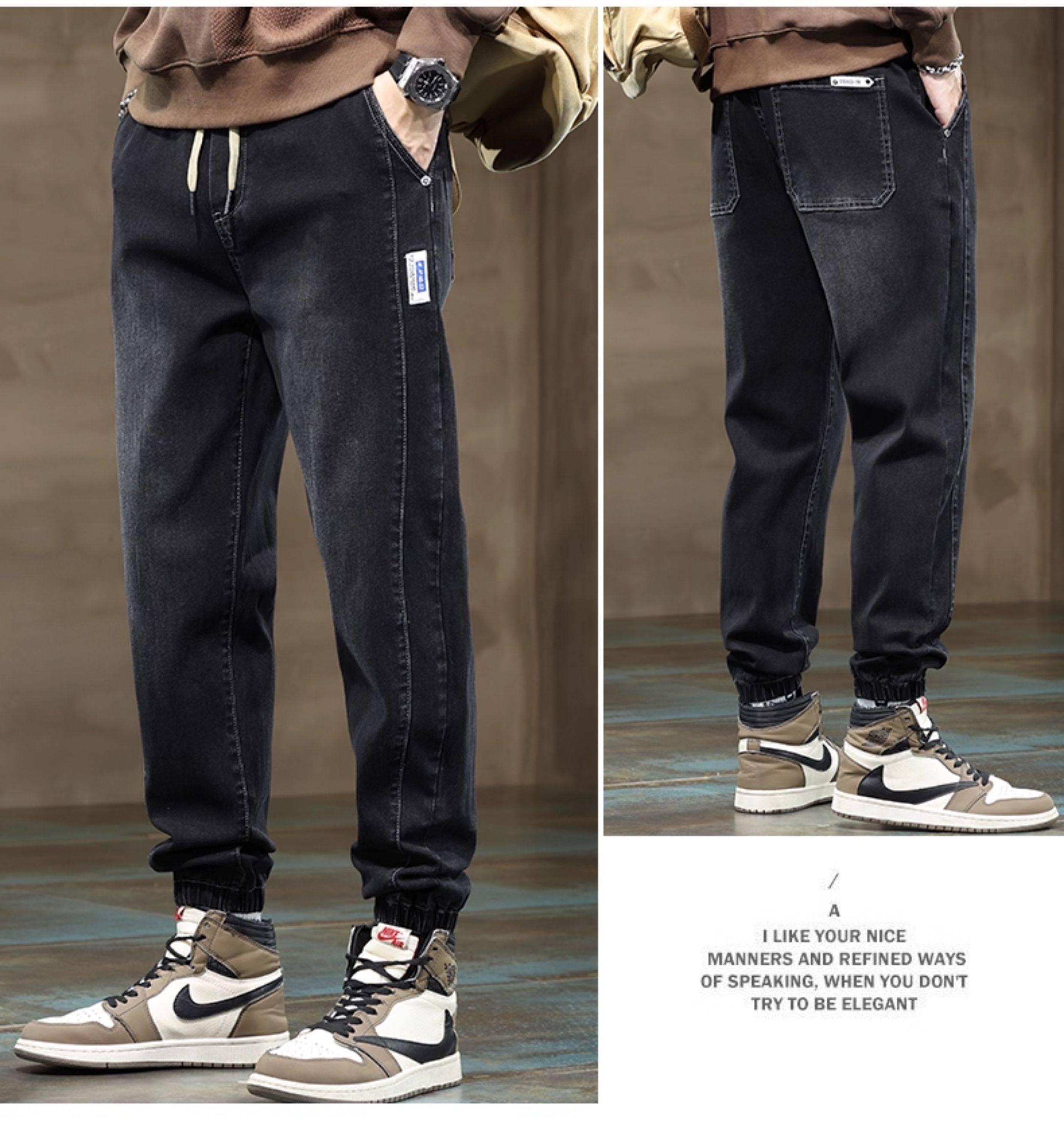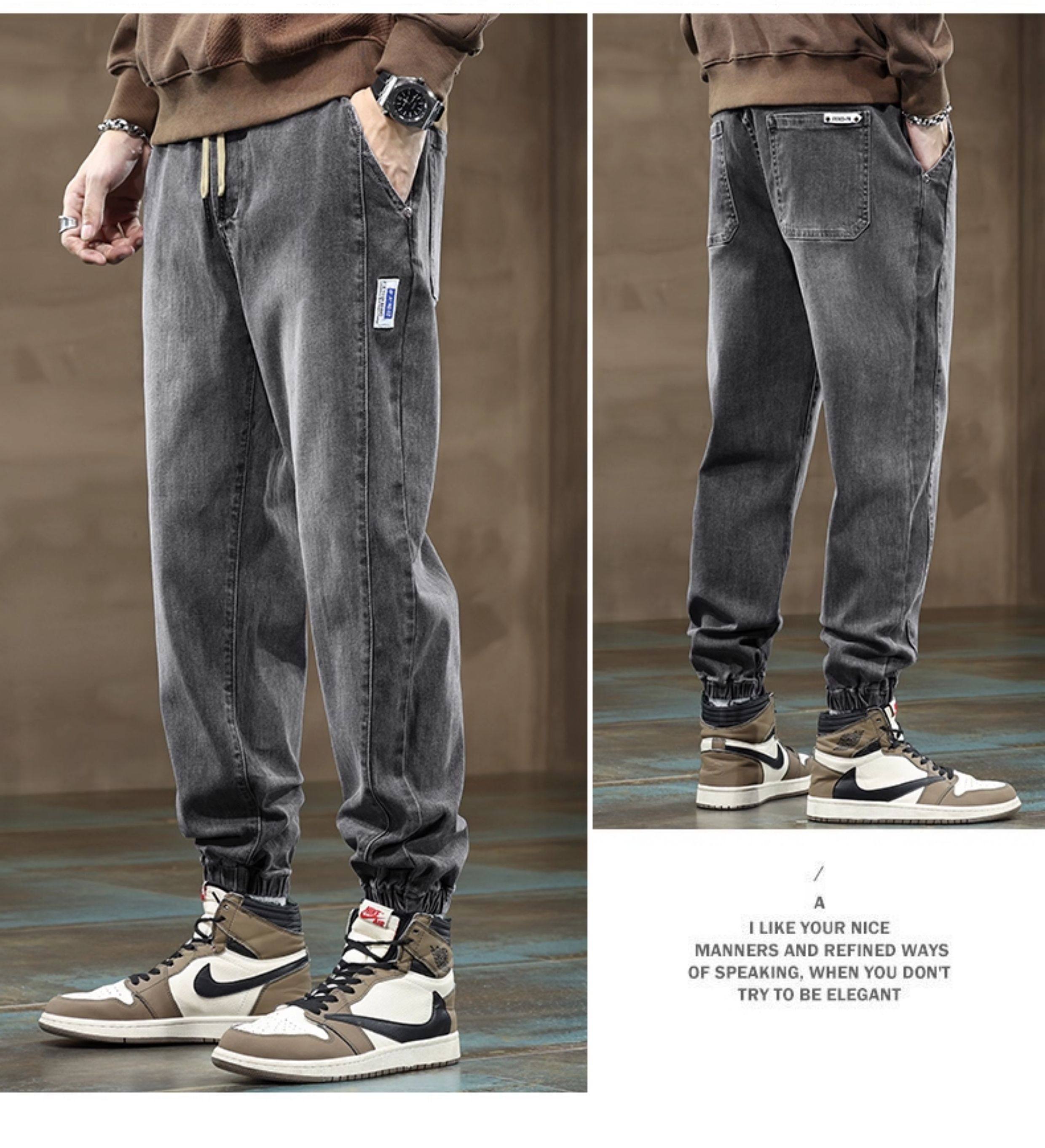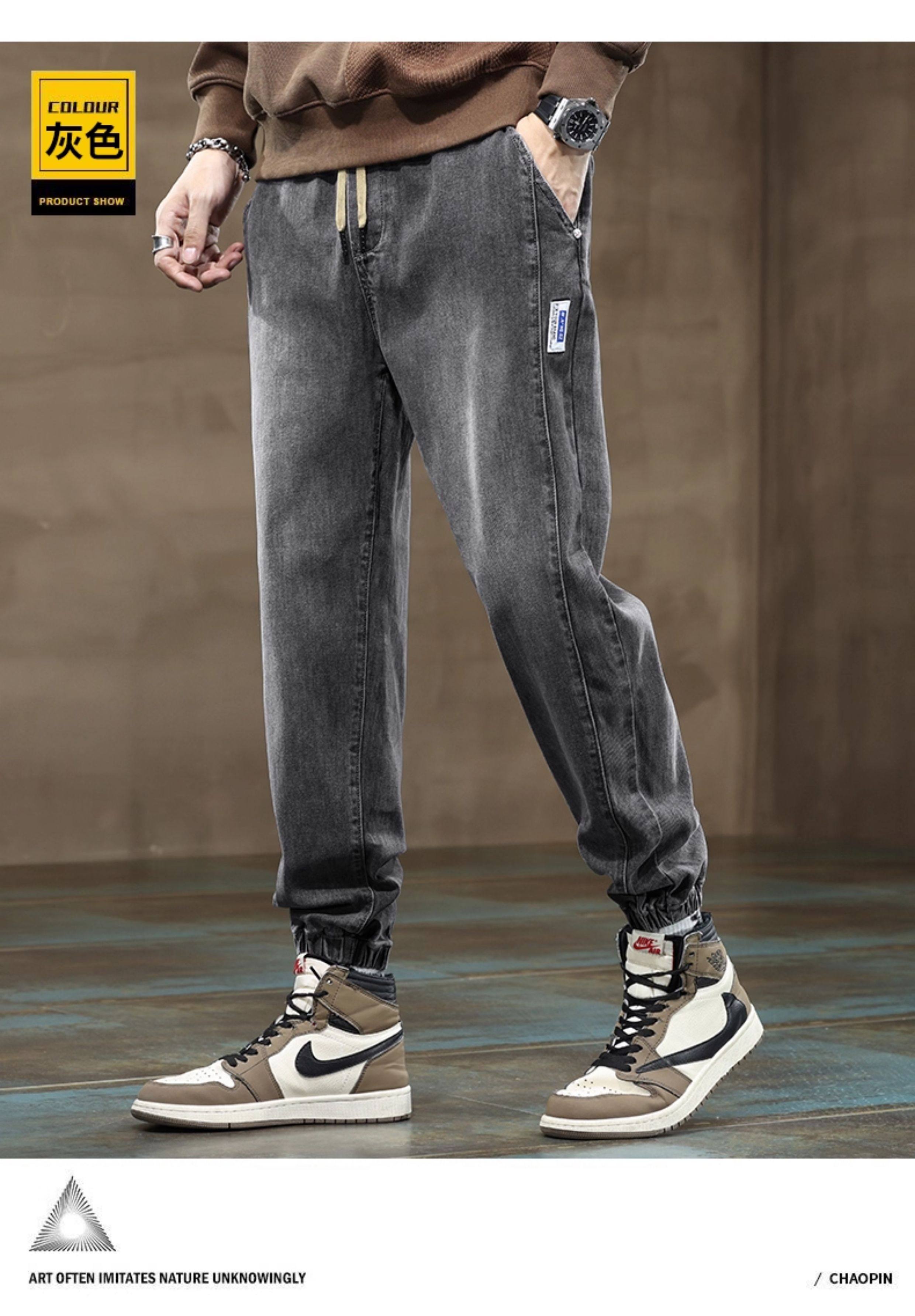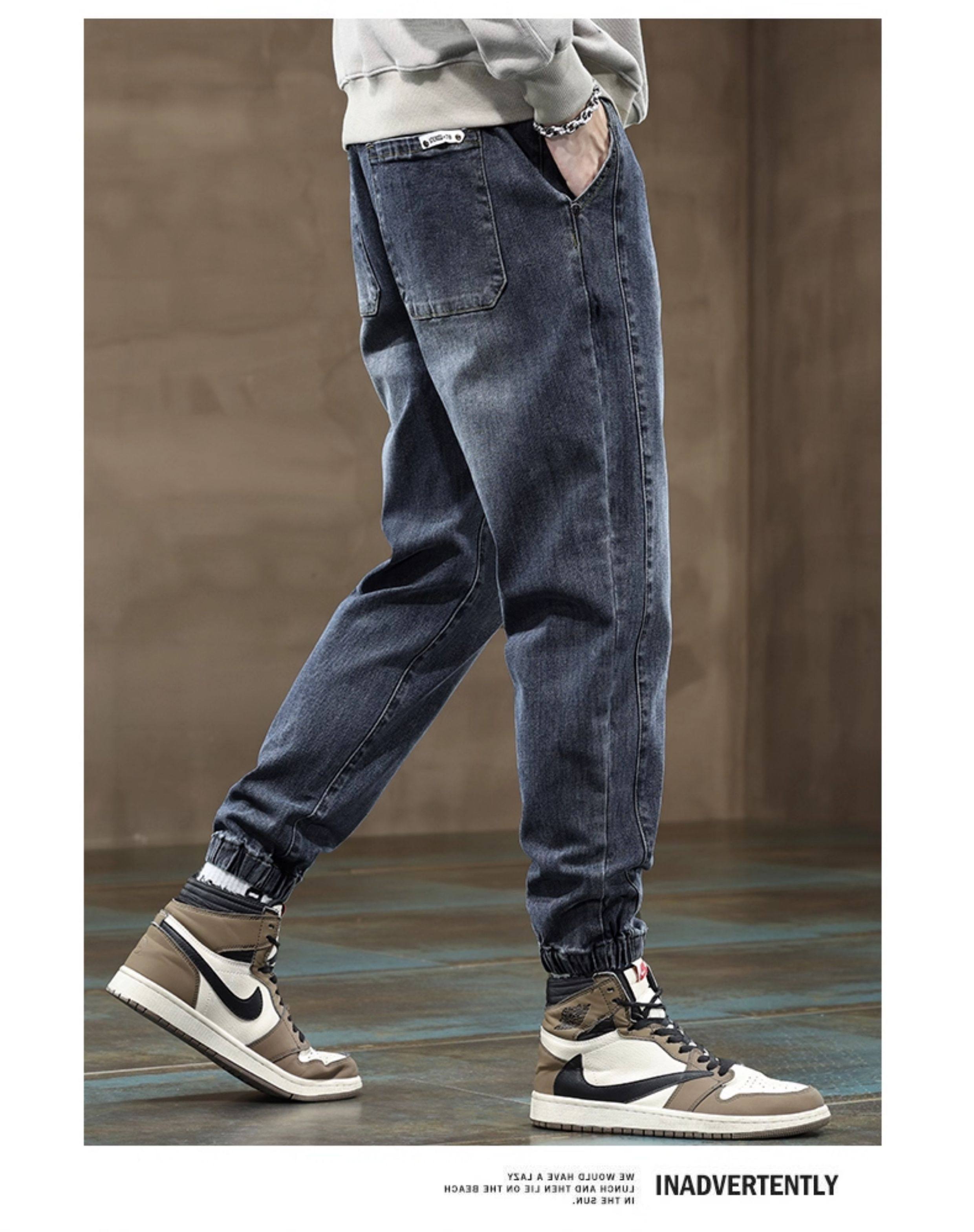 秋冬季牛仔褲男2026新款長褲工裝寬鬆束腳休閒青少年男士加絨褲子
