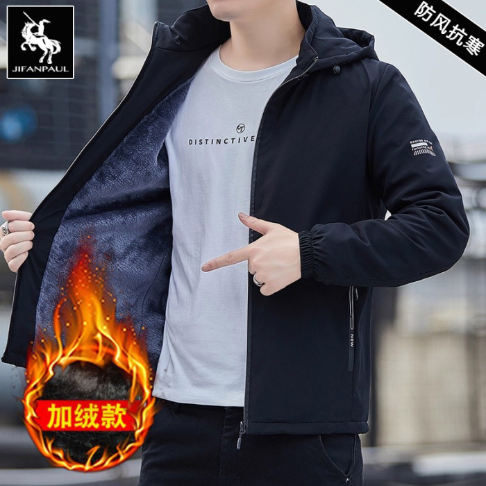 男士棉衣秋冬季新款加絨保暖可拆卸帽寬鬆外套時尚潮流百搭男夾克