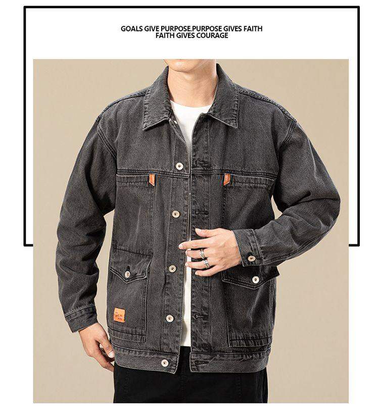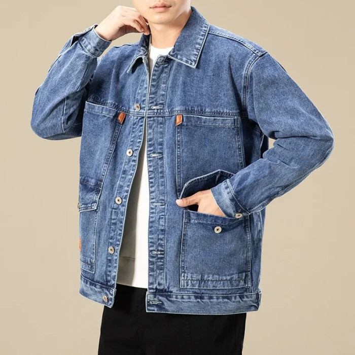 乾活穿的牛仔外套男2026春秋耐髒耐磨多口袋寬鬆大碼工裝夾克褂子