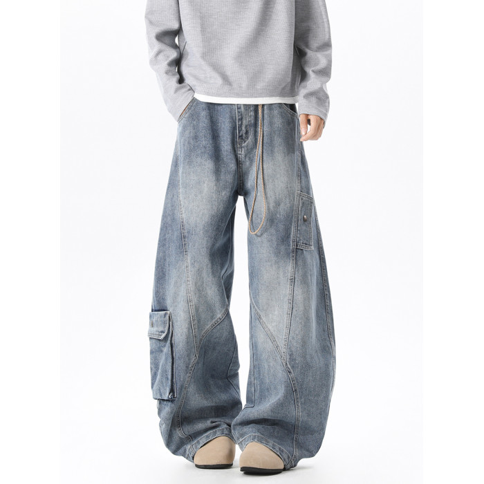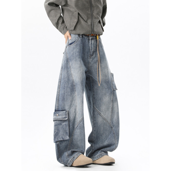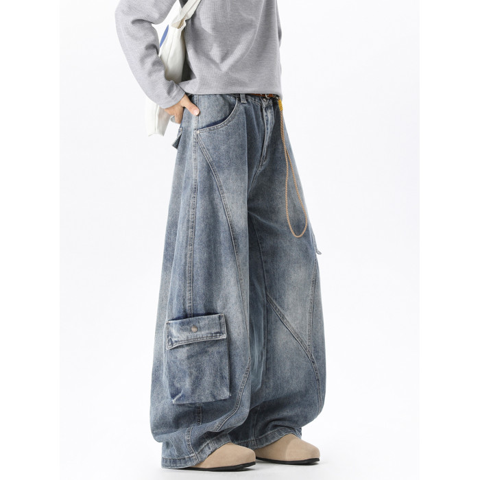 工裝牛仔褲男春季2026新款美式復古水洗褲子潮牌痞帥青少年濶腿褲