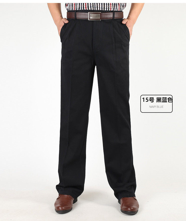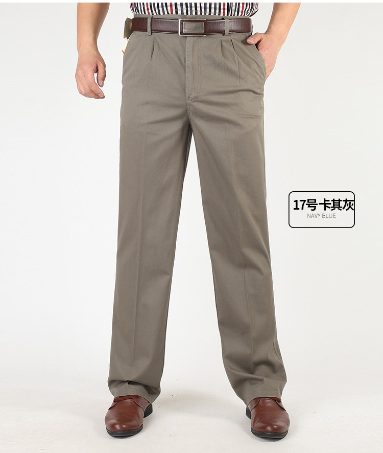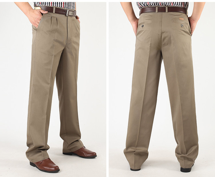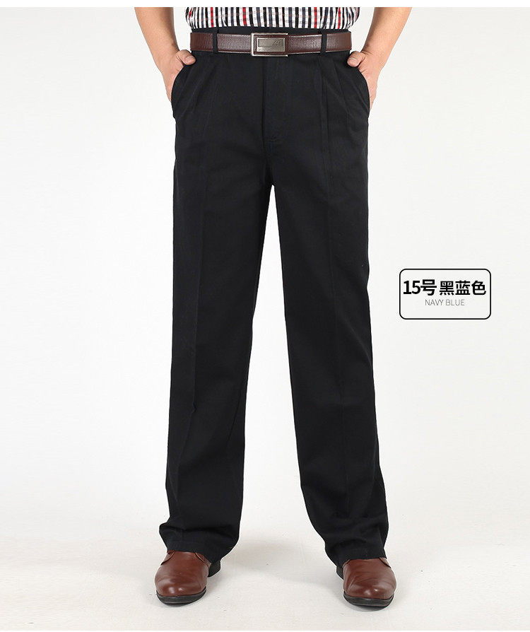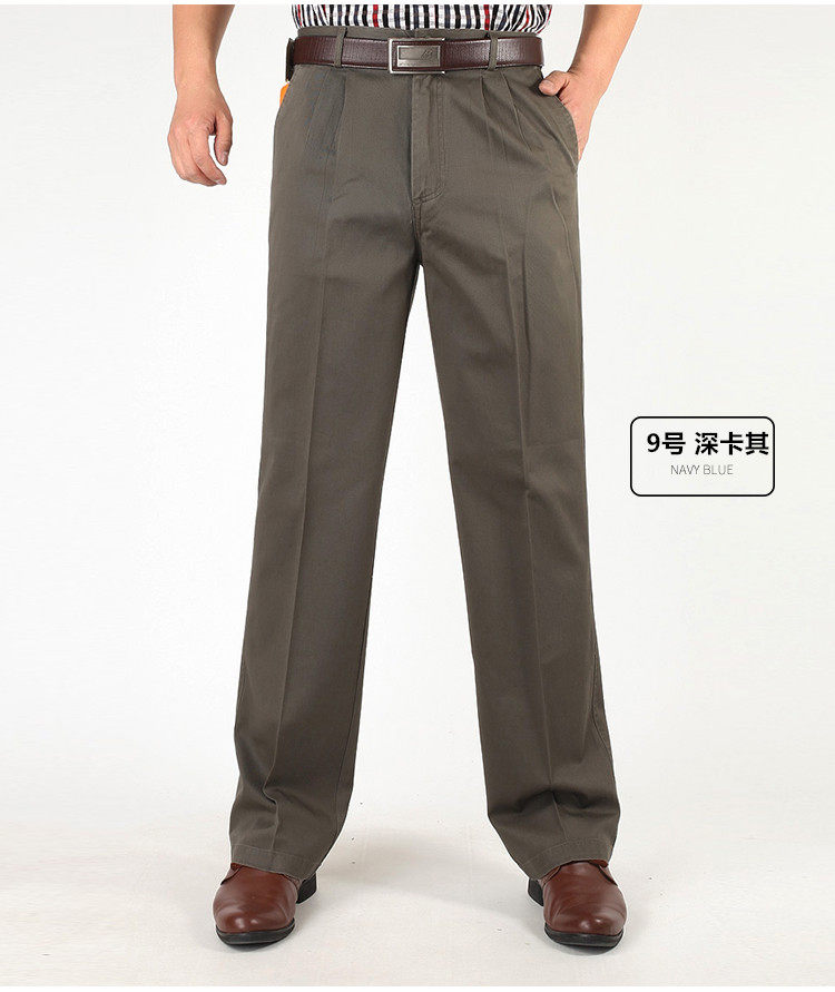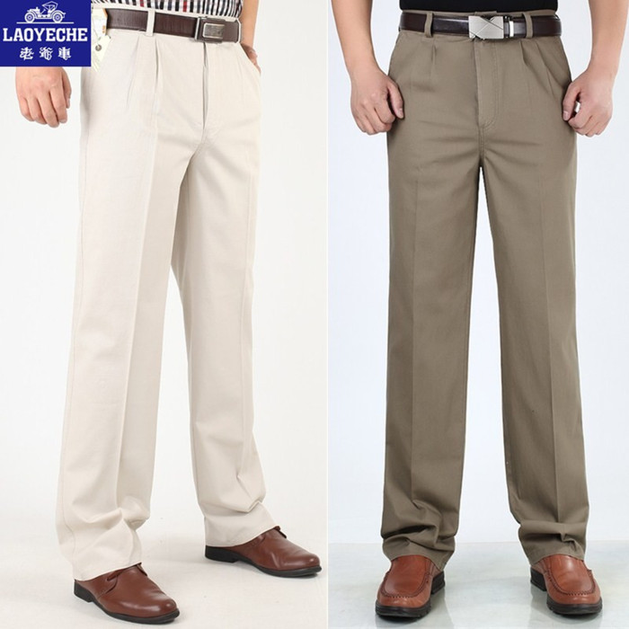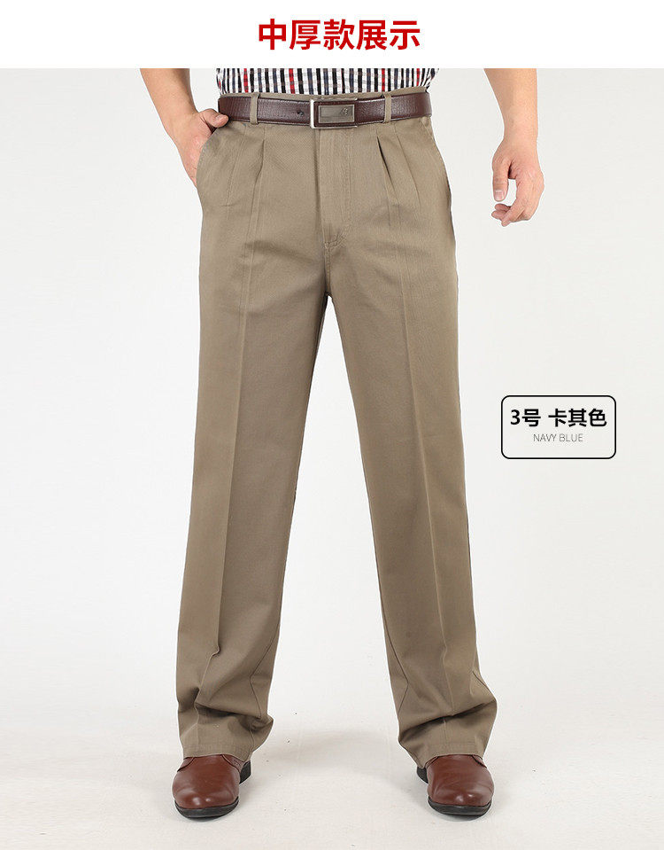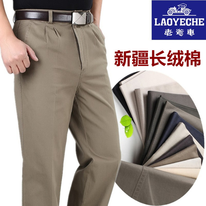 老爺車100%純棉雙褶休閒褲男士秋冬厚款中老年高腰寬鬆大碼爸爸褲