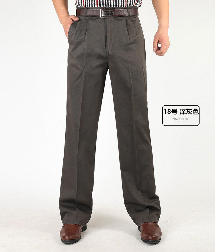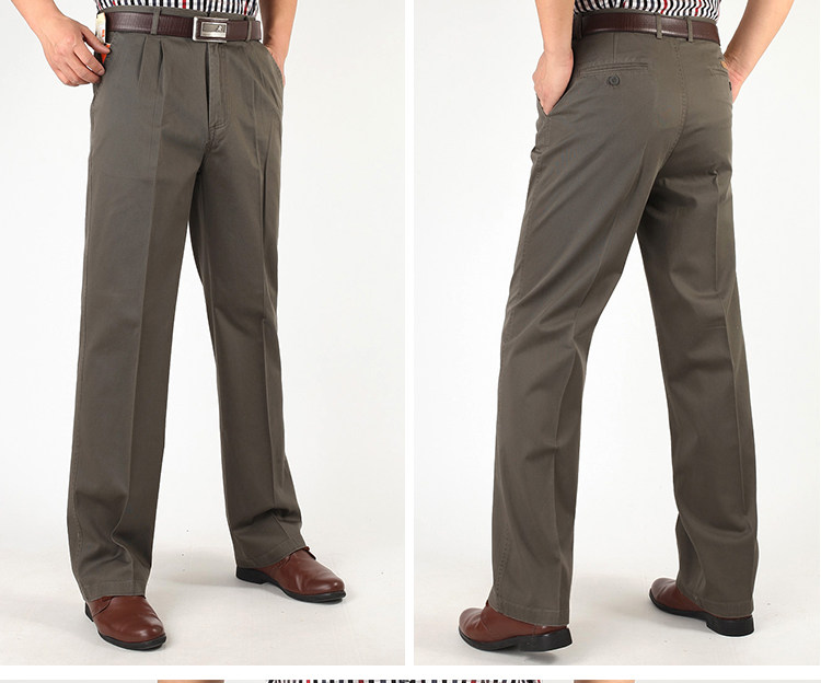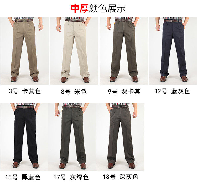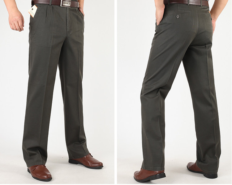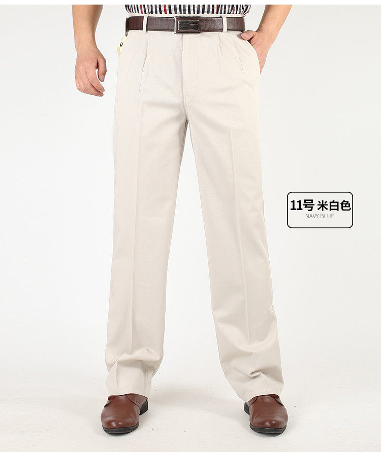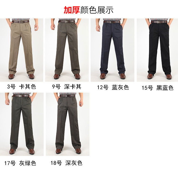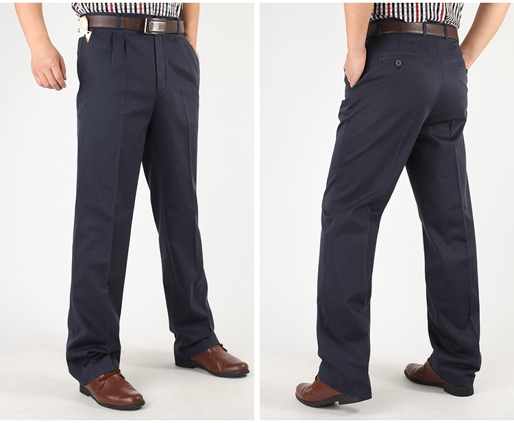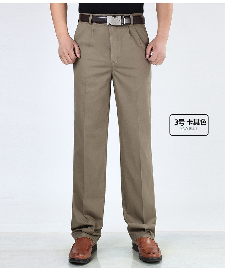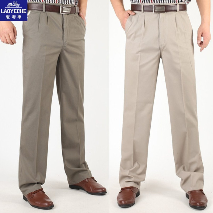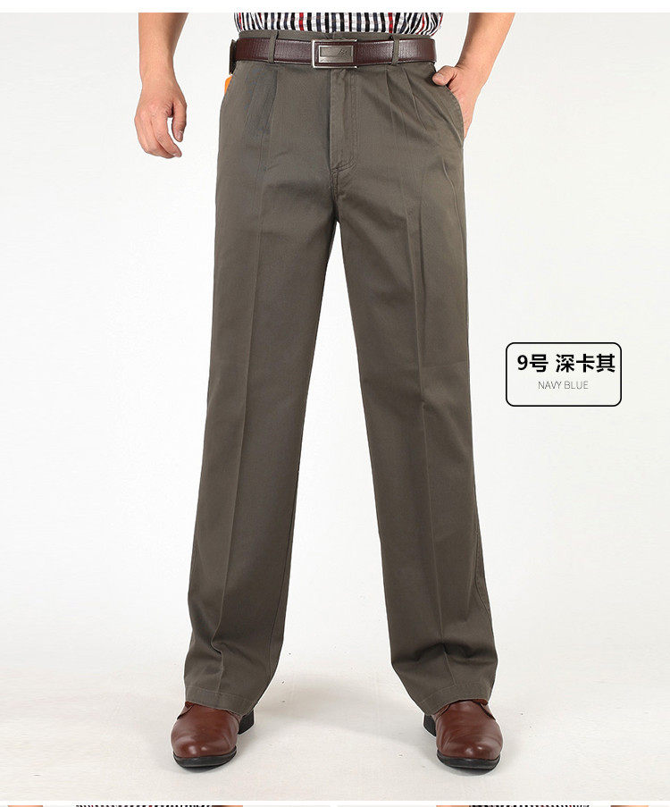 老爺車100%純棉雙褶休閒褲男士秋冬厚款中老年高腰寬鬆大碼爸爸褲