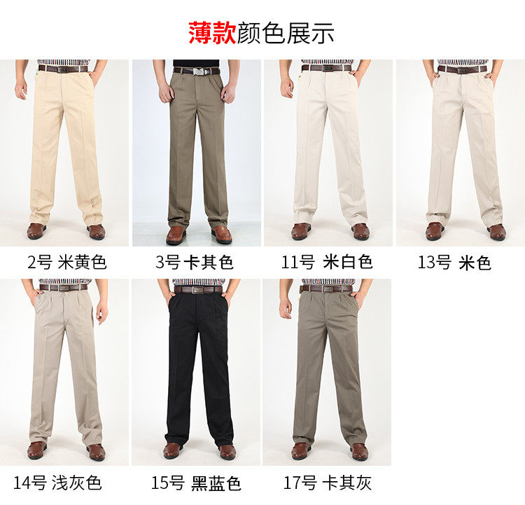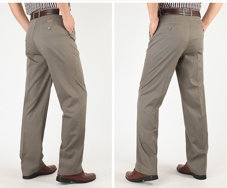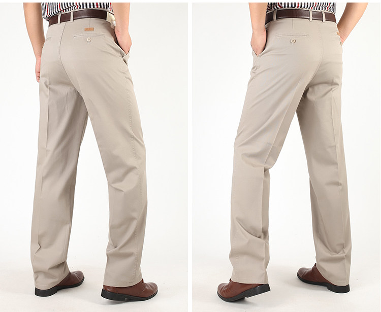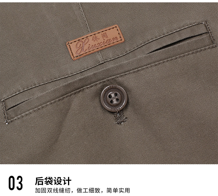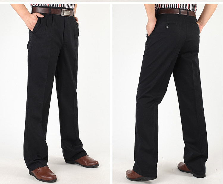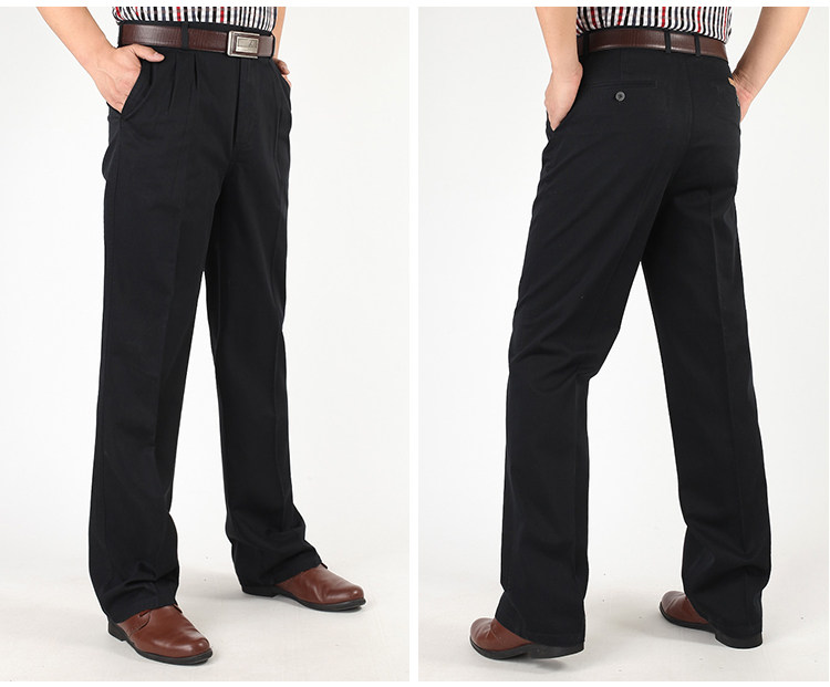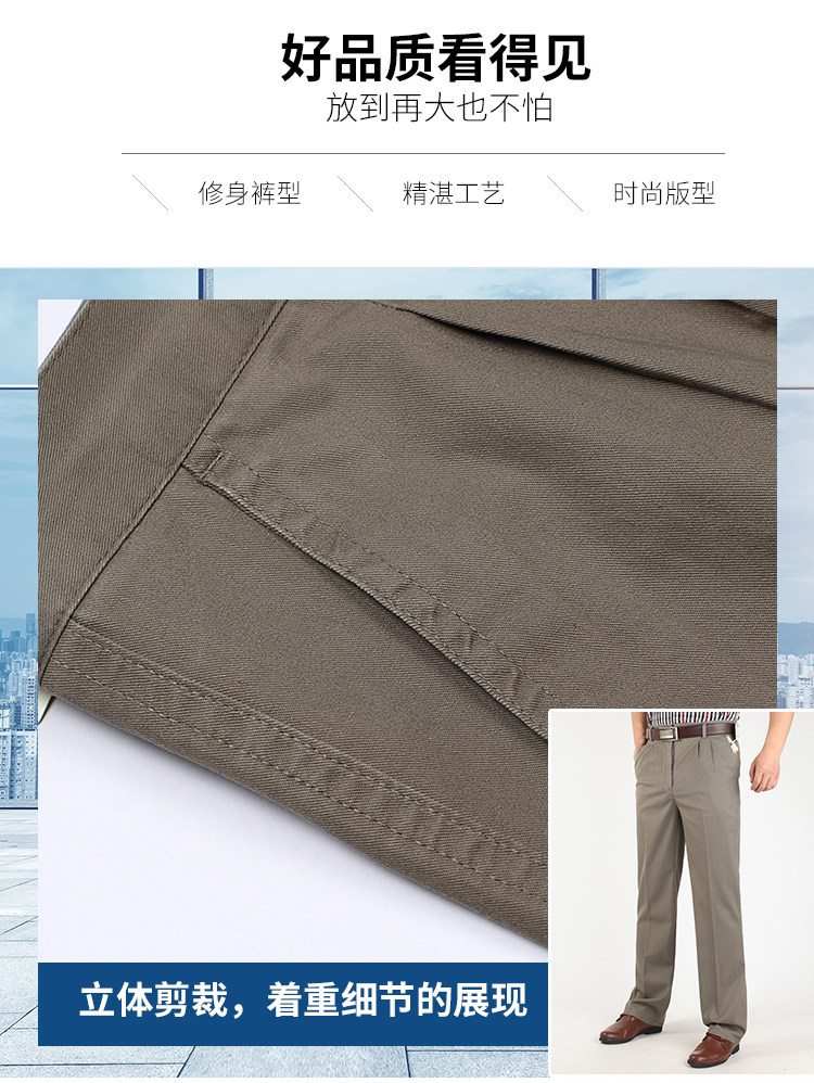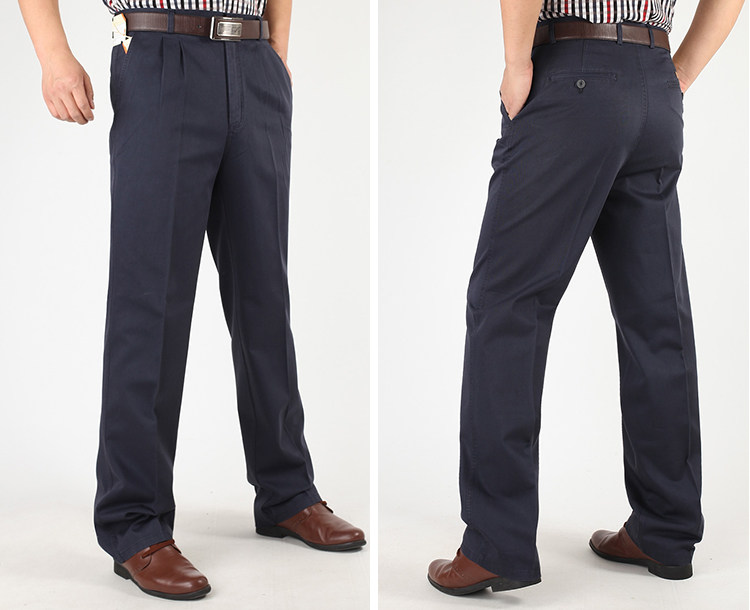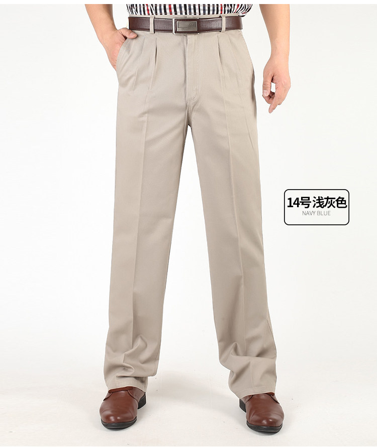老爺車100%純棉雙褶休閒褲男士秋冬厚款中老年高腰寬鬆大碼爸爸褲
