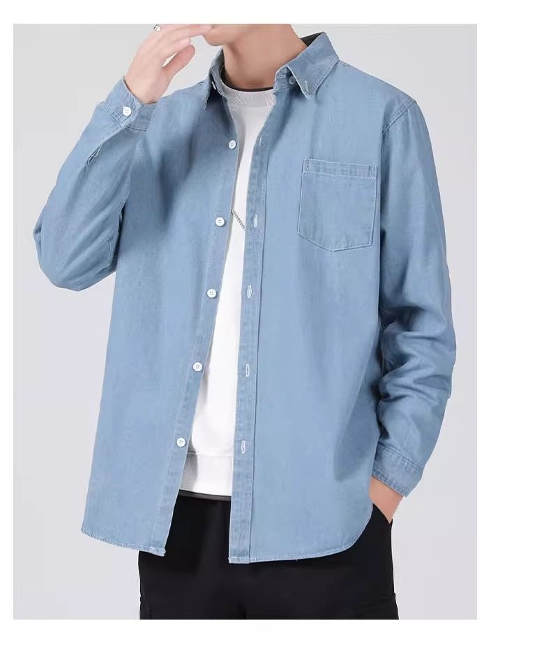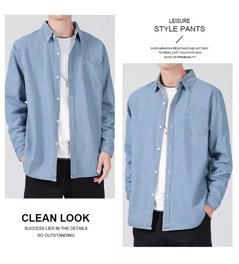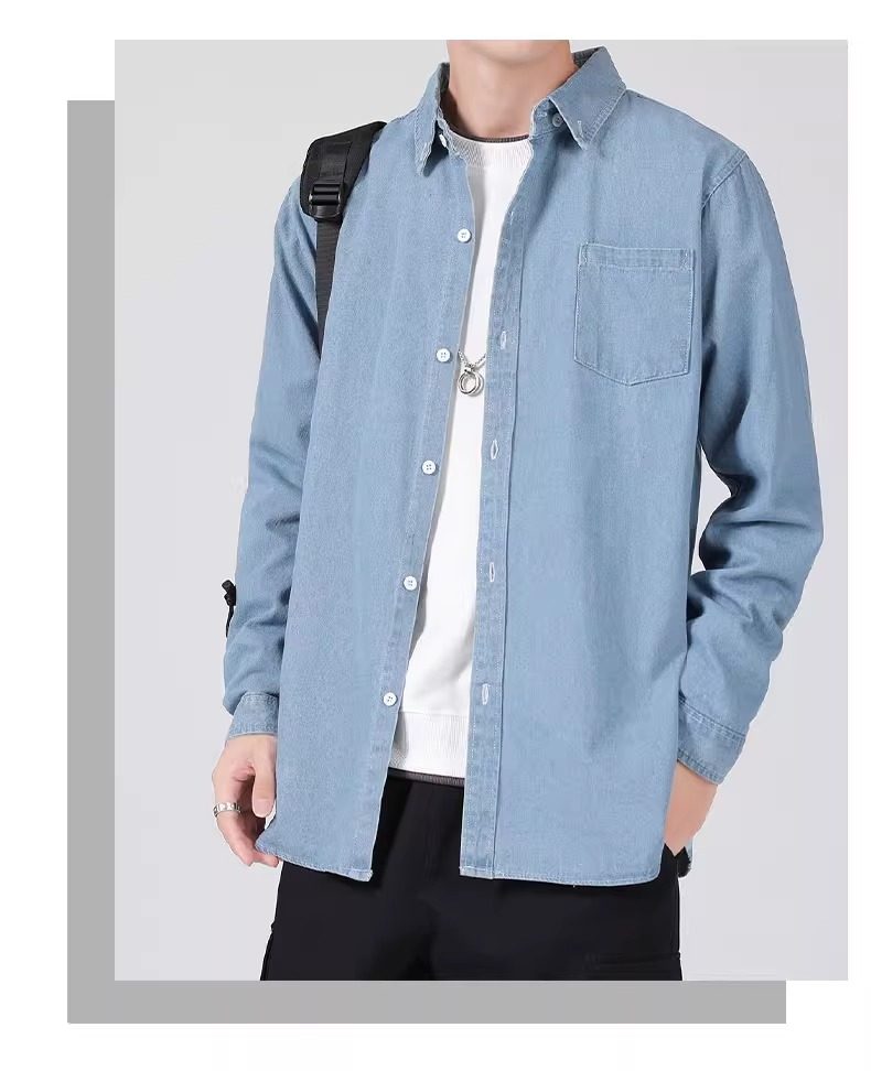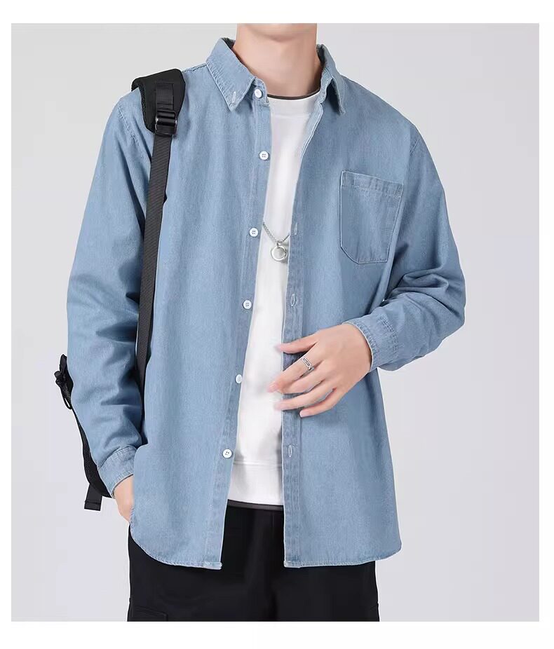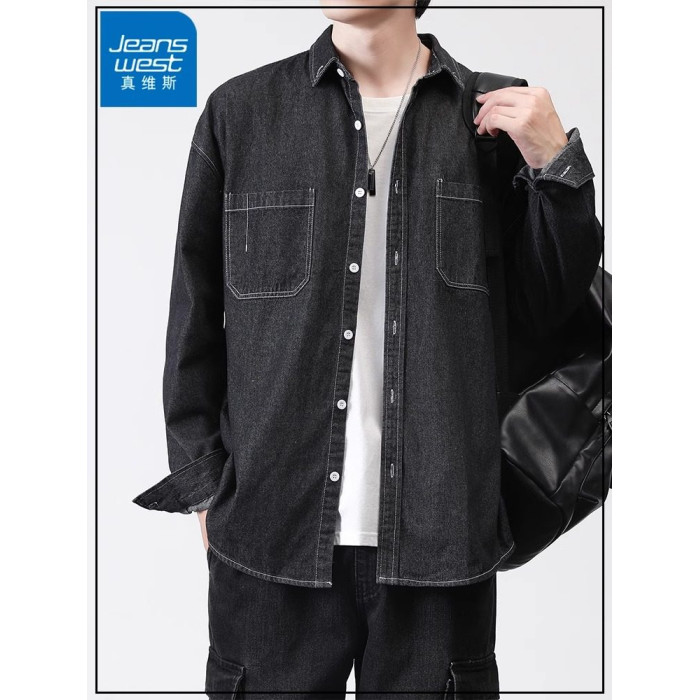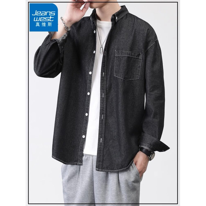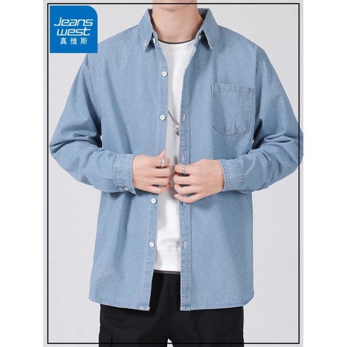 真維斯春秋季復古水洗外穿長袖牛仔襯衫男士寬鬆休閒薄款襯衣外套