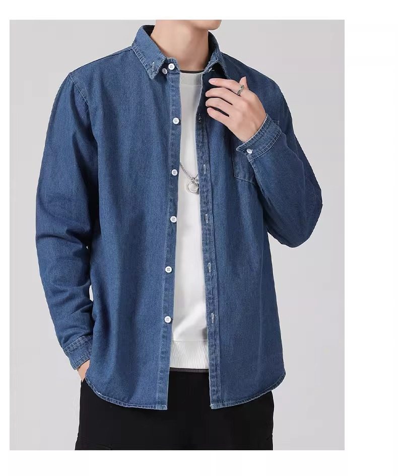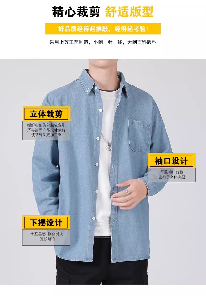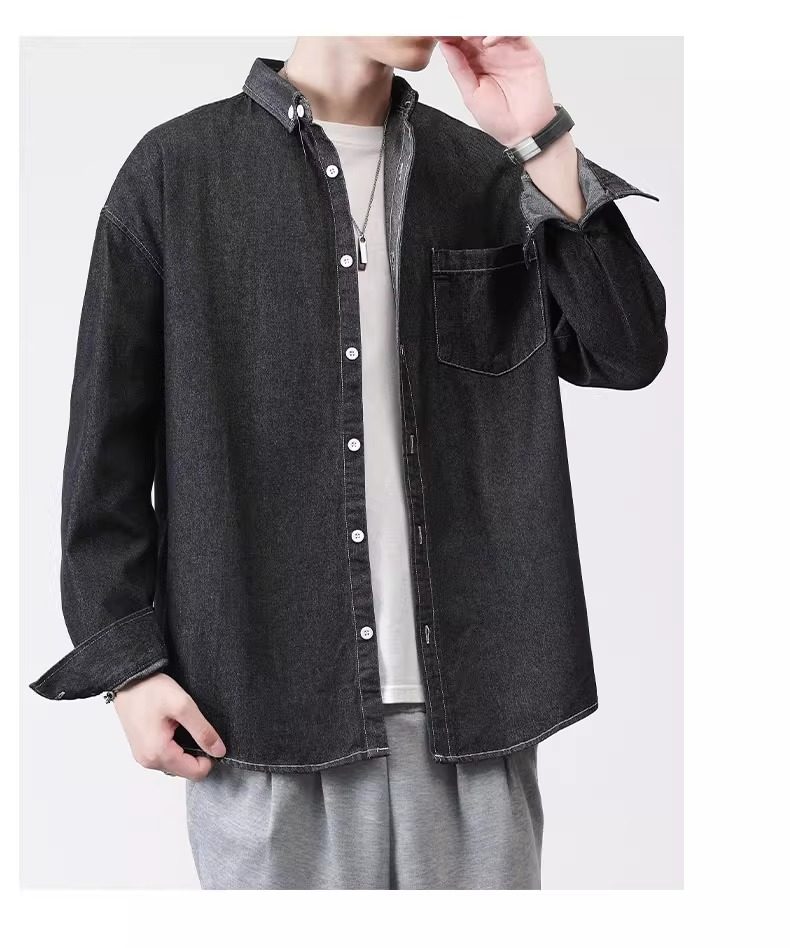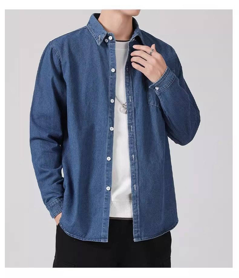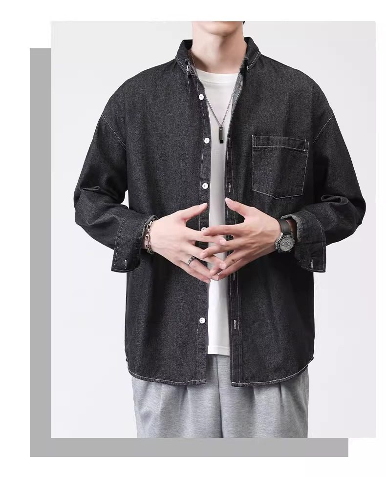 真維斯春秋季復古水洗外穿長袖牛仔襯衫男士寬鬆休閒薄款襯衣外套