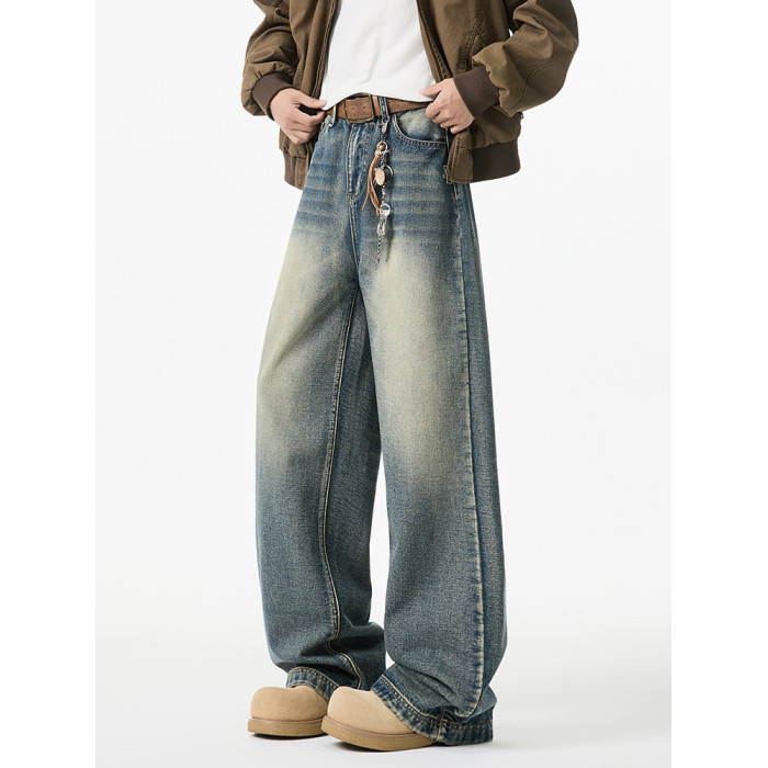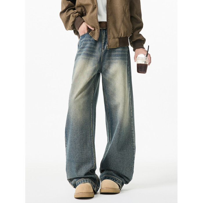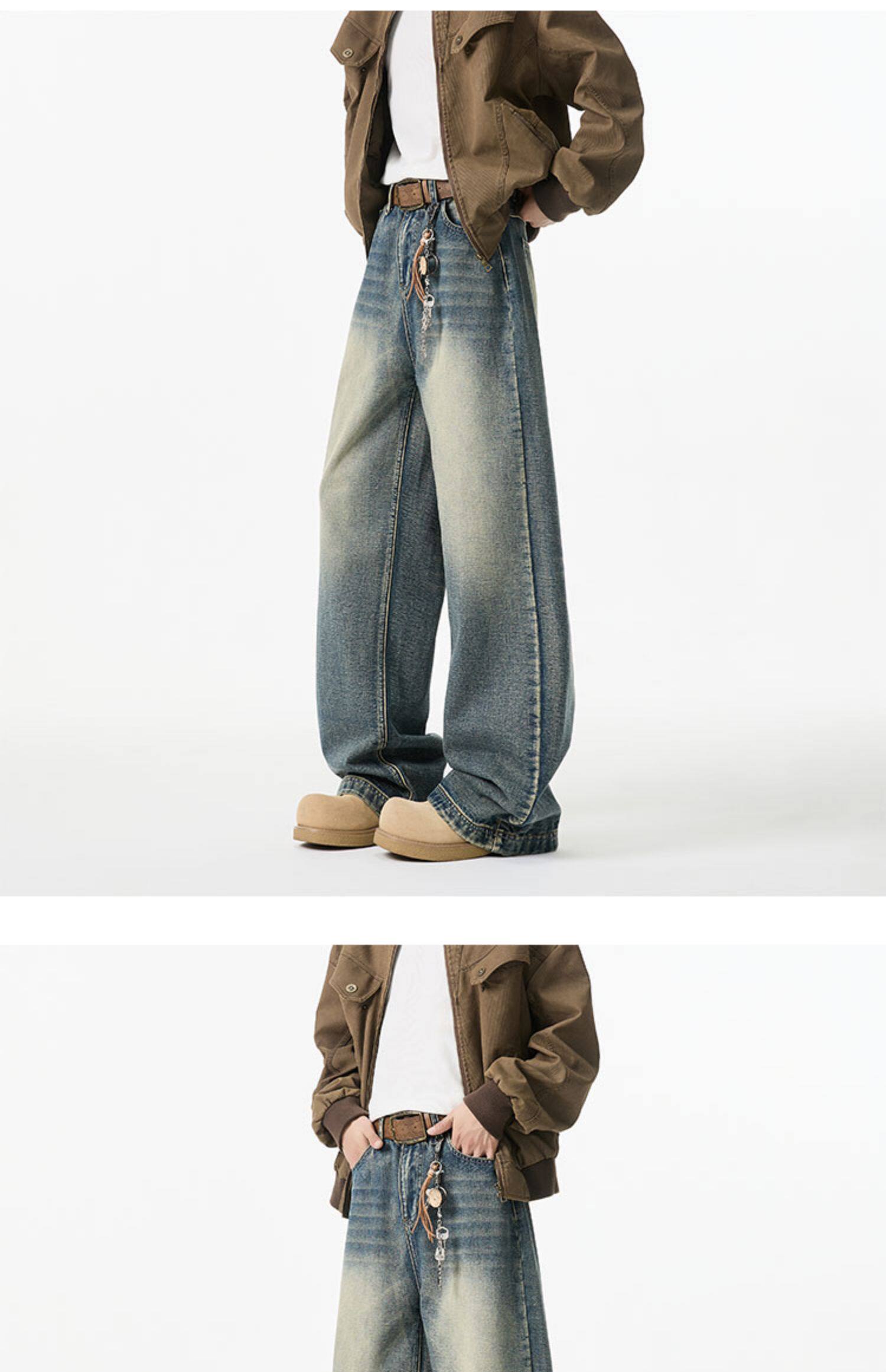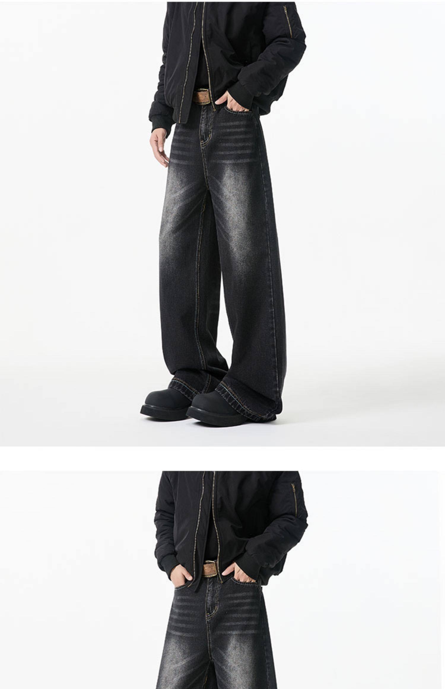 cleanfit復古牛仔褲男款春秋夏季水洗高街寬鬆直筒褲痞帥濶腿褲子