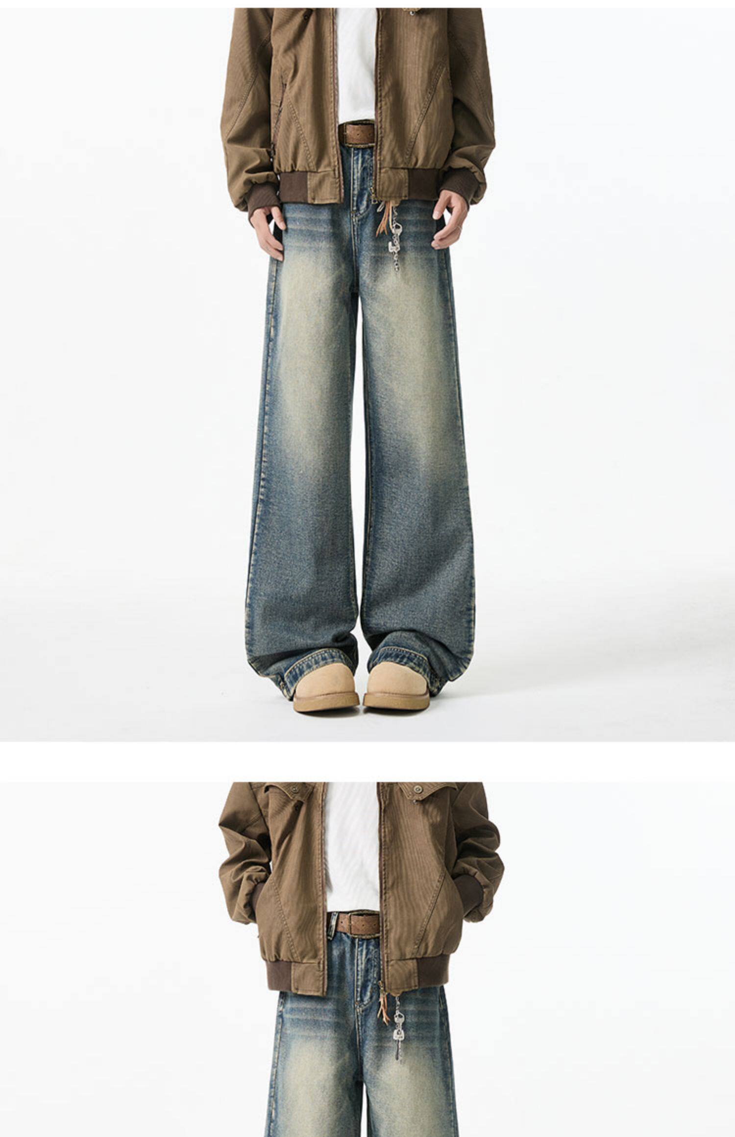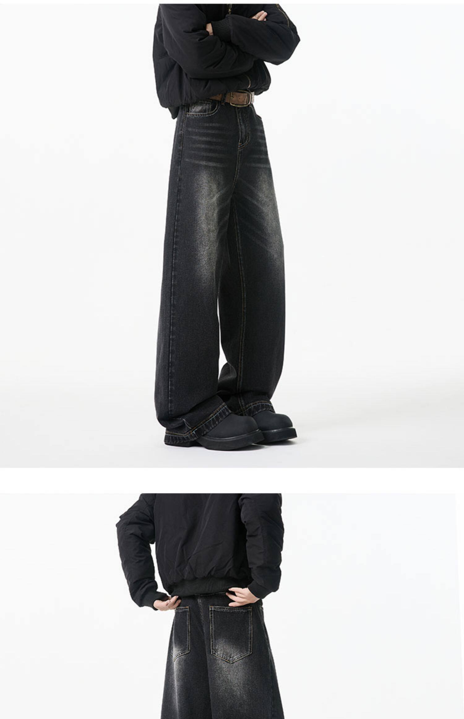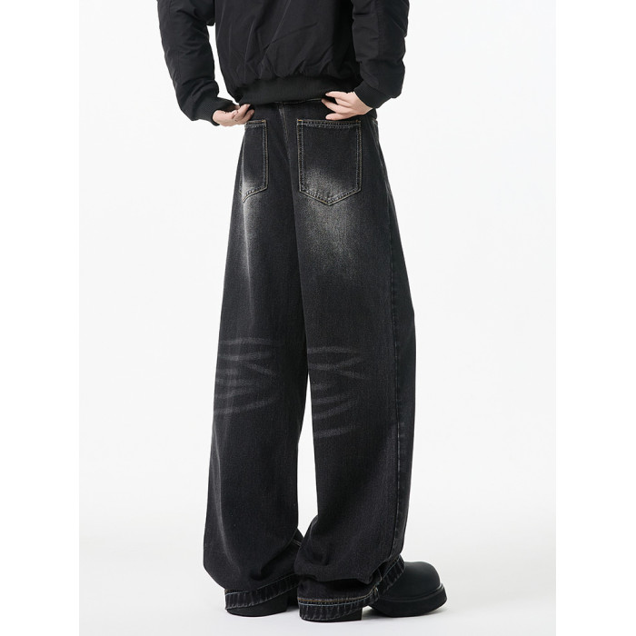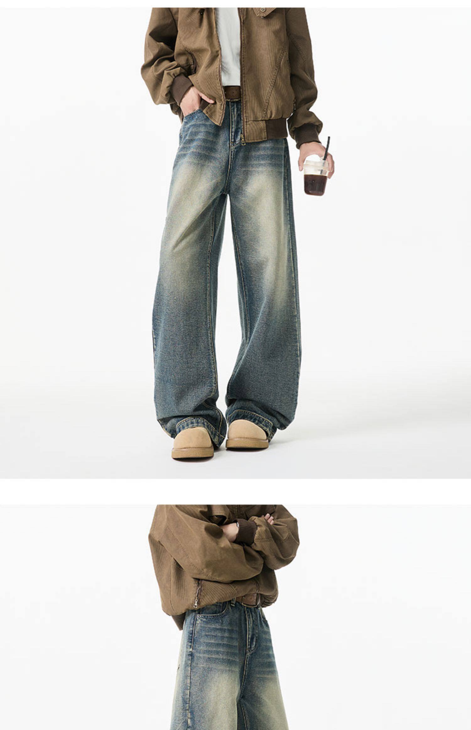 cleanfit復古牛仔褲男款春秋夏季水洗高街寬鬆直筒褲痞帥濶腿褲子