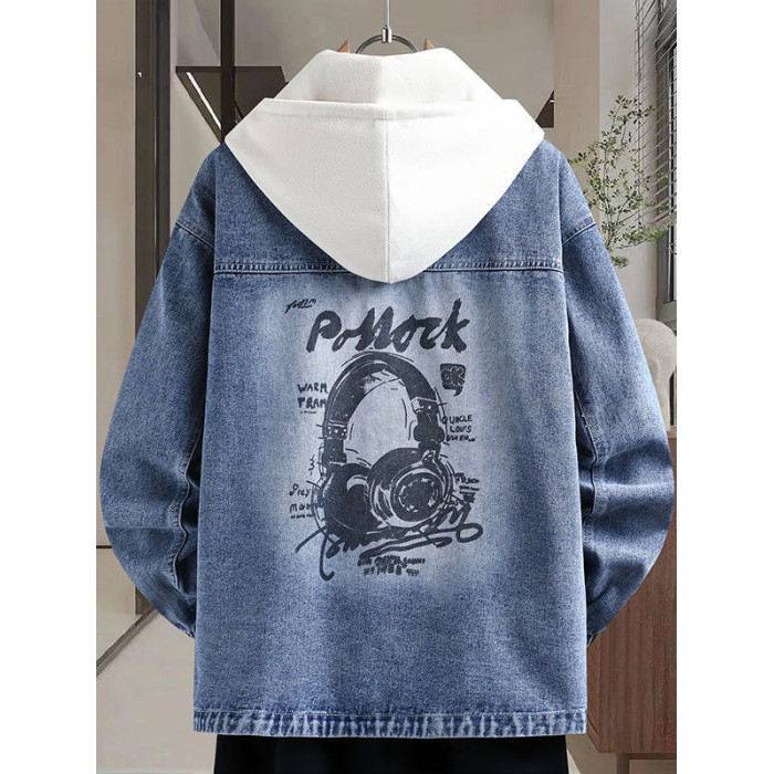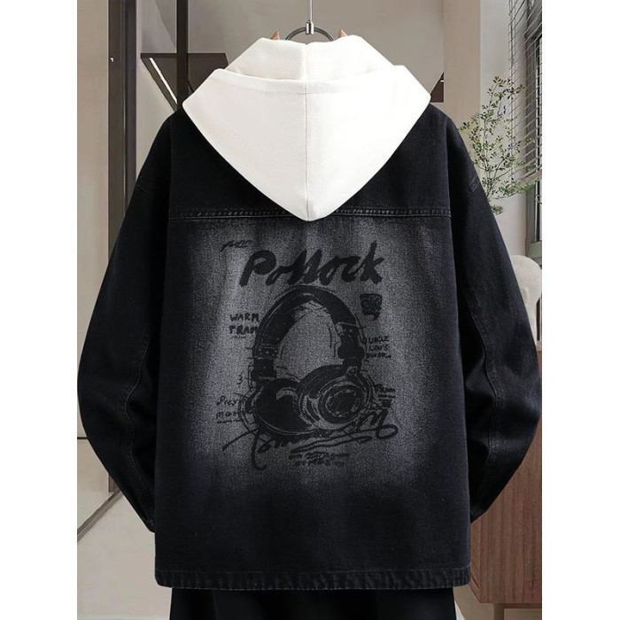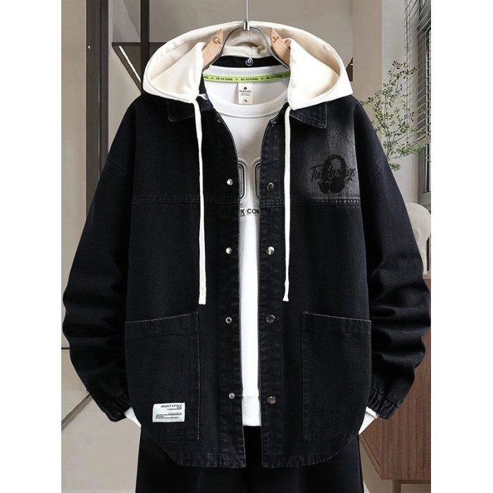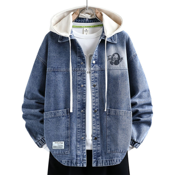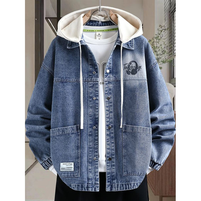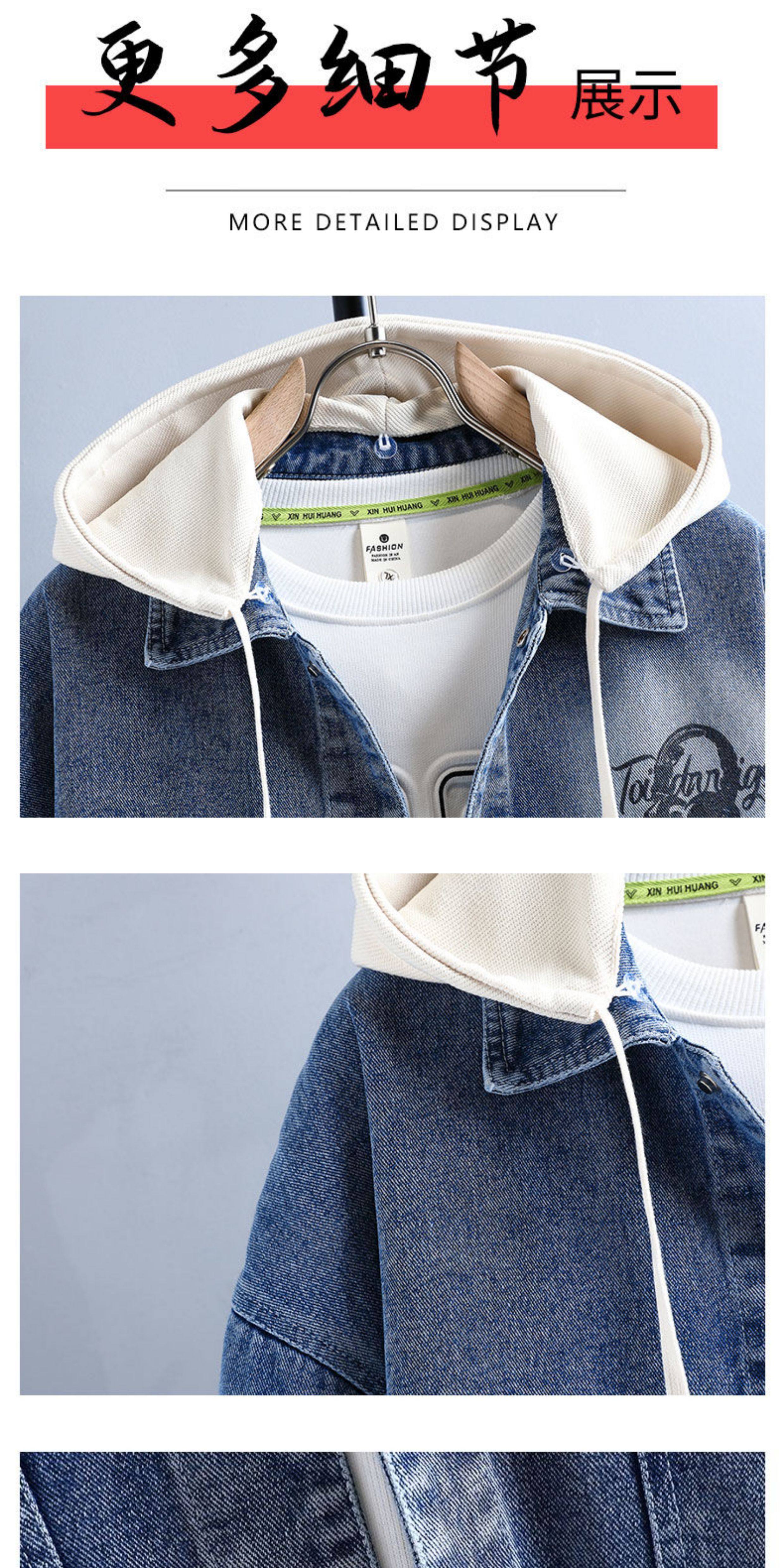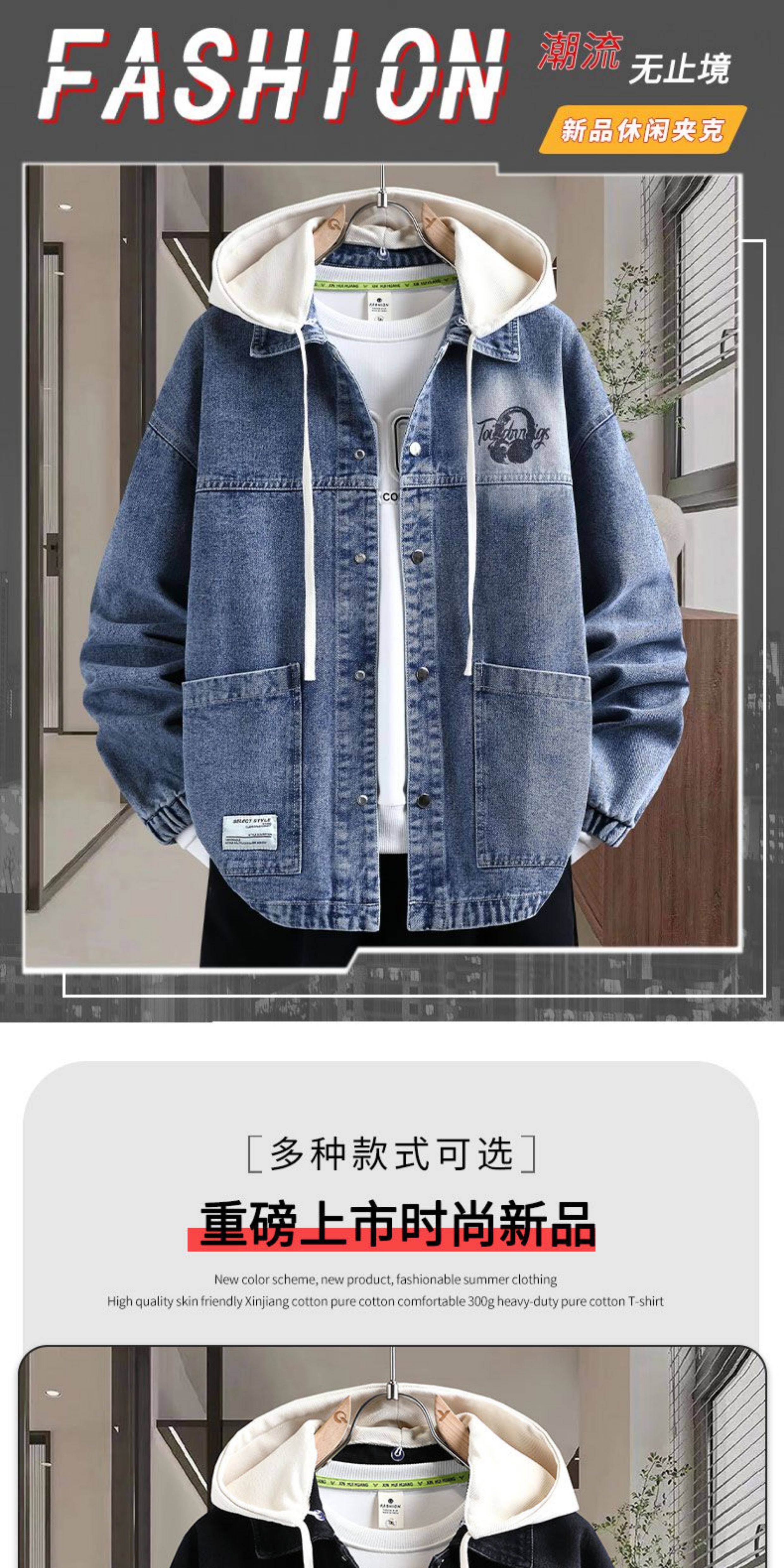 秋季新款青少年高品質可脫卸帽牛仔夾克潮牌質感舒適百搭男生外套
