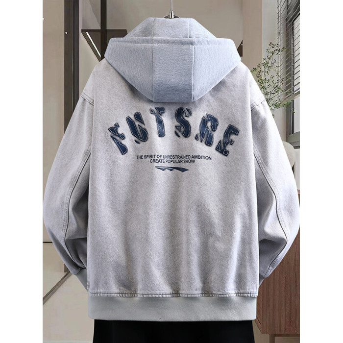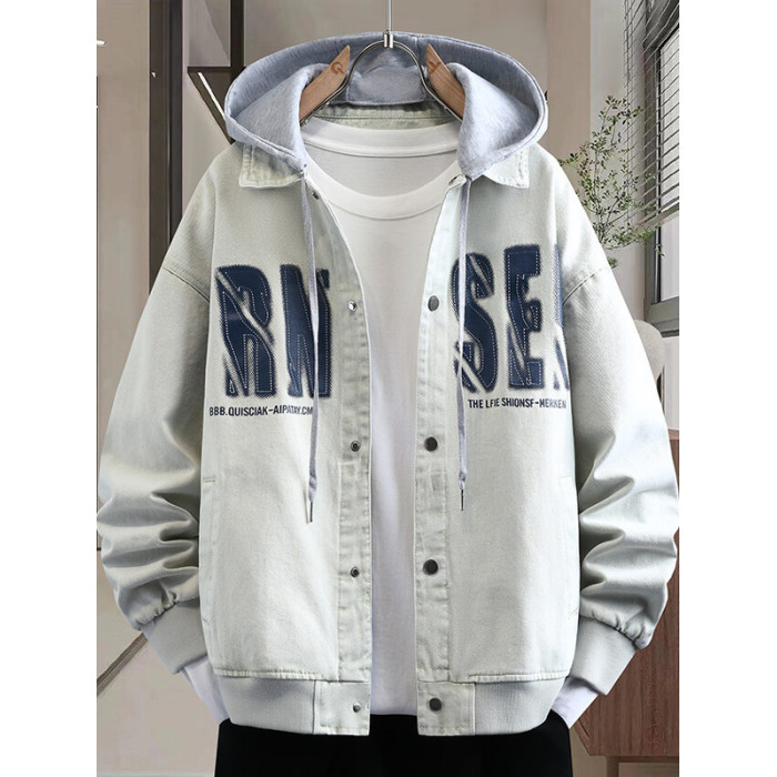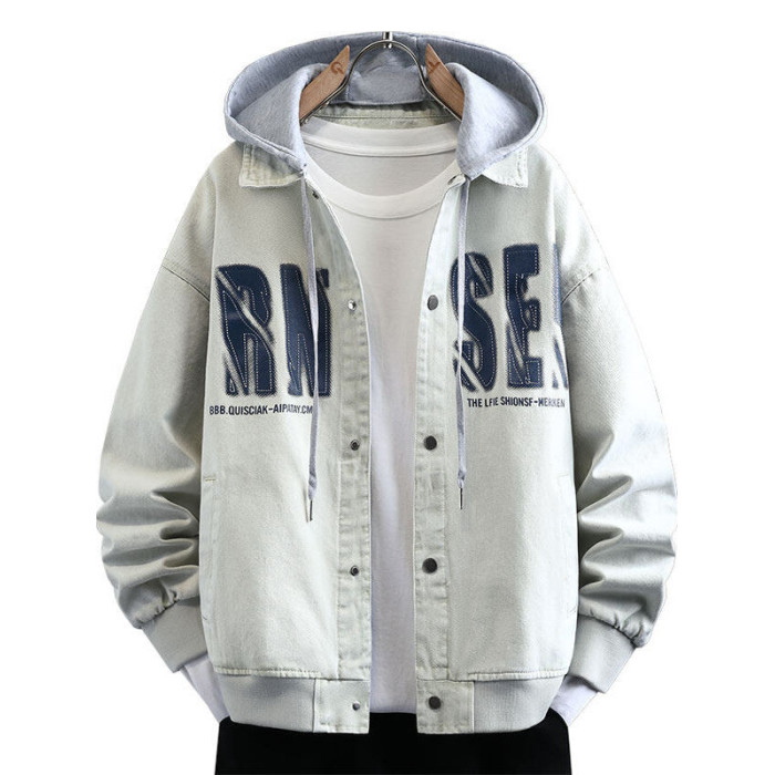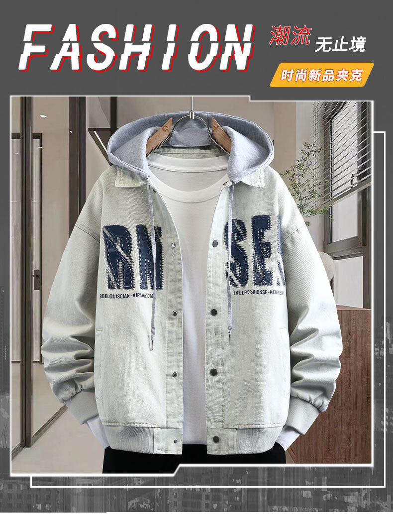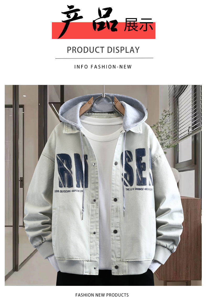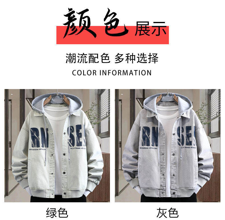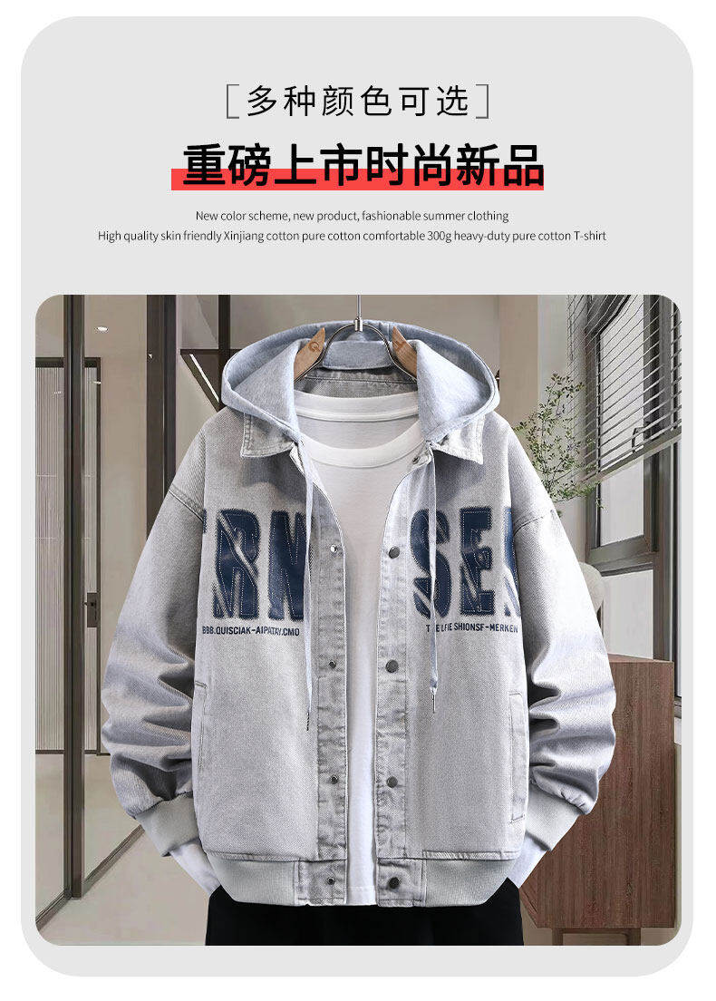 青少年牛仔夾克男士2025春季新款潮流帥氣初高中學生男孩連帽外套