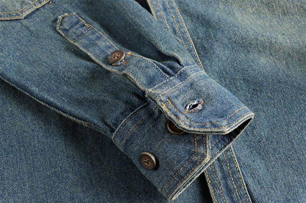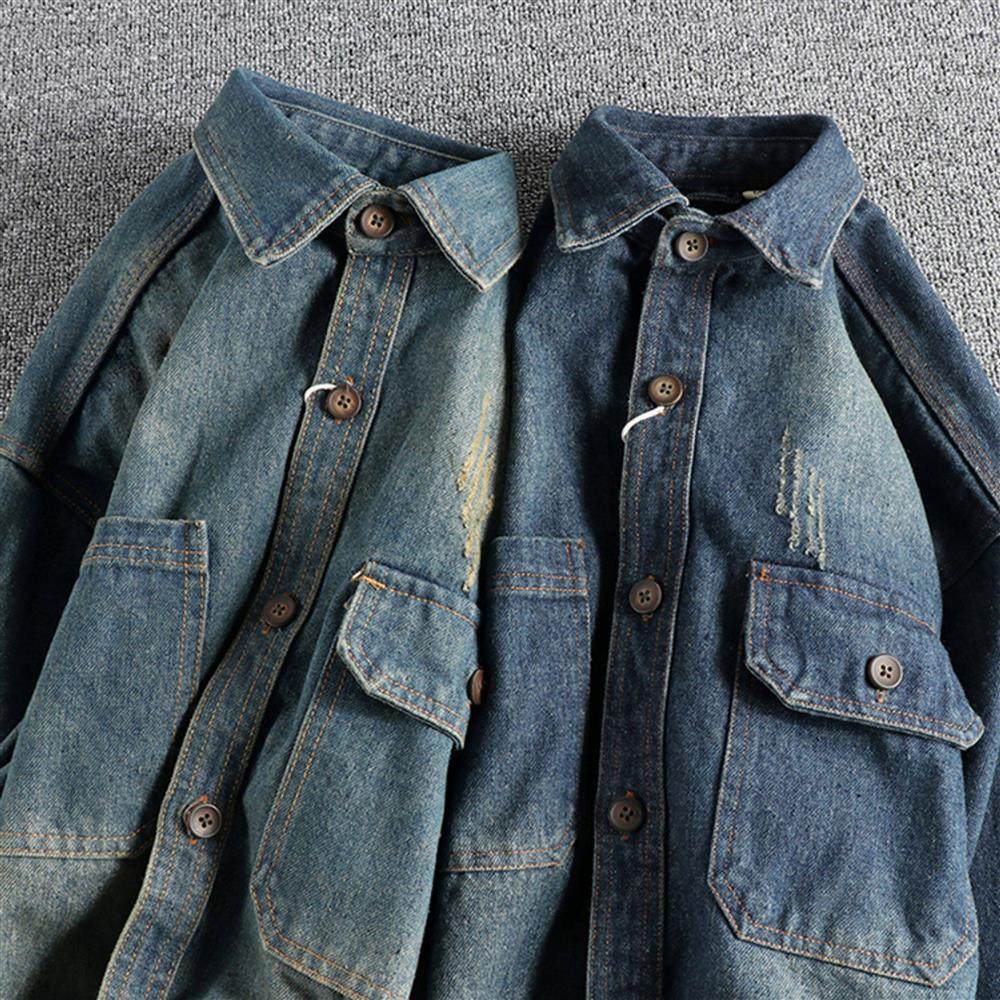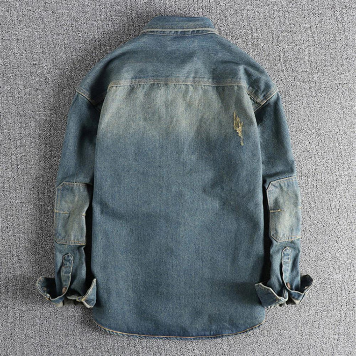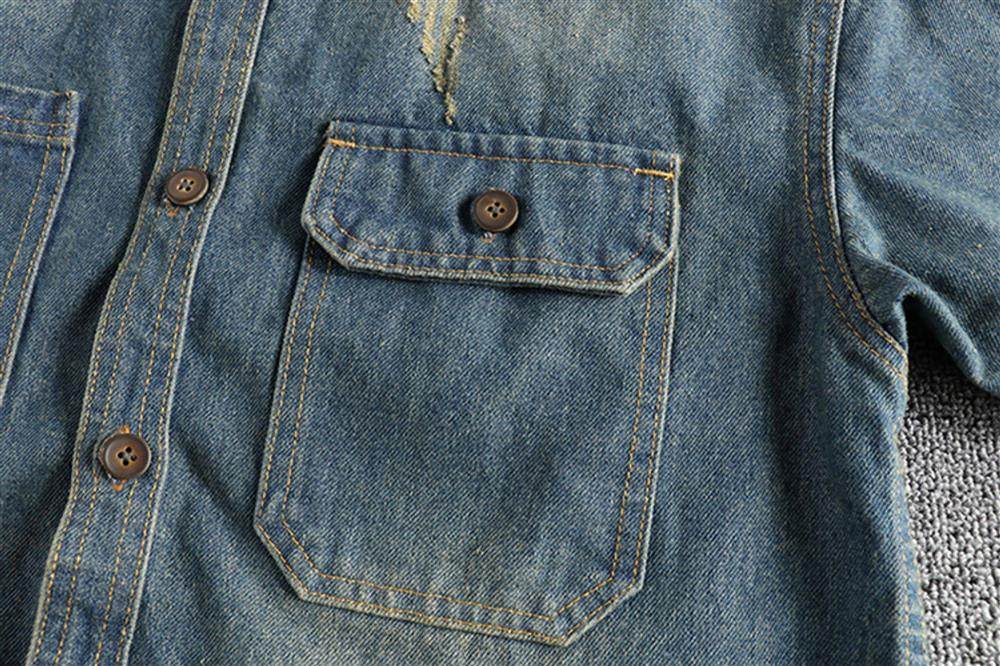 美式厚實款懷舊水洗耐磨牛仔襯衫男秋冬青年復古寬鬆襯衣夾克外套