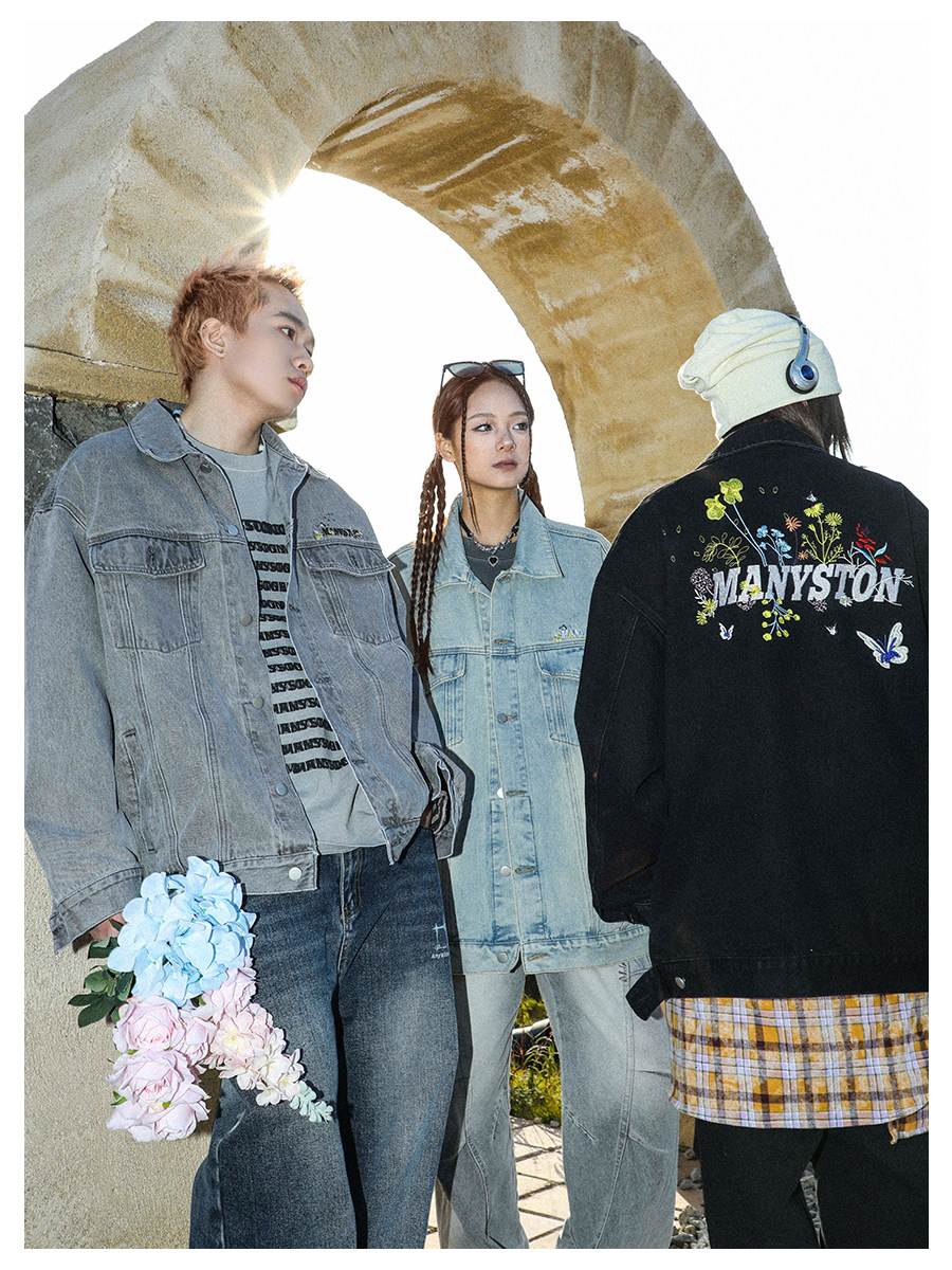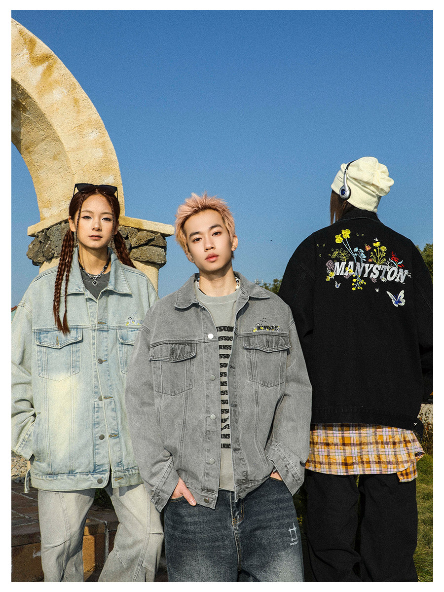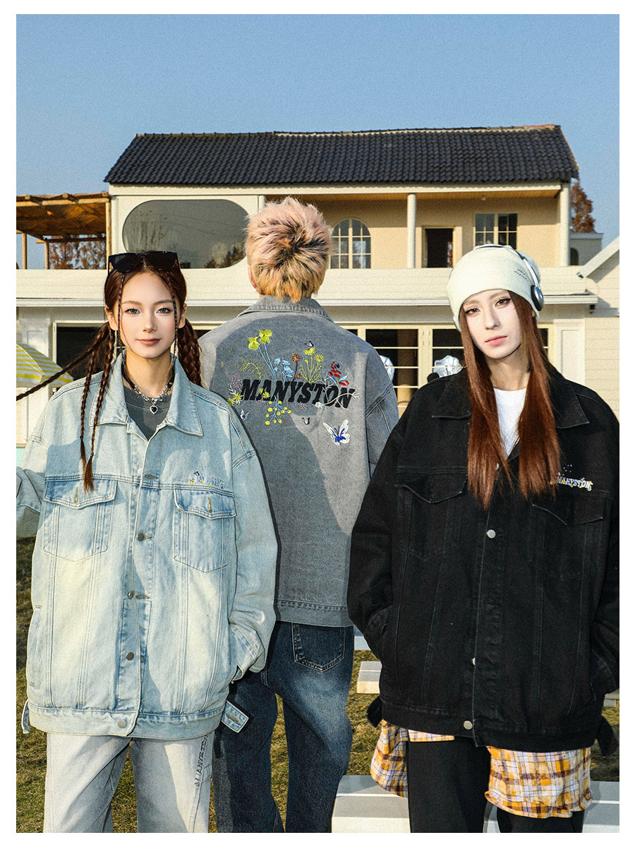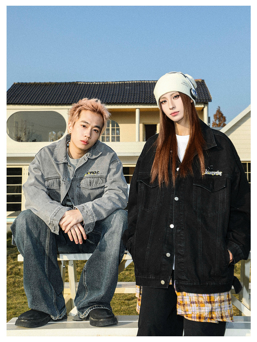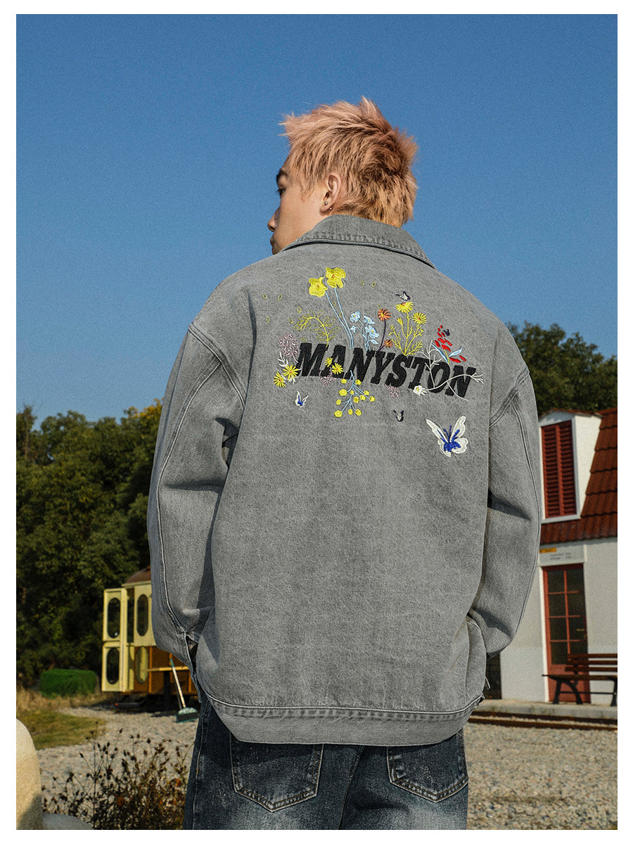 清 MANYSTON美式復古牛仔外套男款春秋季潮牌高級感繙領休閒夾克