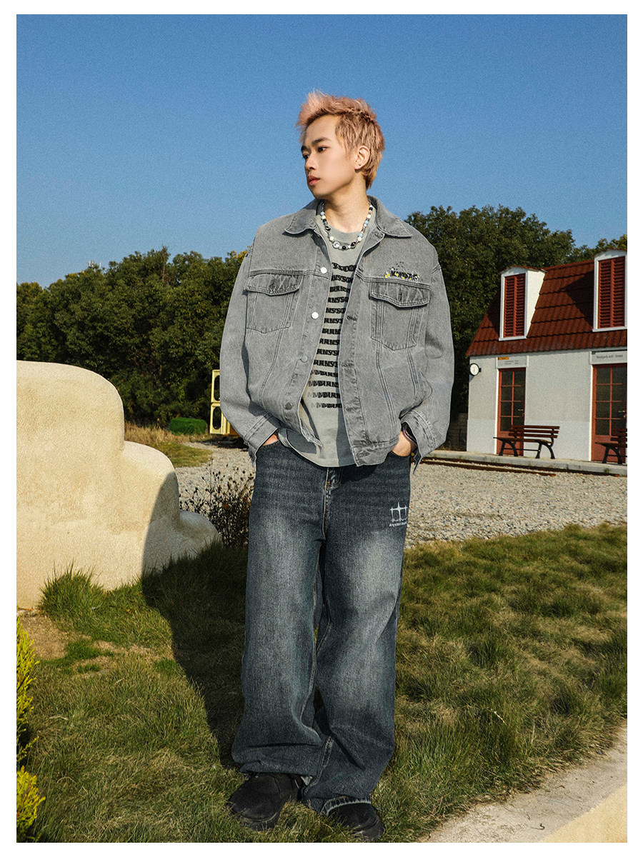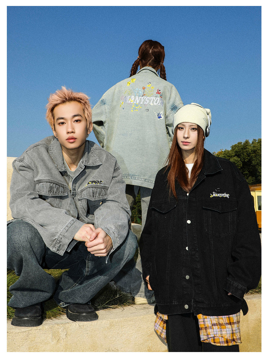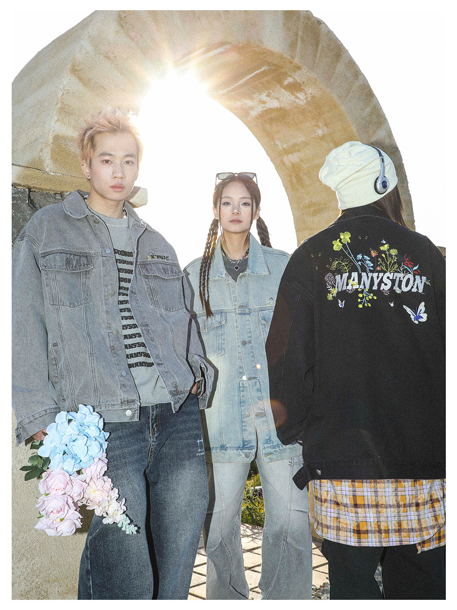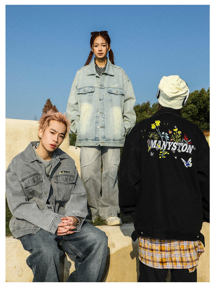 清 MANYSTON美式復古牛仔外套男款春秋季潮牌高級感繙領休閒夾克