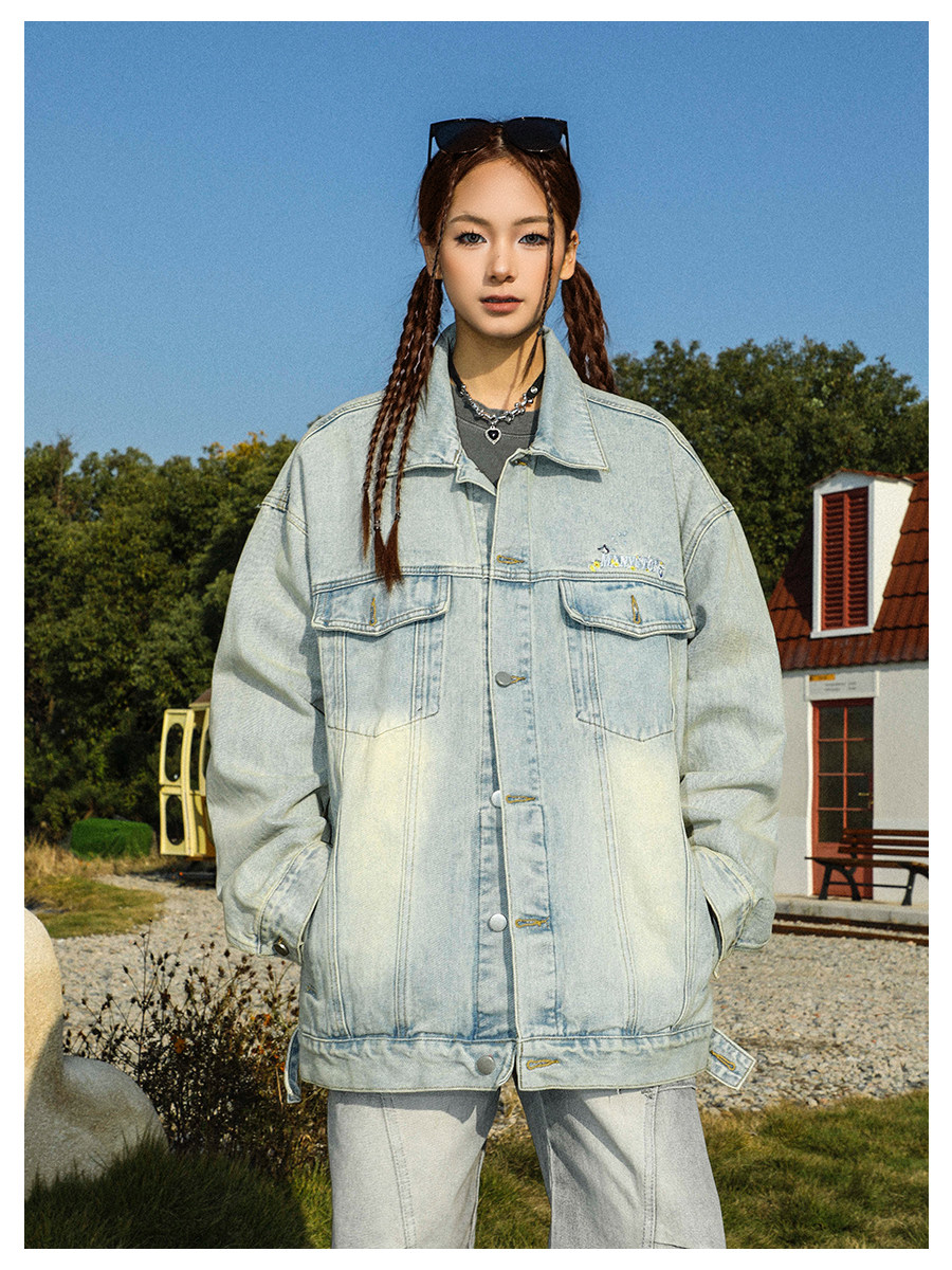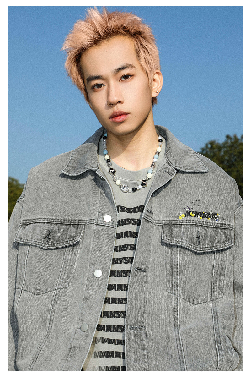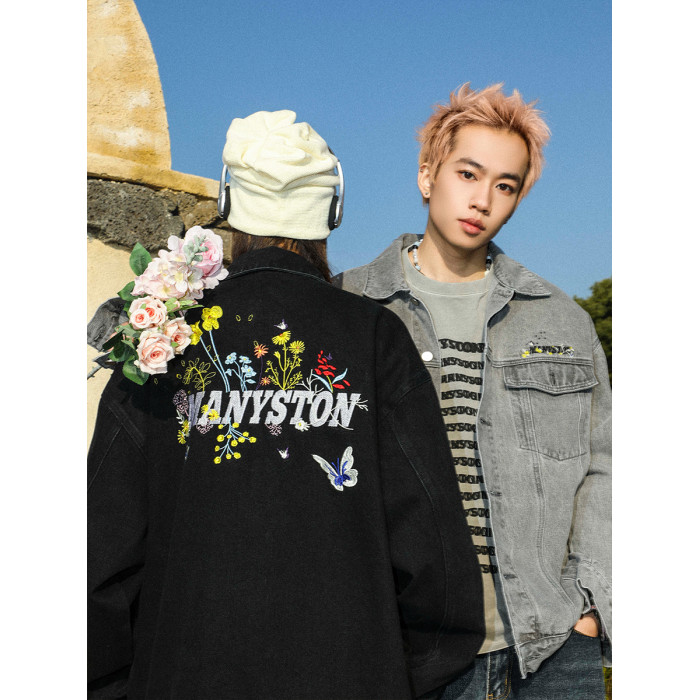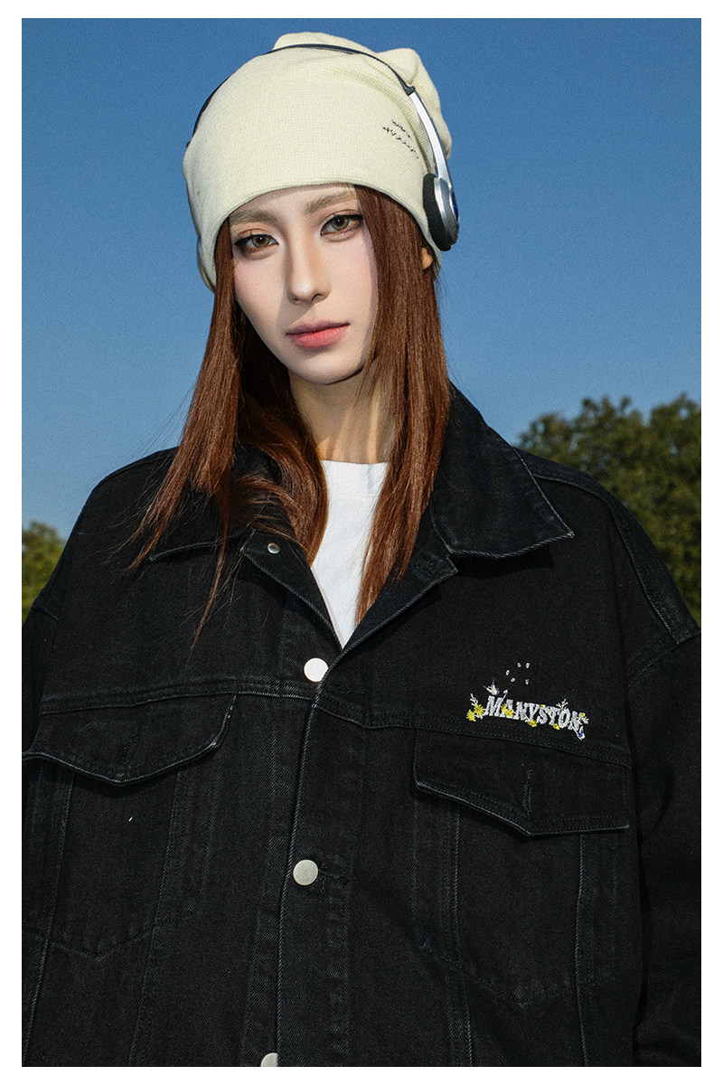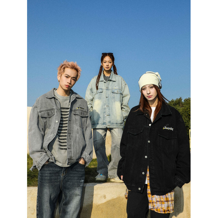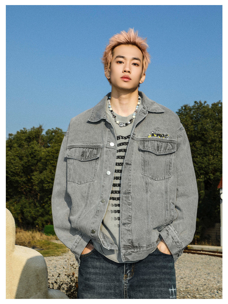 清 MANYSTON美式復古牛仔外套男款春秋季潮牌高級感繙領休閒夾克